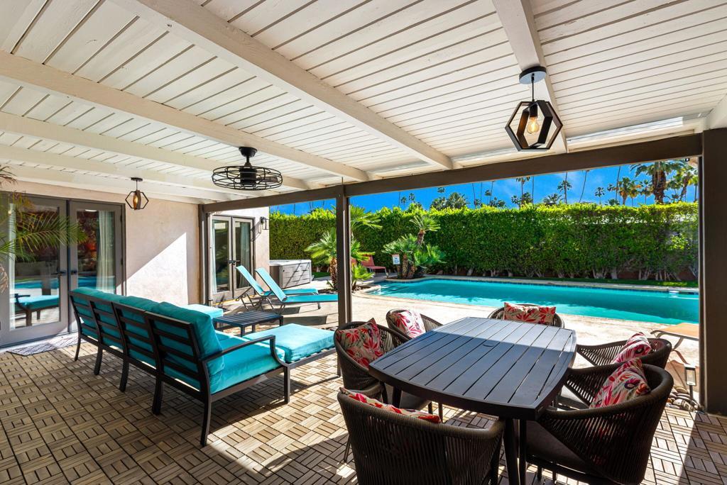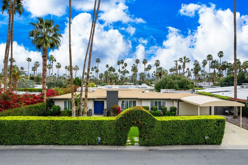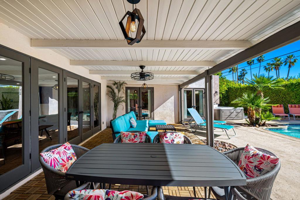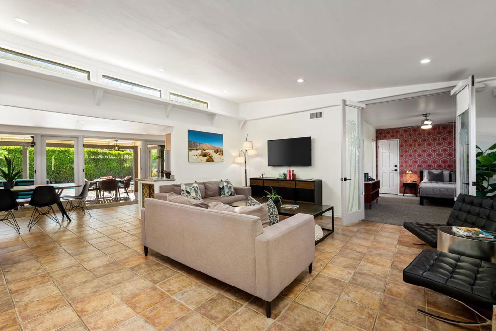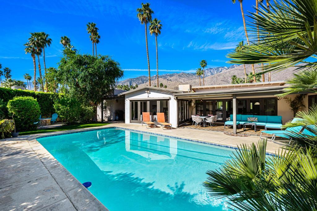 Step into sunshine, style, and serious income potential in this dazzling Deepwell retreat--where every day feels like a Palm Springs getaway. Whether you're seeking a high-performing vacation rental or your own desert escape, this home delivers the ultimate blend of comfort, flexibility, and flair. From the moment you enter, you're greeted by soaring ceilings, a statement fireplace, and clerestory windows that flood the living room with natural light while framing stunning mountain views. The seamless indoor-outdoor flow invites you to soak in the sparkling pool and lush backyard from both the living and dining areas--perfect for entertaining with a chic bar counter setting the scene. The designer kitchen shines with onyx quartz countertops, a breakfast bar, and easy access to a sun-drenched den/sunroom--your front-row seat to poolside relaxation. A smartly designed layout offers multiple ensuite bedrooms, including a private guest suite with French doors opening directly to the pool, ideal for hosting or maximizing rental income. Plus two expansive primary suites create luxurious retreats. One boasts a skylit walk-in closet and direct access to the backyard oasis, while the other features dual closets, serene mountain views, and its own private patio, an additional bedroom and bath offering flexibility and privacy for guests or owners alike. Outdoors, the magic continues: a newly updated hot tub, large pool, fire pit lounge, and covered patio spaces are made for unforgettable desert nights under the stars. Mature privacy hedging, additional covered parking, and ample storage add convenience to the resort-style experience. Upgrades, including new HVAC, LED lighting, mini-splits, skylights, and a direct-access garage with laundry, ensure modern comfort throughout. Proven as a successful vacation rental and now ready for its next chapter, this Deepwell gem is your ticket to living--and earning--in iconic Palm Springs style.