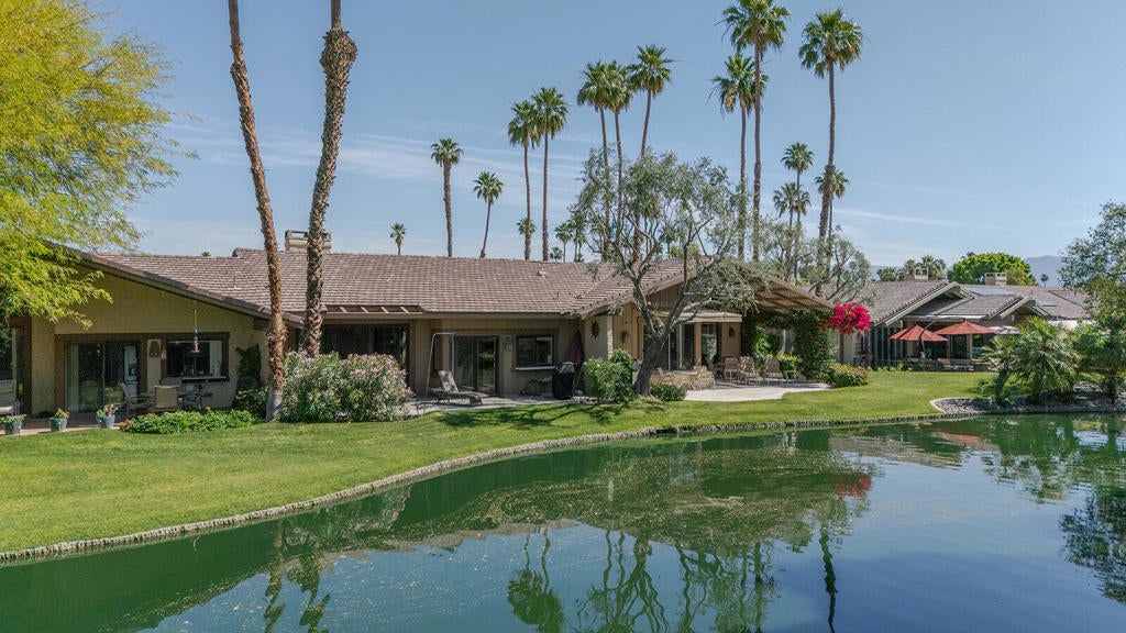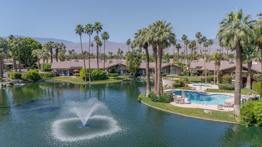 This stunning Laramie floor plan, which is one of the most popular in The Lakes Country Club. Facing south overlooking a lake with waterfalls and mountain views - all with privacy. 2 bedrooms/3.5 bathrooms, den (3rd bedroom) with en-suite, beautiful living room with volume ceilings and stunning fireplace. Newer AC unit and the home has been rarely used. This 2,184 square foot home is truly a jewel that offers a wonderful blend of comfort and style. The guest bedroom, with a stunning en-suite is spacious and private. The Primary bedroom, with large walk-in closet, beautiful en-suite tells you that you are truly living the desert lifestyle. The kitchen with views of the lake and patio is a chef's delight and perfect for entertaining family, friends and guest. The dining room is adjacent for easy conversations with friends who love the be with the chef. The living room is stupendous with such high ceilings and the feeling of warmth with gorgeous views of the outdoor patio, lake and mountains - this is a gem and a true find of perfect blend of balance of leisure, luxury and convenience in one of the desert's most sought after communities in the desert. Offered Furnished per seller inventory and comes with the golf cart. NwThe Lakes Country Club is truly a marvelous location with so much to take advantage of. Offering 27 holes of championship quality golf, 11 tennis courts, 9 pickleball courts, 4 paddle tennis courts, 44 pools/spa and one of the most amazing fitness work-out facilities in the desert. The clubhouse is magnificent, and the restaurants are the finest. This truly enchanting home is priced to sell with the furniture (as stated per seller inventory)and golf cart.Neither the listing agent nor brokerage guarantees the accuracy of square footage or details regarding the property's condition or features as provided by the Seller. Buyers are strongly encouraged to conduct their own independent investigation and obtain professional inspections to verify all information. Buyer to pay one time Reserve Fee $12,618.