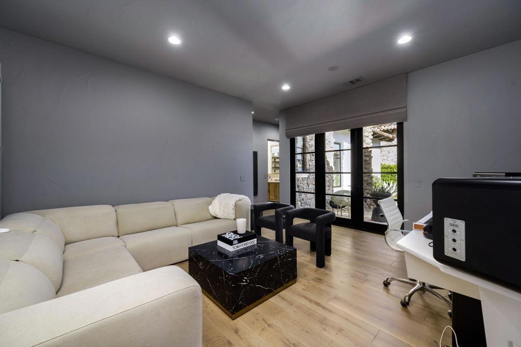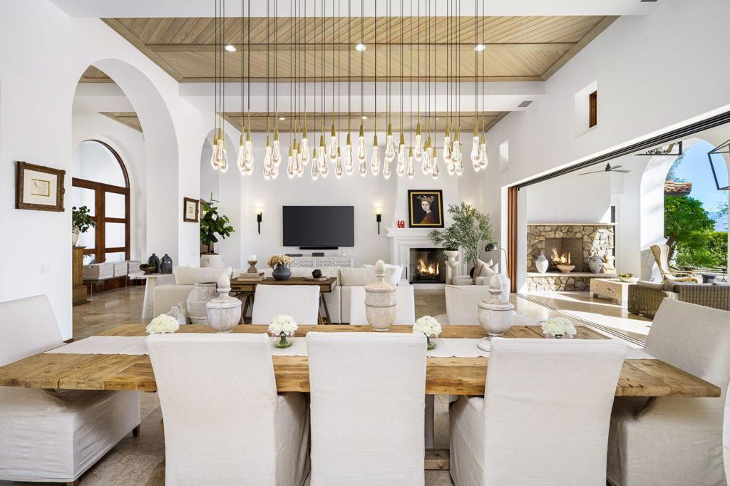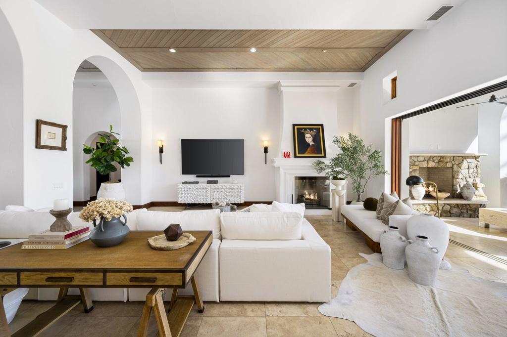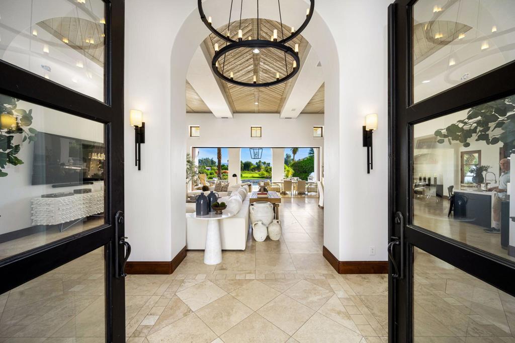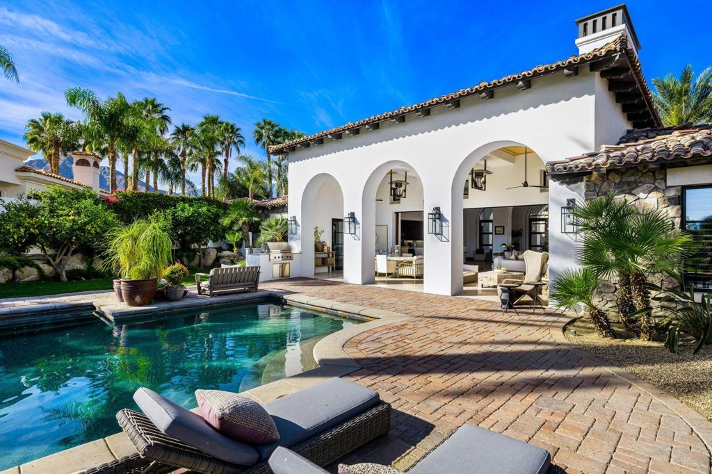 This extraordinary home is impeccably remodeled, combining thoughtful design with exquisite detail! Every aspect of the exterior and interior has been updated to reflect today's luxury California lifestyle. French doors along the courtyard let natural light into the foyer and a wall of sliders to the covered loggia show off beautiful views. A sitting area is adjacent to the kitchen and great room for intimate conversation. The gourmet kitchen has gorgeous counters, Pro Viking appliances and is just one of the many spaces that have been enhanced with unique tile work. The wood cabinetry from the kitchen carries on to the sophisticated wet bar with accents of black soapstone. Beautiful built-ins and a tray ceiling define the private office along the primary hall. Both the primary and secondary suites/casita are over the top with luxury and can be accessed via the front courtyard. An additional secondary suite has been converted to a large closet and can be converted back to a bedroom before closing if desired. Unique touches throughout the home include tray ceilings inlaid with light wood in the great room that continue to the covered patio. Casual elegance describes this home perfectly withits use of private spaces, patios off bedrooms and four fireplaces. Set in Tradition Golf Club, a beautiful community with views on three sides of the local mountains and is close to Old Town La Quinta shopping and restaurants! If you've been looking for a truly special home, this is the one. Furniture negotiable.