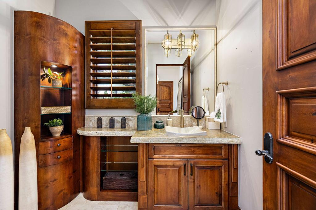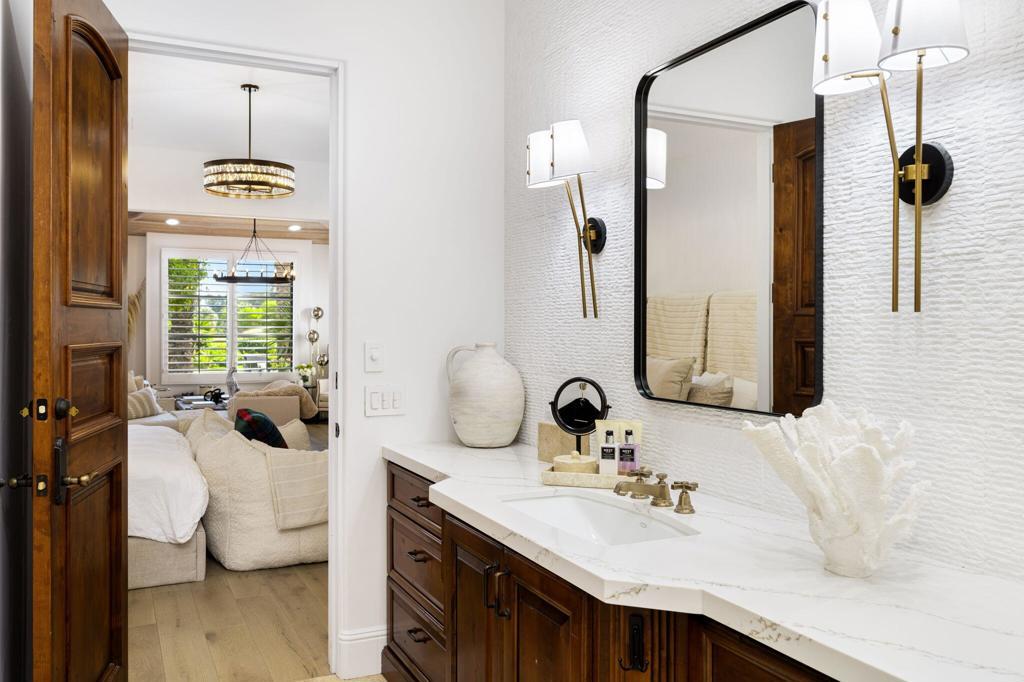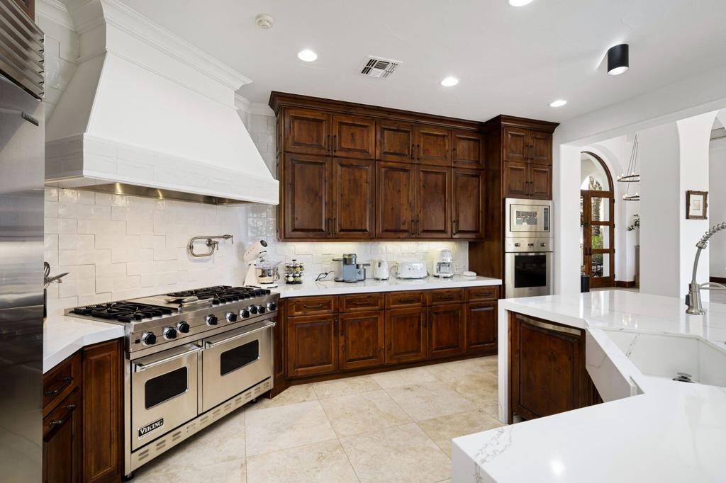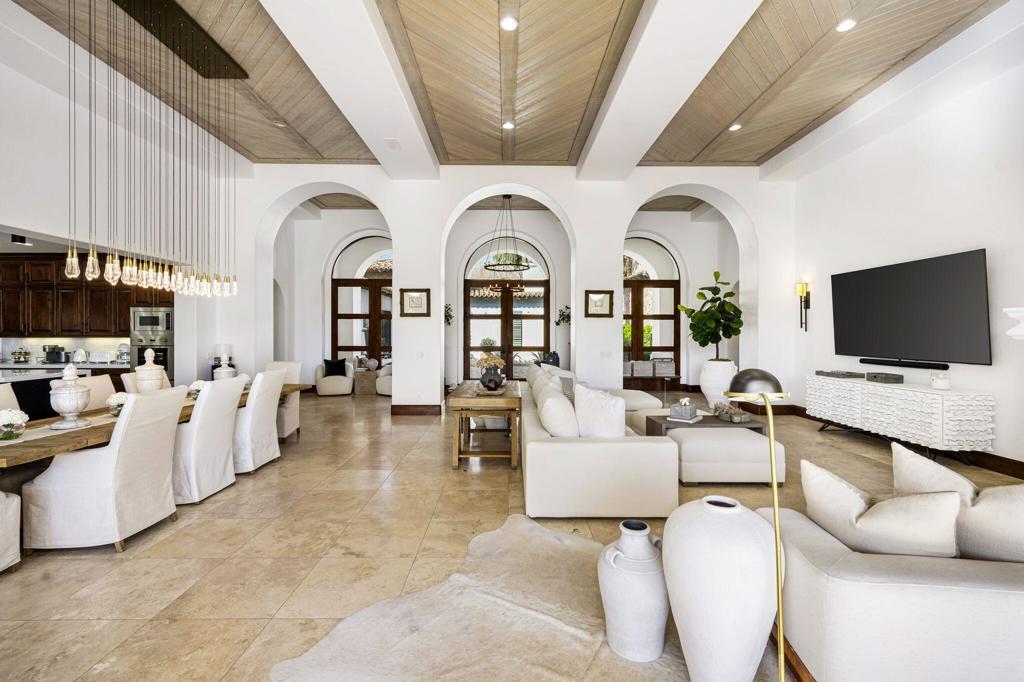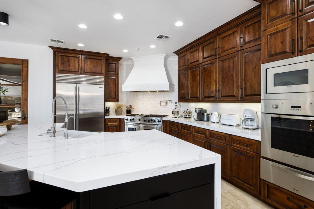 This extraordinary home is impeccably remodeled, combining thoughtful design with exquisite detail! Every aspect of the exterior and interior has been updated to reflect today's luxury California lifestyle. French doors along the courtyard let natural light into the foyer and a wall of sliders to the covered loggia show off beautiful views. A sitting area is adjacent to the kitchen and great room for intimate conversation. The gourmet kitchen has gorgeous counters, Pro Viking appliances and is just one of the many spaces that have been enhanced with unique tile work. The wood cabinetry from the kitchen carries on to the sophisticated wet bar with accents of black soapstone. Beautiful built-ins and a tray ceiling define the private office along the primary hall. Both the primary and secondary suites/casita are over the top with luxury and can be accessed via the front courtyard. An additional secondary suite has been converted to a large closet and can be converted back to a bedroom before closing if desired. Unique touches throughout the home include tray ceilings inlaid with light wood in the great room that continue to the covered patio. Casual elegance describes this home perfectly withits use of private spaces, patios off bedrooms and four fireplaces. Set in Tradition Golf Club, a beautiful community with views on three sides of the local mountains and is close to Old Town La Quinta shopping and restaurants! If you've been looking for a truly special home, this is the one. Furniture negotiable.