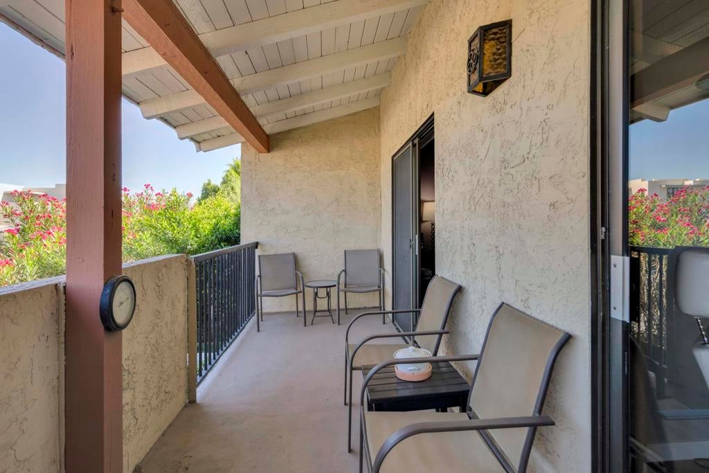 Welcome to Ranch Club Estados, a gated community in central Palm Springs offering comfort, convenience, and resort-style amenities.This upper-level 2-bedroom, 2-bath condo is 1,170 sq ft and features high ceilings that create an open feel throughout. The remodeled kitchen flows into the dining area, complete with a stylish bar and wine fridge, perfect for entertaining. Sliding glass doors lead from the living area to your balcony with beautiful mountain views, ideal for relaxing and enjoying the desert setting.The thoughtfully designed floor plan offers excellent bedroom separation, with ensuite bedrooms positioned on either side of the living space, each featuring its own walk-in closet.The community offers pools and tennis courts, all within a prime central location close to shopping, dining, and local attractions. You own the land (no land lease), adding long-term value and peace of mind.Whether you're looking for a vacation getaway, full-time residence, or income-producing rental, this property does not disappoint!