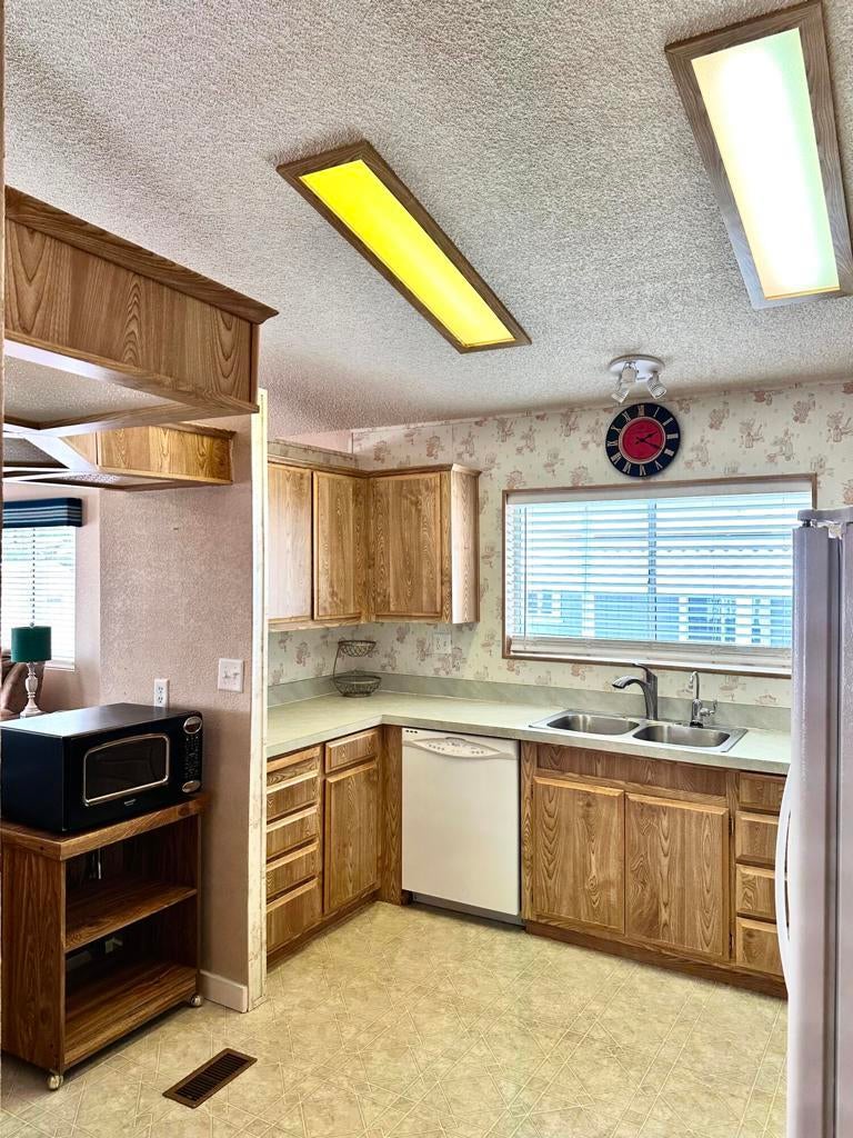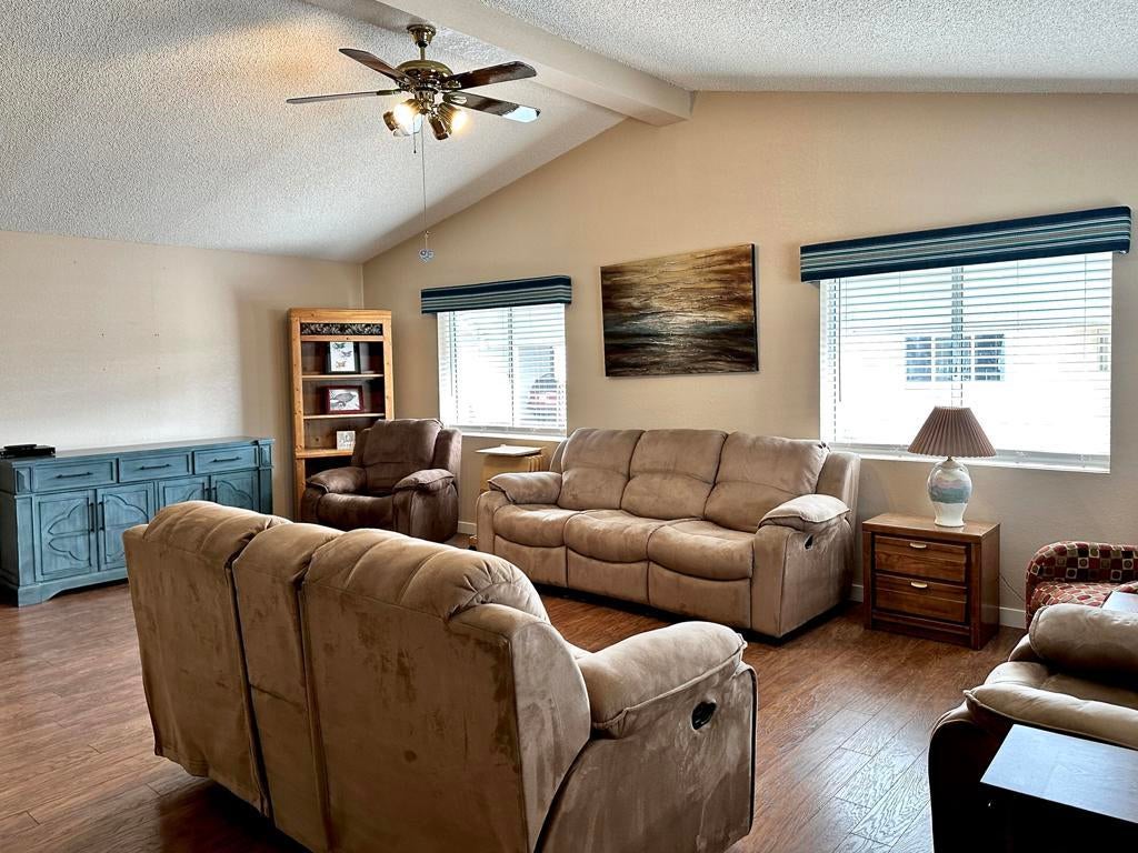 SPACIOUS, 2 bed, 2 bath home comes partially furnished, ready to make your own. With ALL APPLIANCES INCLUDED, moving is made easy! OPEN FLOOR PLAN showcases HIGH VAULTED CEILINGS, hard surface flooring throughout, and a COZY DOUBLE-SIDED FIREPLACE that sets the tone for relaxing evenings, holiday gatherings or just enjoying w/ friends and family.The kitchen is open with plentuy of space to customize to your liking. The primary suite serves as your private retreat, featuring a large WALK-IN CLOSET, stand-alone shower and soaking tub for ultimate relaxation. The second bedroom opens to a BRIGHT SUNROOM, ideal for an office or hobby room space. The large laundry room provides added convenience and workspace for your projects.Enjoy year-round comfort with CENTRAL HVAC, updated DUAL PANE WINDOWS, and a large outdoor shed/workshop for storage or creative pursuits. The low-maintenance outdoor space is perfect for easy liv ing and simply soaking in the peaceful surroundings and desert sunsets.Living in Joshua Springs means becoming part of a truly unique, resident-owned and self-governed 55+ community, where neighbors take pride in maintaining a welcoming environment. One of its most beloved features is the NATURAL HEALING MINERAL WATER pool and spa--a relaxing desert oasis you'll love year-round.The LOW MONTHLY HOA fee offers incredible value, COVERING LAND TAX, WATER, TRASH, SEWER, INTERNET, and CABLE, along with access to community amenities like the new dog park. Few communities offer this level of comfort, value, and connection all in one place.Don't miss this opportunity to own a beautiful, move-in-ready home that reflects true pride of ownership in one of Desert Hot Springs' most desirable senior communities. FINANCING AVAILABLE