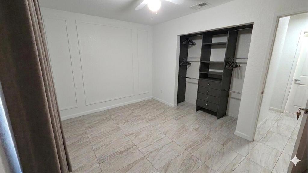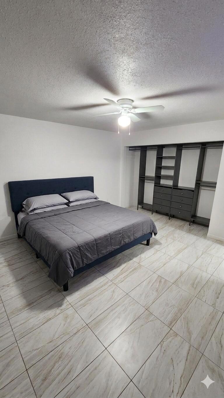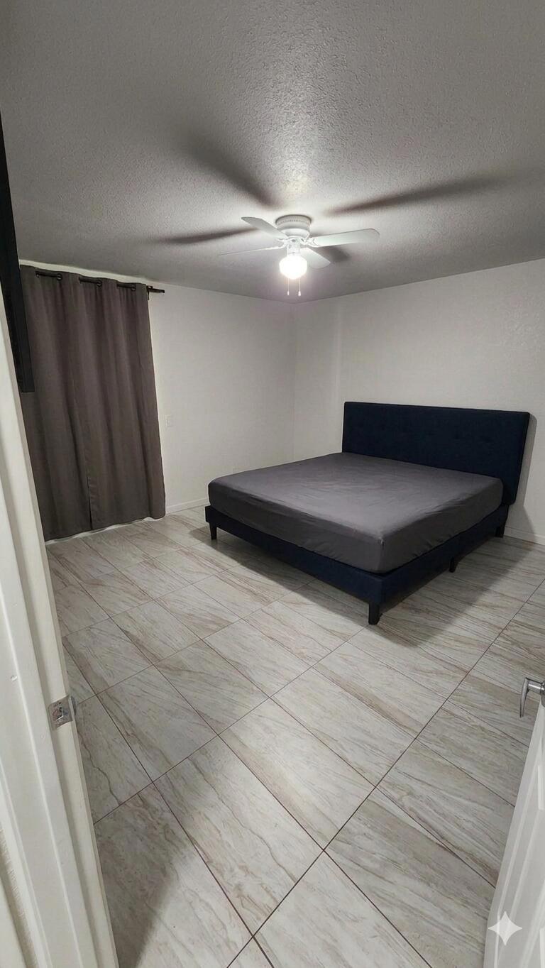 Beautifully updated home offering a perfect blend of modern finishes and comfortable living. This property features a spacious layout with upgraded tile flooring throughout, providing both style and easy maintenance.The remodeled bathroom showcases a sleek walk-in shower with custom tile work, contemporary vanity, and updated fixtures. The generously sized bedroom offers ample space and natural light, complemented by clean finishes and neutral tones.Step outside to a private backyard retreat featuring a large covered patio--perfect for entertaining or relaxing year-round. The yard includes a lush grass area, mature landscaping, and additional space with potential for customization, expansion, or outdoor projects.This home is ideal for those seeking move-in ready convenience with functional indoor-outdoor living.