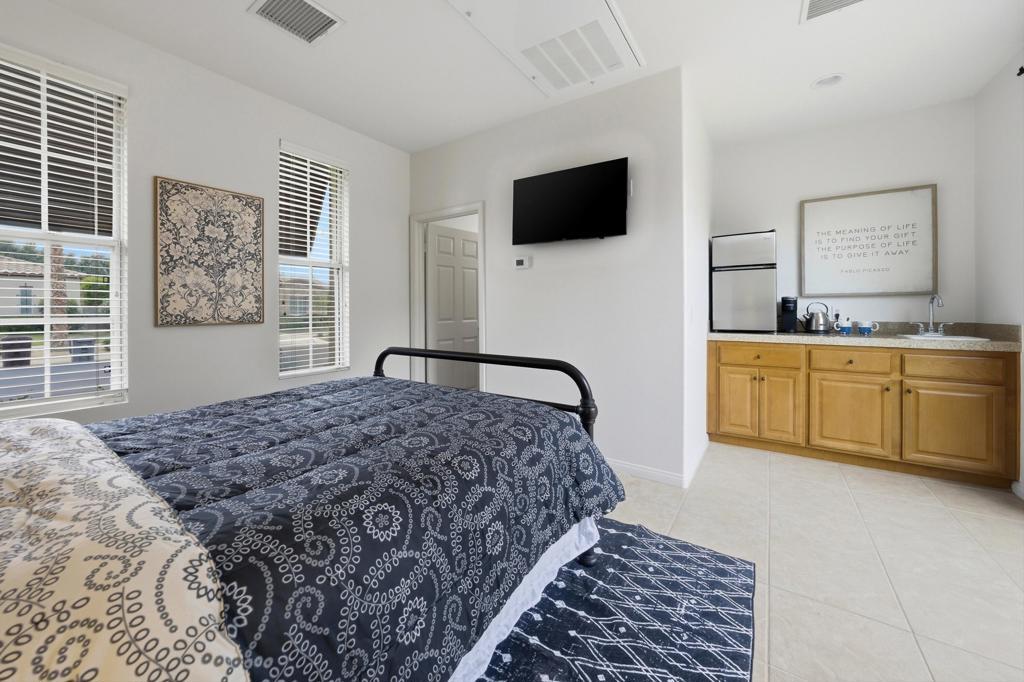 Rare Casita Home | Monterey Model | Private Courtyard | Trilogy La QuintaIdeally positioned within Trilogy La Quinta, this highly sought after Monterey model offers a detached casita, gated courtyard entry, and a flexible layout designed for elevated desert living.A private portico entry opens to a serene courtyard, creating a refined indoor outdoor arrival and ideal separation between the main residence and casita. The home offers three bedrooms and three bathrooms including the casita, plus a versatile den suited for guests, office, or additional living space.The kitchen opens to the great room, forming a central gathering space enhanced by new KitchenAid stainless steel appliances including a five burner gas cooktop, hood, convection microwave combination, and warming drawer. Tile flooring runs throughout the home and casita, complemented by fresh paint, custom window coverings, built in media center, and new ceiling fans.The primary suite features a bay window, spacious closet, dual vanities, and walk in shower. Additional upgrades include new HVAC in the main house, new water heater, new windows in the great room and french doors that open to the patio.Outdoor living includes a private courtyard and extended patio surrounded by lush, low maintenance landscaping, offering multiple areas to relax and entertain.Residents of Trilogy La Quinta enjoy access to golf, clubhouse, fitness center, pools, tennis, pickleball, and a vibrant resort lifestyle.