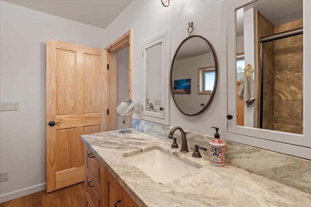 Stunning Mountain Retreat with Panoramic Forest and Lake Views in Fawnskin, CA Nestled in the heart of the San Bernardino Mountains, this gorgeous 2019-built home offers breathtaking mountain and lake views that will captivate you from the moment you arrive. Wake up to spectacular sunrises over the water and enjoy mesmerizing star-filled night skies that only a mountain setting can provide. The rear of the home features an expansive Trex deck with elegant wrought iron railings, perfectly positioned for enjoying your morning coffee while taking in the lake views. Surrounded by lush national forest, this private oasis feels like a true escape yet is conveniently located in desirable Fawnskin. Inside, the home shows like new with premium finishes throughout. Karndeen flooring flows seamlessly through the open living spaces, complemented by vaulted beamed ceilings and abundant windows that flood the home with natural light. Custom lighting, dual-pane windows, and Louisiana Pacific Smart Side exterior siding highlight the quality construction. The chef's kitchen boasts custom granite counters and backsplash, paired with upscale appliances and custom fixtures. Three large master suites, each with its own bathroom featuring custom fixtures, provide ultimate comfort and privacy for family or guests. Additional highlights include a heated concrete driveway, rain gutters, and an awesome back deck that's ideal for entertaining or simply relaxing amid the beauty of the mountains. Brand new furnace and tankless water heater. The build up has been finished to be livable with it's own bathroom. Approximately 400 additional space of living area. Bringing the square footage up to over 2,400. This turnkey mountain home is ready for you to create lastingmemories in one of Big Bear's most scenic areas.