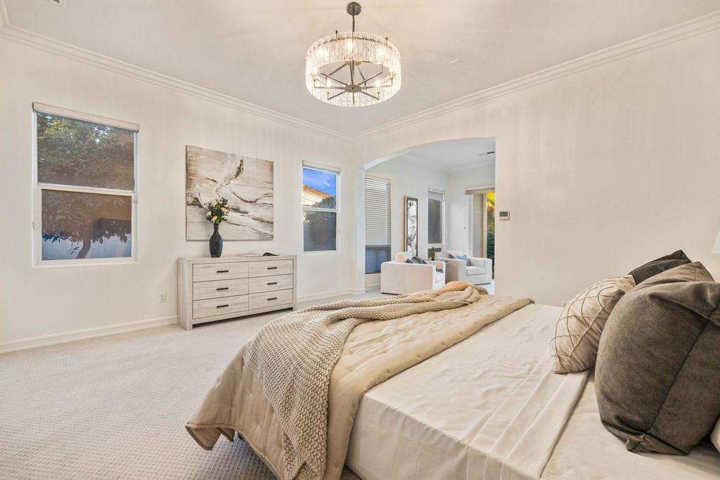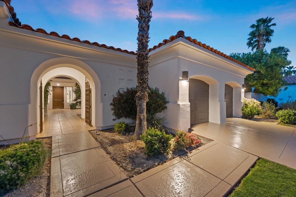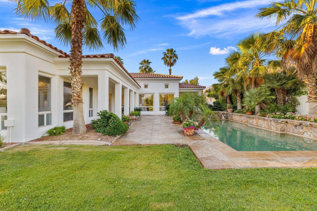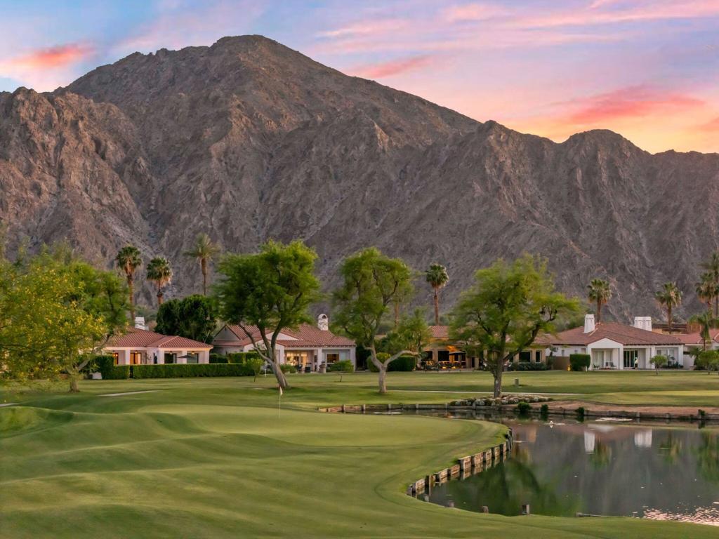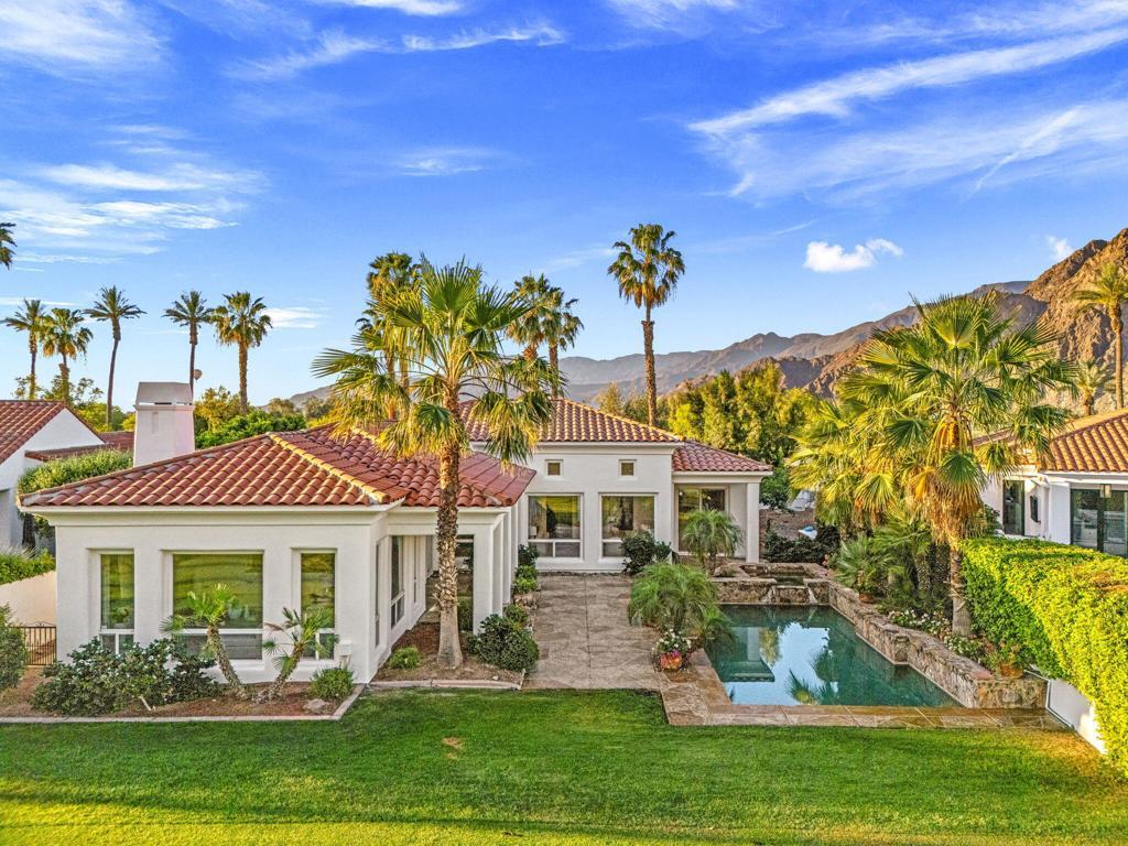 THE CITRUS: Could this be the BEST VIEW lot in The Citrus? Enjoy stunning gun-barrel views down two fairways directly from your backyard, with two lakes, two fountains, and the 13th hole of the Citrus Course right behind the property. Watch golfers play over the lake and putt from the comfort of your patio while taking in breathtaking panoramic views of the Santa Rosa, San Bernardino, and Little San Bernardino mountains. There's literally no better place for your morning coffee or evening cocktails.You are welcomed into this home through a gated front courtyard with fireplace. Inside, a large open floor plan captures incredible views from the formal living and dining rooms through to the chef's kitchen and family room. The attached casita features a private entrance off the courtyard, and the second bedroom suite is perfect for guests. The spacious primary suite includes a retreat area, his and her walk-in closets, and is located just steps from the spa.The resort-style backyard features a Pebble Tec pool and spa and a large patio perfect for alfresco dining and entertaining. With fantastic upgrade potential and one of the most spectacular view locations in the Citrus, Be quick - opportunities with views like this are once-in-20-year occurrences!!