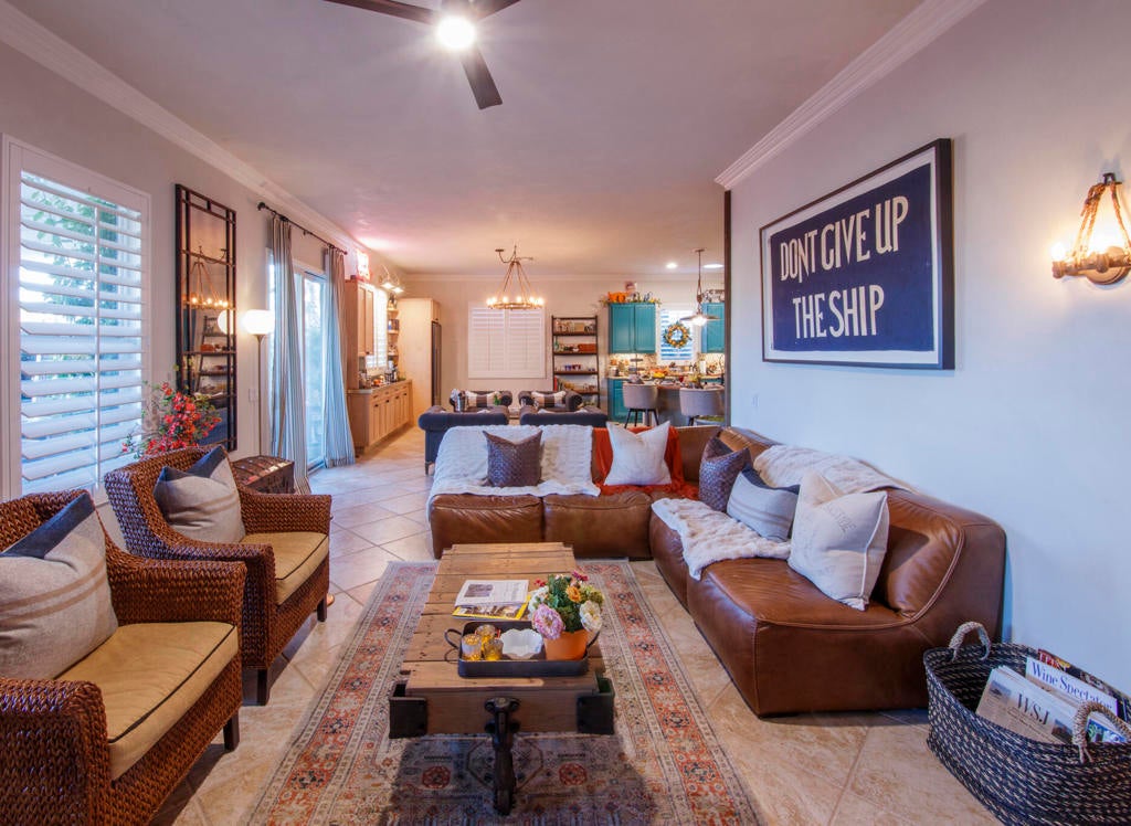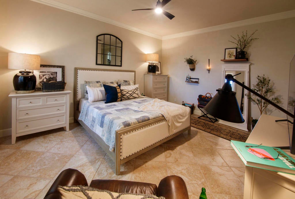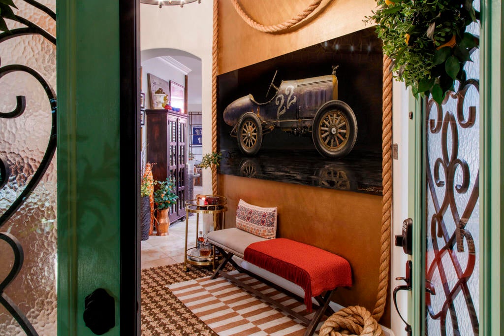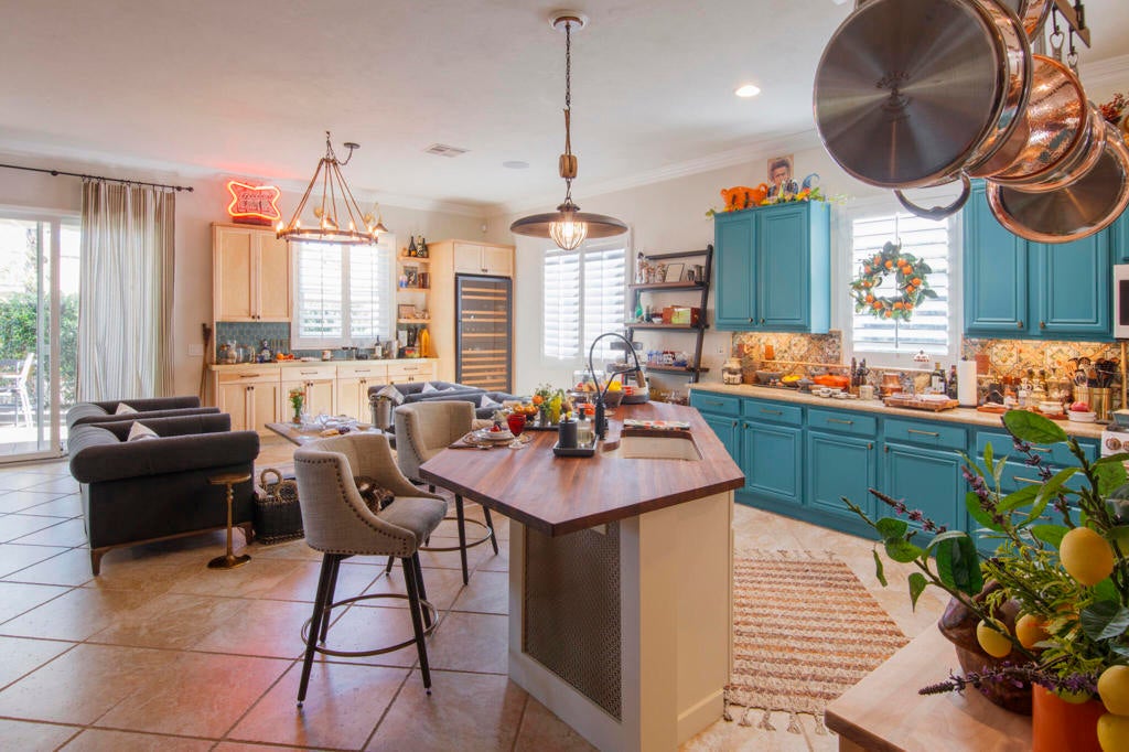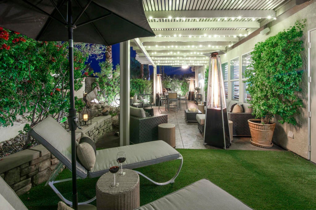 Professionally updated by Flair Design Build, this special home - located at the end of a quiet cul-de-sac within the gated community of Indian Palms Country Club - is full of personality and character. The rustic cottages of the Spanish Riviera provided inspiration for this home, giving it its relaxed, fresh design that is in keeping with the Mediterranean architecture of the home and the neighborhood - but with playful and comfortable styling, and fun vibes. This inviting home has two en suite bedrooms; a completely outfitted office that's big enough for a sleeper sofa to accommodate guests, including vacation rental guests as Indian Palms allows STVRs; a powder room; two temperature-controlled garages - a two-car garage with additional golf cart garage, and a 46-foot RV garage with hook-ups and 14-foot-tall rollup door. The RV garage is perfect not only for RVs, but also for a car collection (four to six cars could easily fit with lifts); workshop; extra storage; or for a fun rec room.Interior highlights include: CAFE kitchen appliances; decorative Spanish-style tiles; natural materials combined with vibrant pops of color and cheerful accents; up to 300-bottle, dual-zone wine cooler; Andersen sliding patio doors; custom, old-world wall finishes throughout; whole-house audio; water filtration system; built-in cabinetry; charming laundry room with stacked LG washer/dryer, countertop, drying rack, and storage; large format floor tile; designer lighting and fixtures; keyless entry at multiple points; and security system. Outside, the property features a private, fenced, fully-furnished back patio with a unique, built-in, wood-burning Santa Maria grill that doubles as a fire pit; KitchenAid natural gas grill; mature, low-maintenance landscaping; artificial turfed patio areas; citrus trees; multi-zone, timer-controlled irrigation; extensive landscape lighting; remote-controlled solar shades; multiple open-lattice covered patios; speakers at the back patio; security cameras; and ample driveway space.A truly lock-and-go property. Great for full-time or part-time use, and would also make a great income property for long- or short-term rental - especially for seasonal months, and for music festivals given the property is located within walking distance of the Empire Polo Club.Indian Palms Country Club community amenities include: on-site restaurant and bar, pools and hot tubs, golf, and lifestyle center.Furnished and accessorized per inventory list.