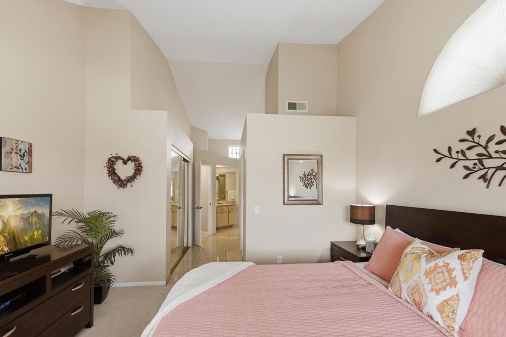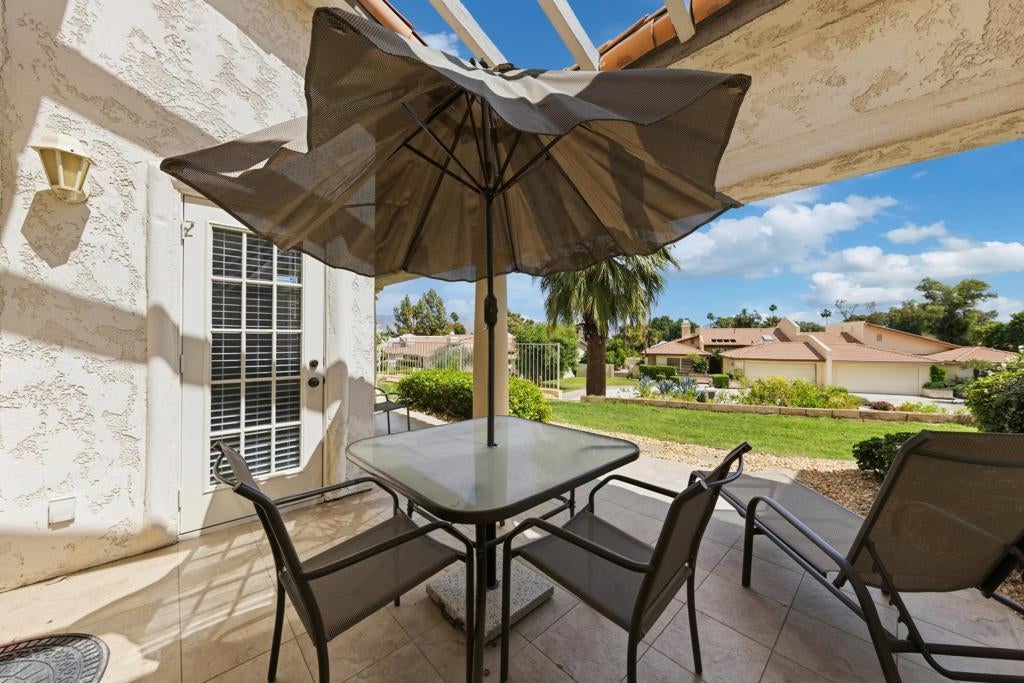 Welcome to prestigious Desert Falls CC, located in the heart of Palm Desert!! Rare, Single Story, Vaulted ceilings with celestial windows -pied-a-terre -One large bedroom, plus spacious den, one full modern bathroom and a half bathroom located in a quiet cul-de-sac. **Other homeowners have made great use of the den into a spare bedroom, or office and have even added a shower in the half bath! Offered turnkey furnished! Pristine property shows like a small home, attached one car garage two story ceilings and indoor laundry room! Upgraded Kitchen -Remodeled primary bathroom with large walk-in shower. HVAC system approximate 10yrs - always maintained as is the entire property. New water heater. Back patio tiled & extended- nice for BBQ-ing! Small storage closet off back patio. Entrance with long driveway, lush greenbelt, privacy all the way around! Semiprivate Golf club - Championship resort golf course. Pay as you play or dine! Fantastic tennis and famous pickle ball with great vibes! Wi-fi, cable tv, 24 hr security, 32 pools & Spas! Five minutes to shopping, boutiques, fabulous restaurants, El Paseo Shopping, 15 minutes to PS A/P, right of Rt 10 - 5 minutes to world renown Eisenhower medical center! This location has it all! Short term rentals are allowed. Call the HOA! Call for your private tour! See you soon!