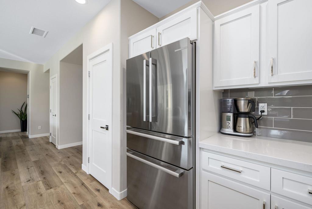RENTED 11-15-2026 thru 4-15-2027. This Tuscan-inspired vacation retreat combines elegance and comfort, featuring a bright, open great room with upgraded finishes, a chef's kitchen with quartz countertops, stainless steel appliances, and a chic subway tile backsplash, plus a seamless flow to the dining area. The serene primary suite offers a bay window, plantation shutters, French doors to a private pool oasis, and a spa-like en suite bath. Guests enjoy their own quarters with a nearby bath, and a versatile 'bunkhouse' walk-in closet provides extra sleeping space. Outdoors, a Pebble Tec pool, cascading spa, tanning shelf, BBQ station, and extended patio set the stage for relaxation and al fresco dining, making this home the ultimate getaway.