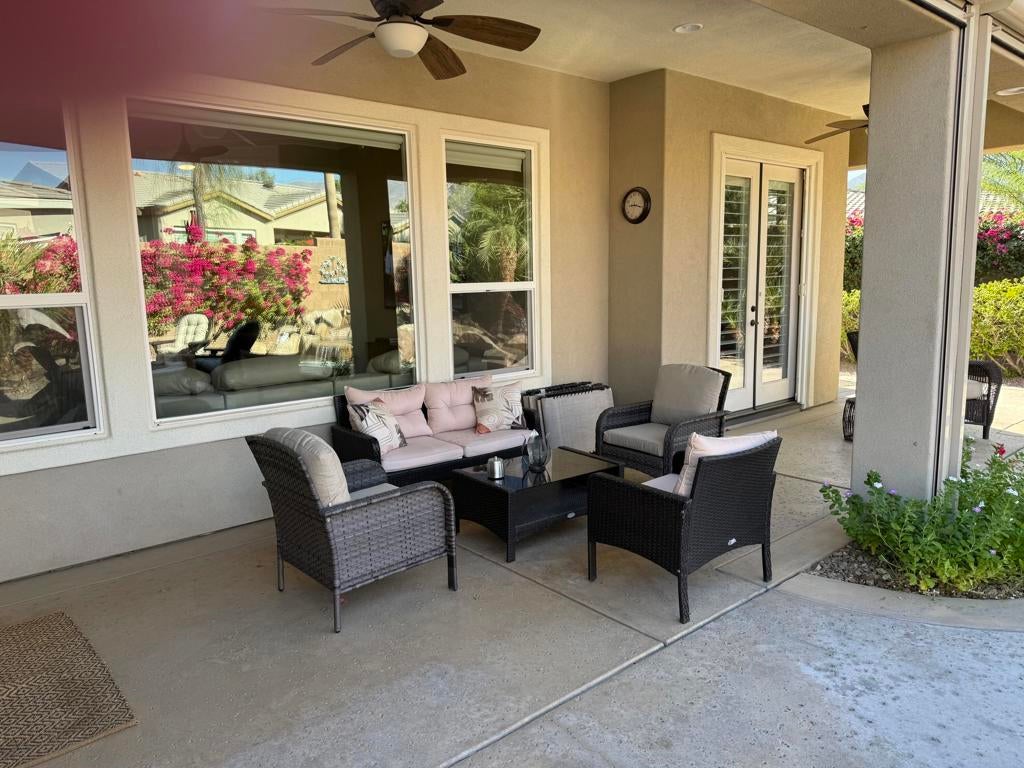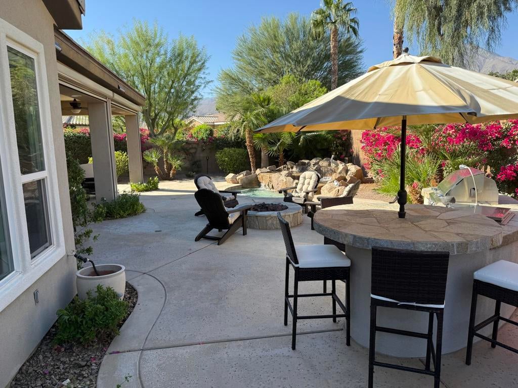 RENTED 12-1-2025 Thru 3-31-2026. RENTED 11-1-2026 thru 3-31-2027.. Trilogy in La Quinta is a 55 and older community. This property is available for 3 months or more in 2026.This property is a Caspian floor plan. 2 bedroom Master has a king size bed. Guest has a queen. Plus an office ... Home shows like a model has 1775 sq ft. open floor plan. Private backyard on a corner lot. Mountain views, fire pit plus a spa for those evening to relax and enjoy the sunset.