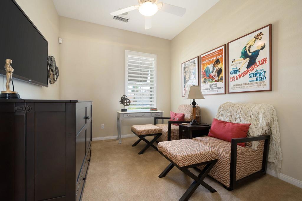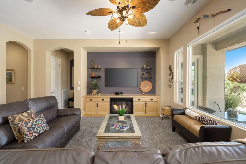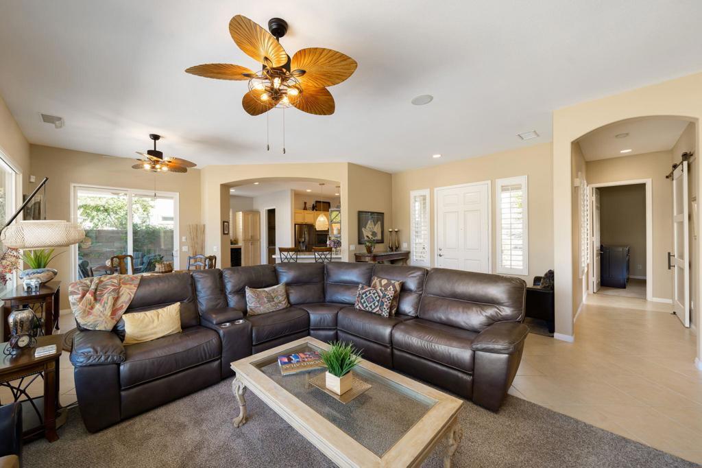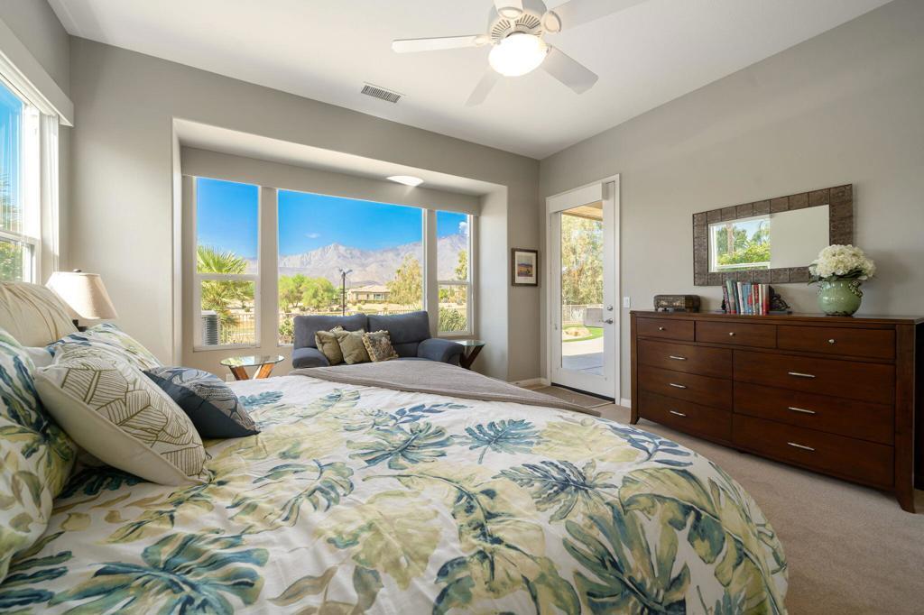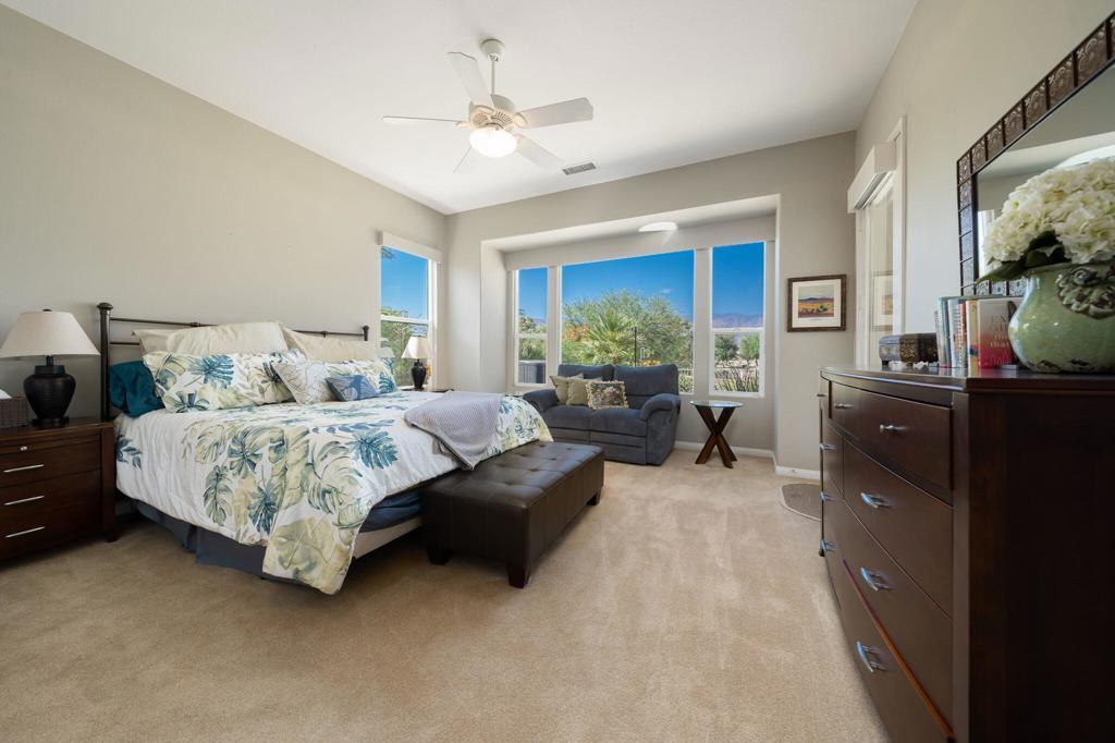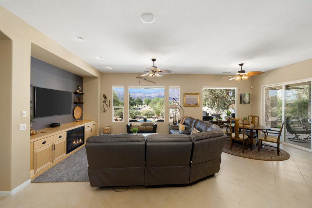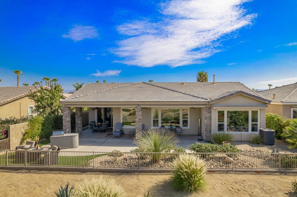 This home is located in the 55+ community of Trilogy La Quinta. Light & bright meticulously maintained Monarch model. 3 bedrooms, 2 baths, this floorplan offers 1845 sq ft of open living space. The great room has 10 ft ceilings and large windows providing ample natural light and views. The kitchen features stone counters, stainless steel appliances and a breakfast bar. The master bedroom has views to the golf course and Santa Rosa Mountains. House has king size bed in the master bedroom, Queen size bed in the guest bedroom and a fold out queen in the third room. The covered patio is great for relaxing. There's also a built-in BBQ and artificial grass are for taking in the views. Trilogy La Quinta is a 55+ gated community offering a vast array of amenities including golf, clubhouses, social activities, fitness centers, pools, sport courts, pickleball, tennis and so much more!