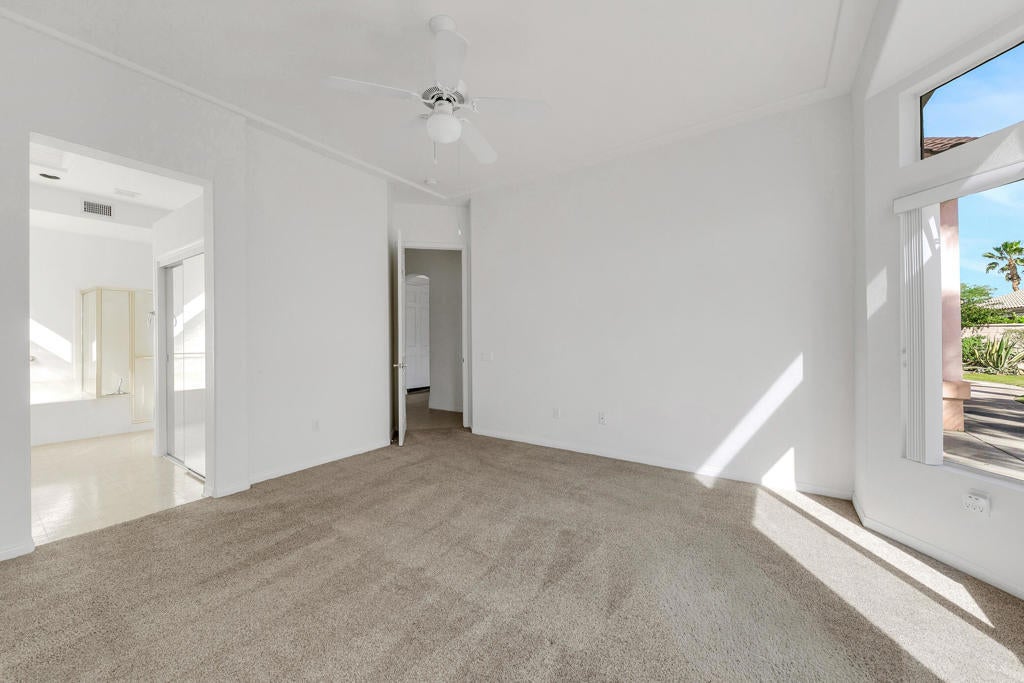 Welcome to 78549 Links Drive, located in the highly sought-after Sun City Palm Desert, a premier 55+ active adult community.This inviting 3-bedroom, 3 full-bath home offers a bright and airy layout, enhanced by skylights that fill the space with natural light. The open kitchen is cheerful and functional, flowing seamlessly into the spacious living room--perfect for both everyday living and entertaining.Offered unfurnished, this home provides a blank canvas to make it your own. Each bedroom is generously sized, and with three full bathrooms, there's plenty of comfort and convenience for both residents and guests.Enjoy all that Sun City has to offer, including resort-style amenities, golf, pools, fitness centers, and a vibrant social lifestyle. HOA fees, cable, internet, and gardener service are all included, adding exceptional value and ease of living.Ideally located near shopping, dining, and entertainment, this home combines comfort with an unbeatable location.Available for $3,000 per month, this is a wonderful opportunity to experience the best of active desert living.
