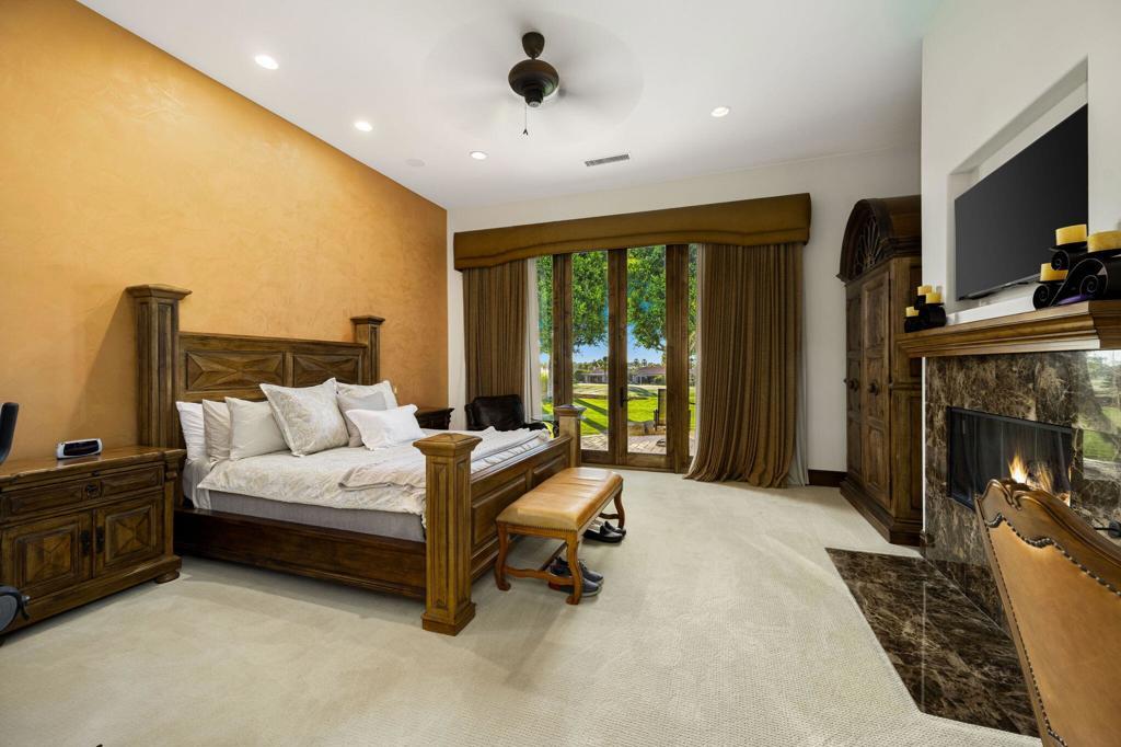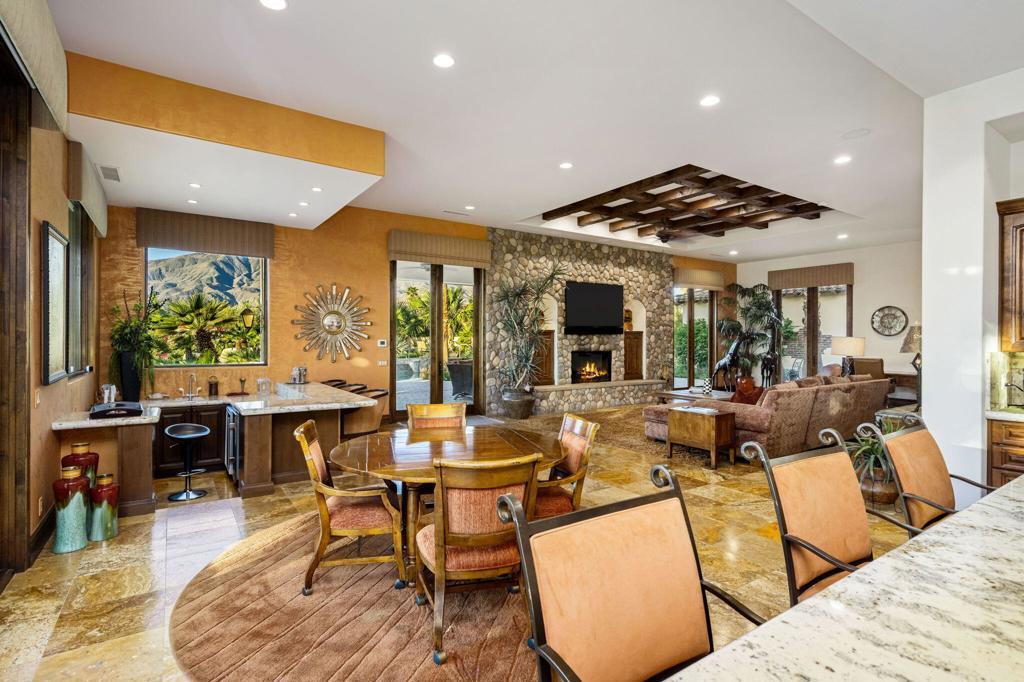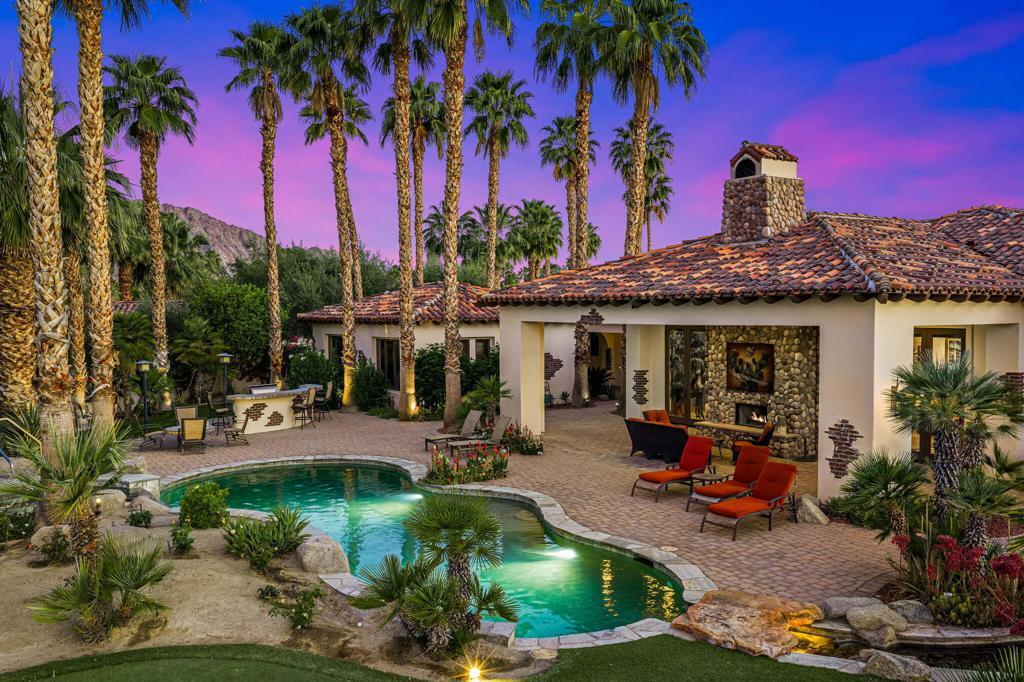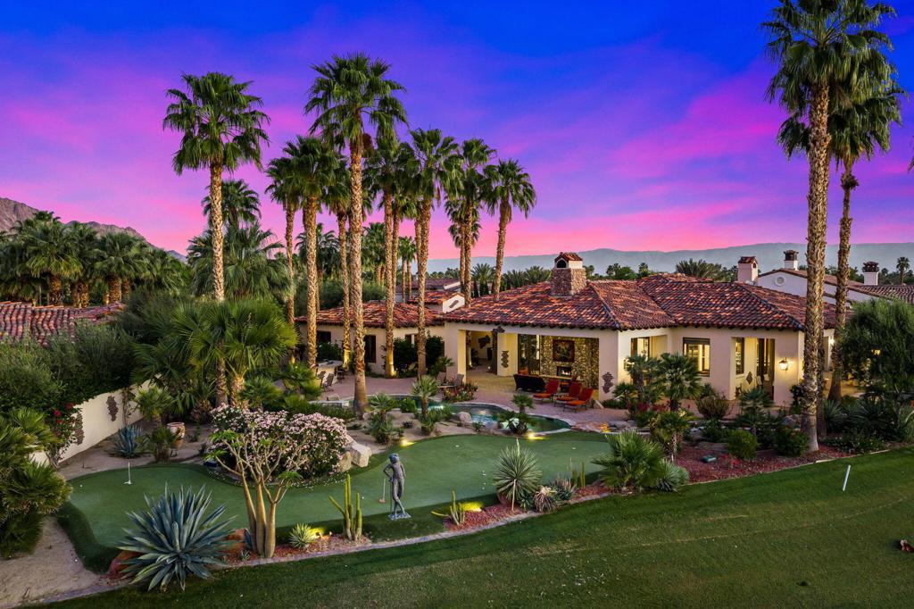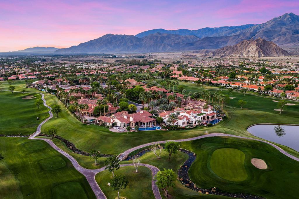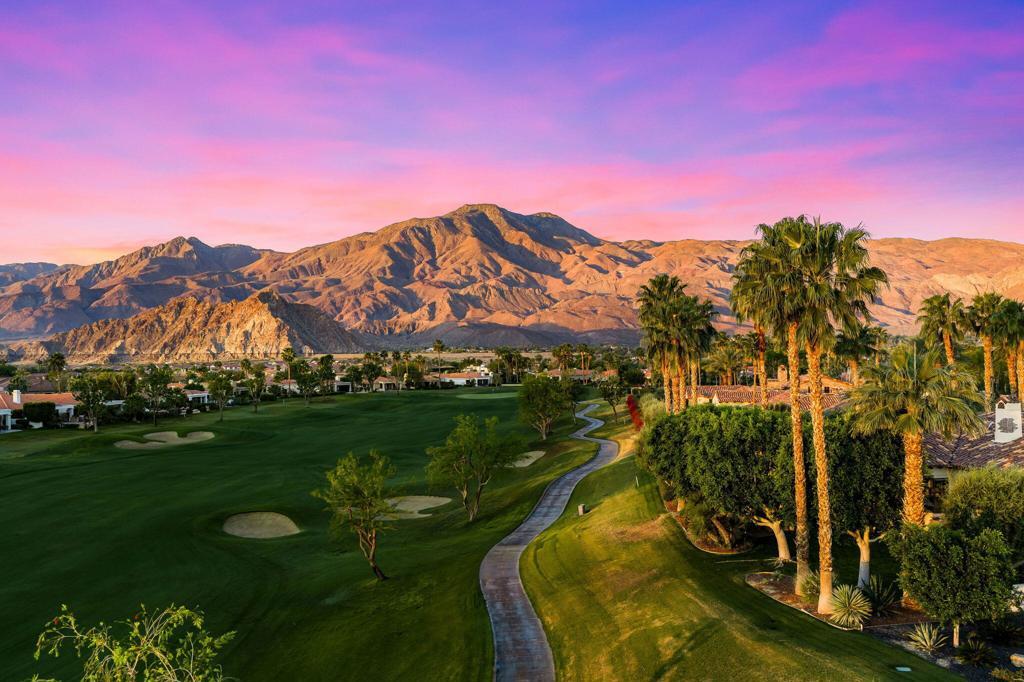Behind its own private gate within Peninsula Park, an exclusive enclave of just 17 homes inside the private gates of PGA West, this exceptional estate spans 4,538 square feet on a 24,394 square foot lot with commanding south-facing views of the Santa Rosa Mountains and the 15th hole of the Tom Weiskopf Private Course. Designed for elevated desert living, the residence includes a private casita and showcases a beautifully appointed chef's kitchen with Wolf appliances, double ovens, warming tray, built-in Sub-Zero refrigerator, and distinctive copper vent hood and sink. Expansive living spaces open seamlessly to a wraparound patio that captures the spectacular golf course and mountain backdrop, while the resort-inspired outdoor setting features a pool, spa, outdoor fireplace, putting green, and BBQ island for effortless entertaining. A rare offering in one of PGA West's most private and prestigious enclaves, this home delivers exceptional scale, privacy, and luxury. Offered furnished per seller's inventory.