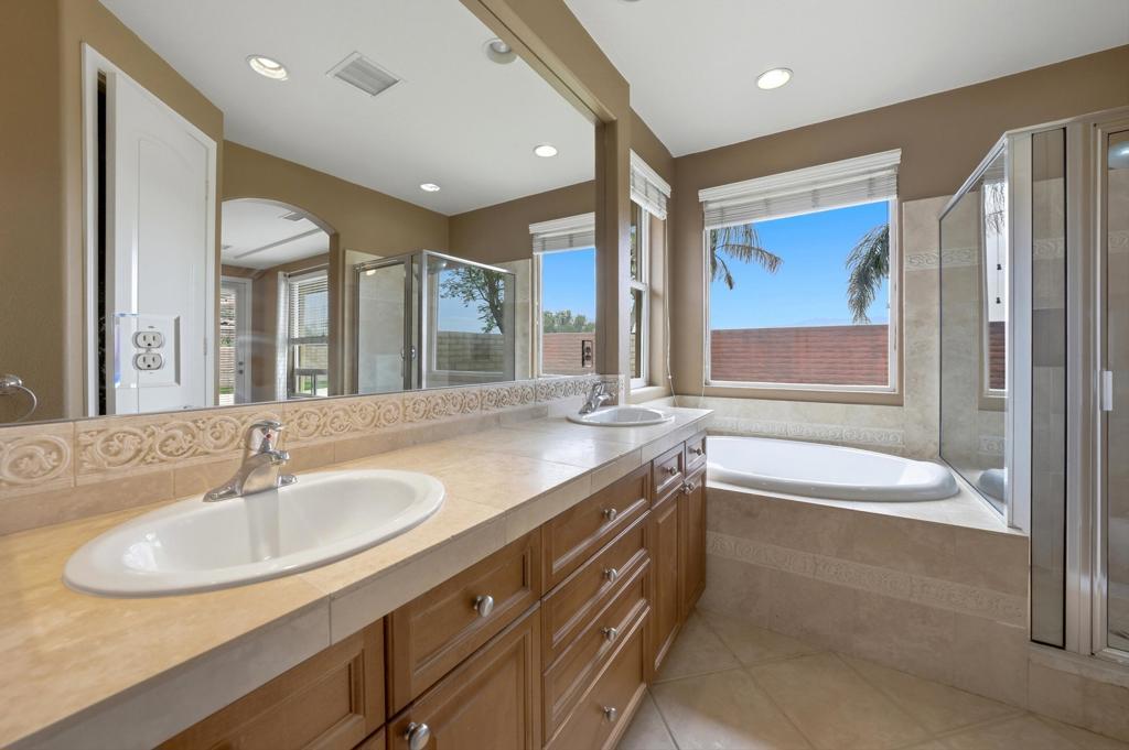 Stunning home with Panoramic San Joaquin Mountain Views! Rarely available and impeccably maintained this is located in one of the most sought-after gated communities, Tuscany in Rancho Mirage. Enjoy breathtaking amazing panoramic views of the San Joaquin Mountains from your own private oasis. Step inside to find a spacious open-concept floor plan featuring elegant custom tile, granite countertops, stainless steel appliances and a large island perfect for entertaining. European-style maple cabinetry provides an abundance of storage. The home is also equipped with dual-zone air conditioning, and cozy fireplace. The expansive primary suite includes a luxurious bath with a soaking tub, enclosed shower, and generous walk-in closet. Step outside to a resort-style backyard where you'll find a saltwater pool and spa with waterfall, and plenty of space to relax or entertain all set against a backdrop of stunning mountain vistas. AND PAID SOLAR! Enjoy the lifestyle this exceptional community offers, with community amenities including a pool, spa, dog park, playground and scenic walking/jogging trails. Centrally positioned with easy freeway access, you're minutes from downtown Palm Springs nightlife, Acrisure Arena, local casinos, and world-class hiking. Walk to Rancho Mirage High School, or make a quick trip to Eisenhower Medical Center--ranked among the nation's Top 100 hospitals.Boutique shopping along El Paseo, championship tennis at Indian Wells Tennis Garden, and Indio's legendary music festivals like Coachella Valley Music and Arts Festival are all within easy reach.You own the land, and the low HOA of $235 include cable and high speed internet. This is desert living at its finest. Don't miss this incredible opportunity!