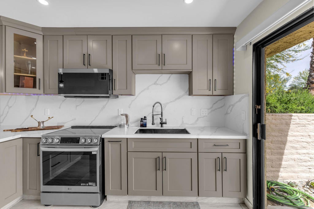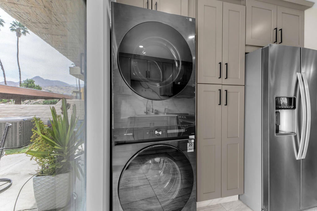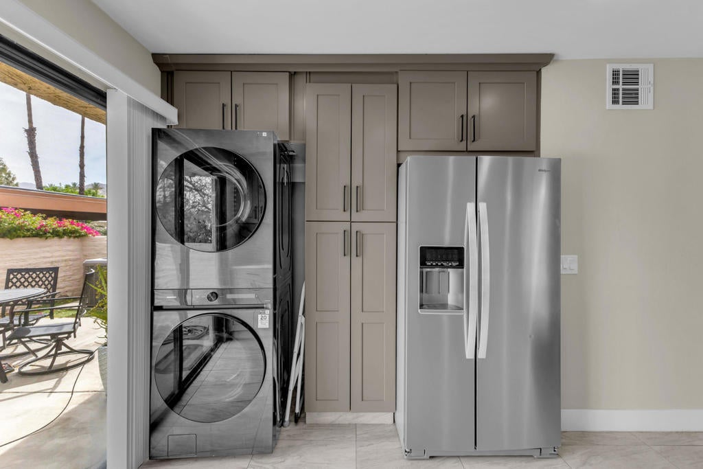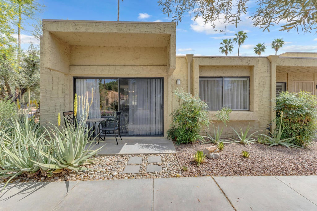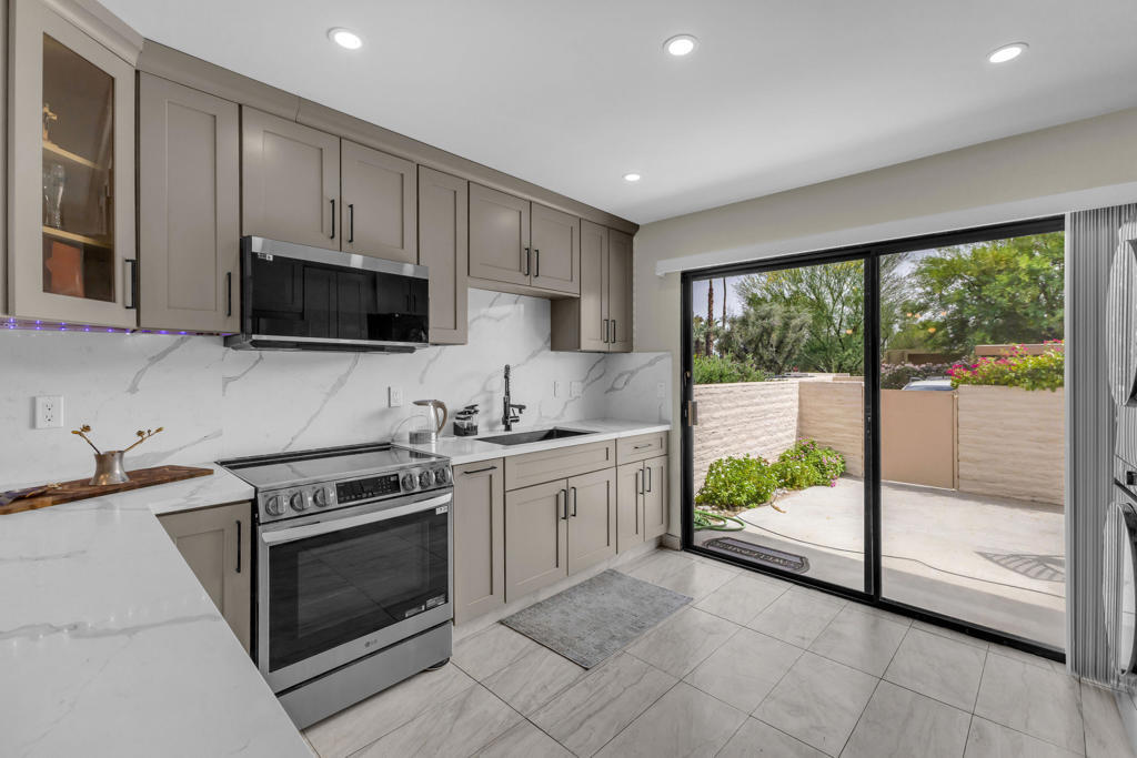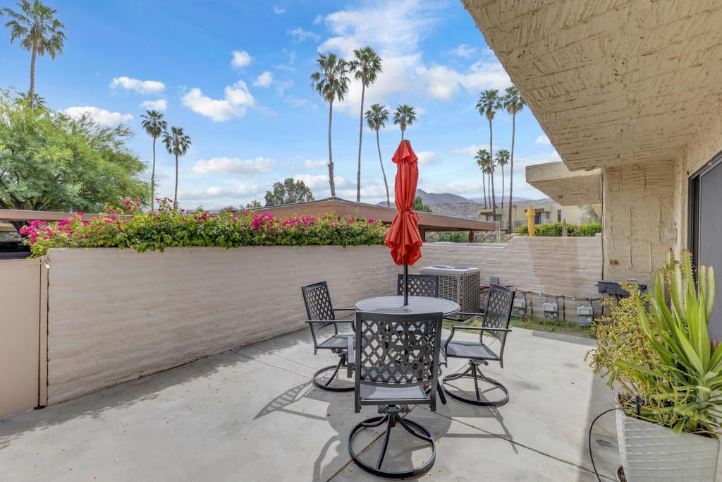 Welcome to this adorable two-bedroom, two-bathroom corner unit condo in Palm Springs. This home features beautiful upgrades throughout, including a remodeled kitchen and updated bathrooms, along with the convenience of a full-size washer and dryer. The private patio offers a perfect space to relax and enjoy the desert lifestyle.Ideally located within the community, this condo is just steps from the swimming pools, tennis courts, and pickleball, providing resort-style amenities right outside your door. The neighborhood is well-maintained and offers a welcoming atmosphere, all while being just minutes from downtown Palm Springs and Rancho Mirage, where you will find dining, shopping, and entertainment.Whether you are searching for a vacation getaway or a full-time residence, this property offers comfort, convenience, and an ideal location. Schedule your private showing today and come experience all that this home has to offer.