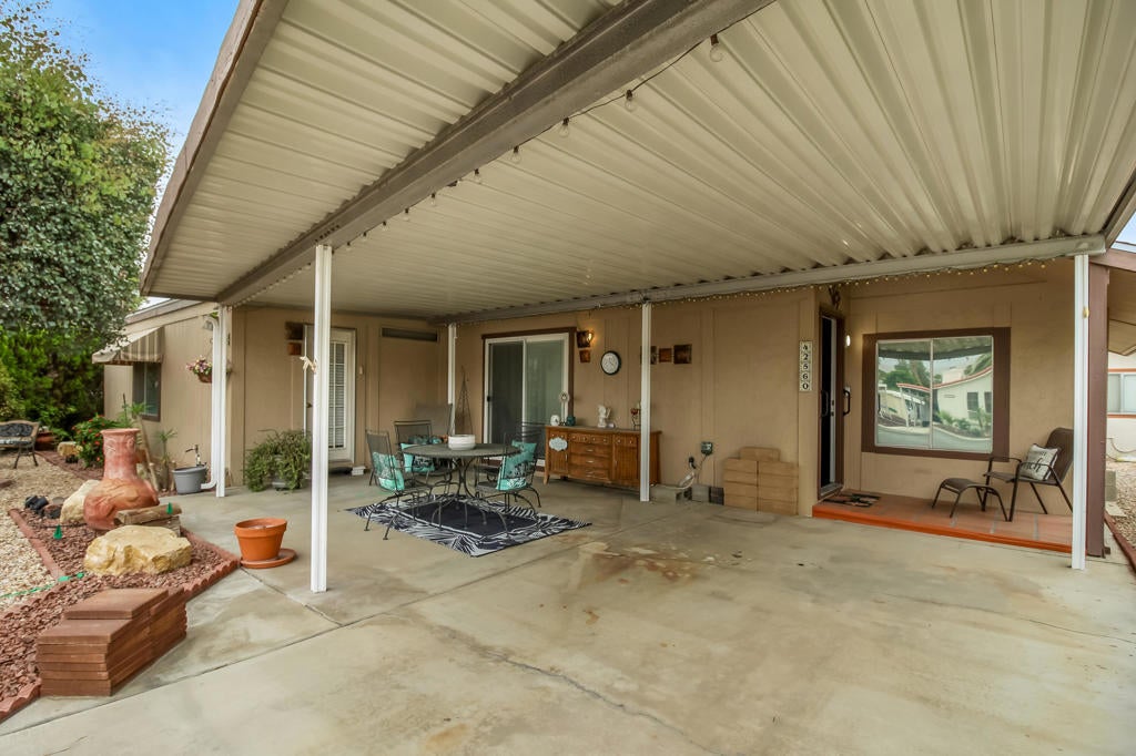 Fully Furnished right down to the China Dishes, this updated home features 3 Bedrooms, Newer Custom Cabinets, Full Backsplash, Linoleum ''Wood Like'' flooring, Updated Bathrooms and so much more! The home offers a Spacious Living and Dining Area, Nice Sized Bedrooms and Plenty of Storage Space. There is a Laundry Room just off the Kitchen with Full Sized New Washer & Dryer. Residents enjoy Resort-Style Amenities including Free Golf, Pools with Spas at 3 locations, Tennis, Pickleball, Bocce Ball, a Dog Park and a Newly Remodeled Clubhouse full of Activities. This 55+ Community has So Much to Offer and its Central Location is Convenient to Shopping, Dining, and Eisenhower Medical Center. Come See For Yourself.