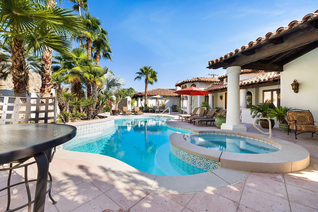 Luxury Santa Barbara-Style Retreat with Rare Privacy & Mountain Views tucked away at Yucatan Cove.Experience elevated, resort-style living in this remodeled Santa Barbara-inspired Spanish Revival Estate, ideally positioned adjacent to the prestigious PGA Mountain Course. Nestled in an exclusive cul-de-sac, this exceptional property offers an extraordinary level of privacy and unobstructed western-facing views of the Santa Rosa Mountains. From the front courtyard and poolside terrace, enjoy sweeping mountain vistas, swaying palms, and stunning sunsets--with no neighboring homes or power lines in sight. This is desert living at its most serene and refined.Exceptional Features Include: Renovated Spanish Revival home with a sophisticated California-cool interior design Incredible west-facing mountain views from pool and outdoor living spaces Rare privacy in a quiet cul-de-sac setting Mature, meticulously curated landscaping Resort-style pool fully renovated with pebble tec, tile, and updated plumbing Outdoor BBQ and bar ideal for entertaining and sunset gatherings Executive-level residence with no HOA Adjacent to world-class golf and nearby amenitiesThis home delivers the perfect balance of luxury, comfort, and privacy, making it an ideal primary residence, second home, or high-end investment property.Rental leases currently in place, offering immediate income potential while securing ownership of this rare desert retreat.
