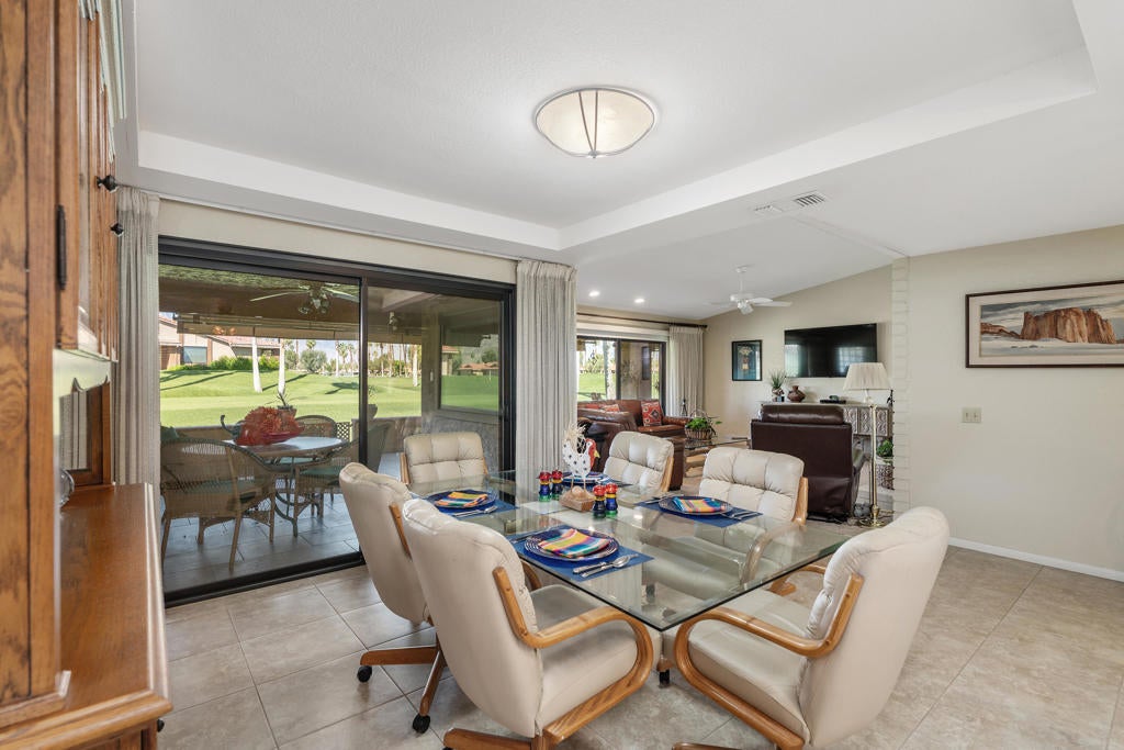 If you have been searching for the ideal blend of luxury, leisure, and location, your wait is over. Situated in the highly coveted Chaparral Country Club, this exceptional three-bedroom, two-bath residence offers a front-row seat to the majestic San Jacinto Mountains and the lush, manicured fairways of the 7th tee.Designed for those who crave an indoor/outdoor lifestyle, the heart of this home is its expansive covered patio. Whether you are sipping your morning coffee while watching golfers tee off or hosting an alfresco dinner against the backdrop of a glowing desert sunset, the expansive mountain and lake views provide an ever-changing masterpiece of natural beauty.Enter into a sanctuary of natural light and tasteful design. The spacious, open-concept floor plan features a chef's kitchen equipped with a newer Viking cooktop, premium stainless steel appliances, and sleek finishes. Enjoy significant energy savings and comfort with solar panels, interior solar shades, and an Insta-Hot water system throughout. A serene space designed for relaxation, complemented by high ceilings and high-end flooring.Living in Chaparral Country Club is more than just owning a home; it's gaining access to a vibrant, active lifestyle. Behind the 24-hour guard-gated entry, you'll enjoy Championship golf, premier tennis, and the increasingly popular pickleball courts, in addition to a fully equipped fitness center and dedicated yoga sessions. The bustling clubhouse features a restaurant, bar, and lounge, plus recreation rooms to shoot some pool or join social clubs for Mahjong, Bridge, and more.Start living the lifestyle you deserve. Schedule your private tour today and see why 23 Camino Arroyo S is the ultimate desert escape.