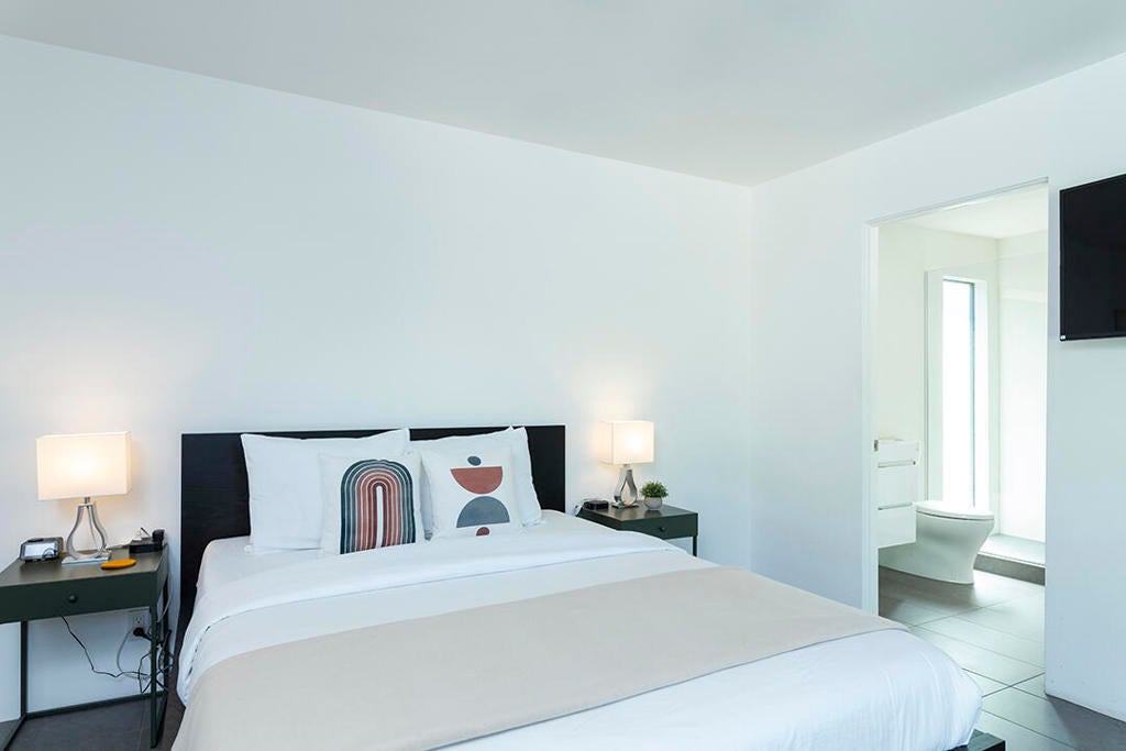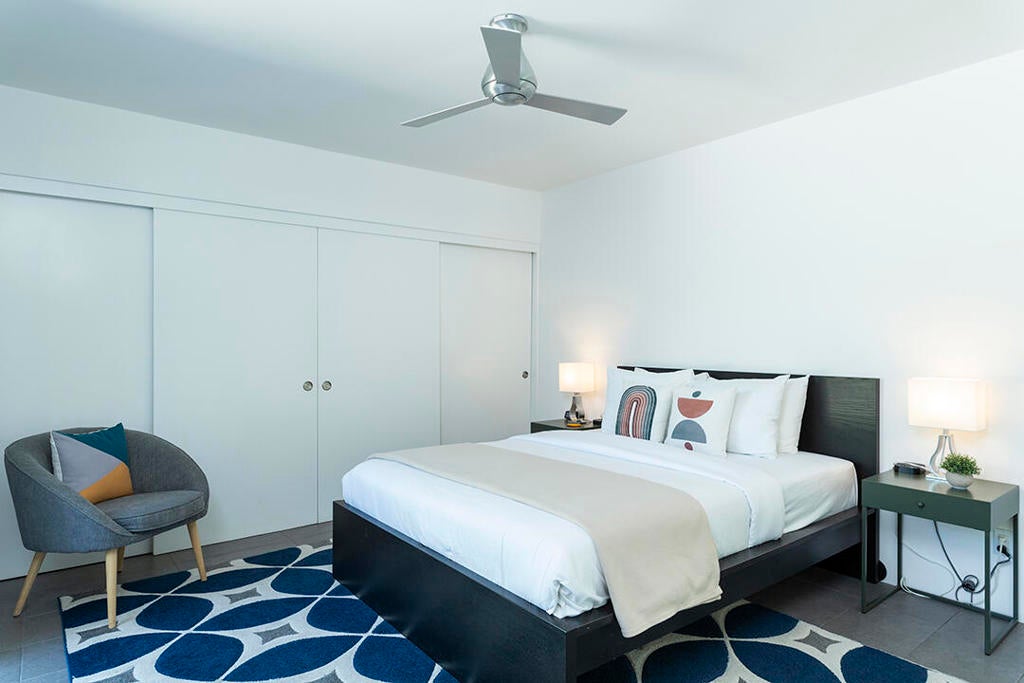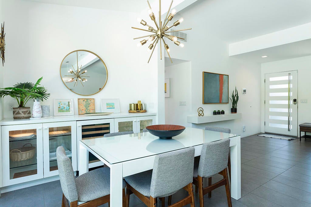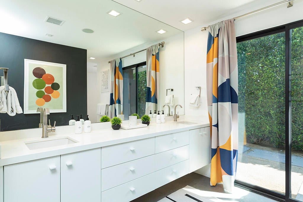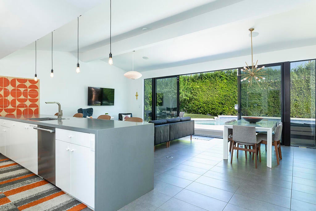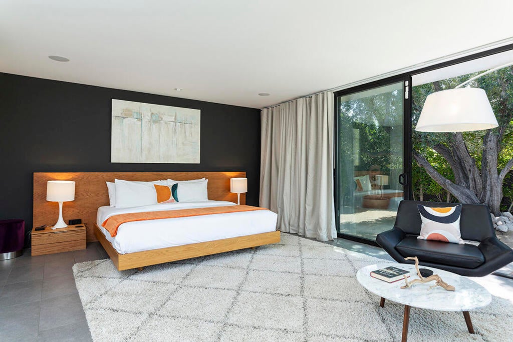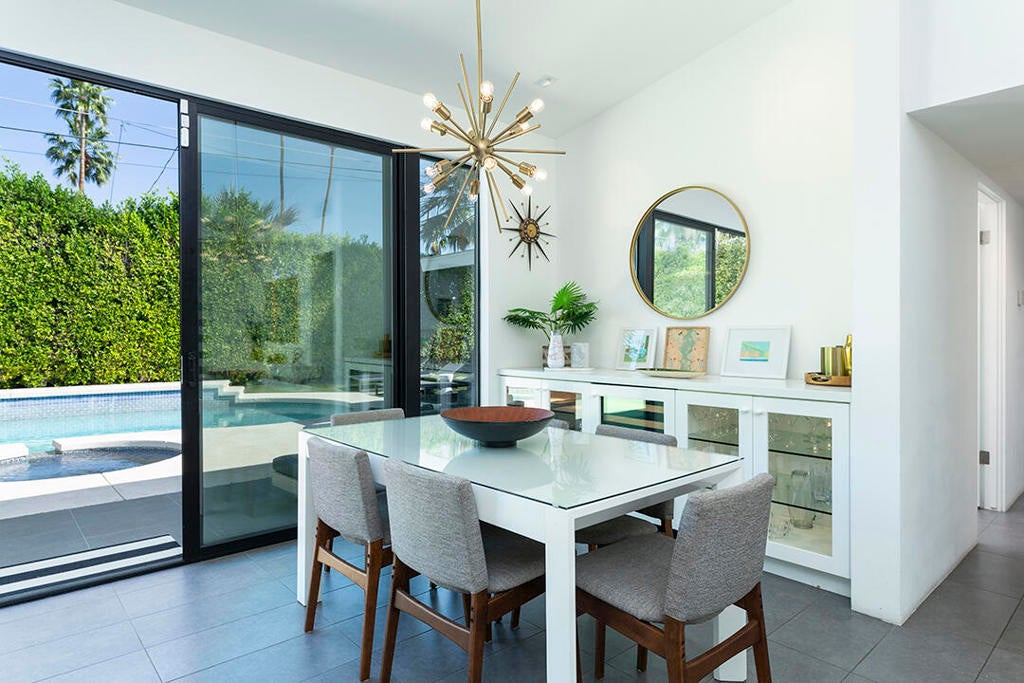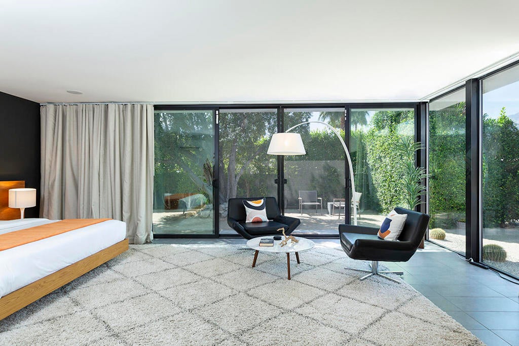 Located just blocks from downtown Palm Springs in Movie Colony East, this 3-bedroom, 3-bath modern California ranch home was taken down to the studs and beautifully remodeled in 2018 by Thomas Troy Home. Thoughtfully redesigned for today's lifestyle, the home features designer finishes, updated windows, and an open floor plan centered around seamless indoor-outdoor living. A standout feature is the spacious owner's retreat, complete with a spa-inspired bath and dramatic corner walls of glass framing the mountain views.The heart of the home is the expansive great room, where the kitchen, dining area, and living room flow together around a generous dine-in prep island. Updated windows and sliding glass doors fill the space with light and open directly to the resort-style backyard, where lush hedging, generous hardscape, artificial turf, and a sparkling pool and spa create the perfect Palm Springs setting for relaxing or entertaining.The primary suite opens directly to the front private courtyard and features a beautifully finished spa-like bath with floating vanities and refined contemporary finishes. A rear guest suite enjoys its own stylish bath and direct access to the pool area, while the third bedroom is privately positioned near the guest bath.Beyond its design and amenities, the home offers an exceptional sense of privacy. Once you enter through the front courtyard gate to the beautifully landscaped front courtyard centered around an art-deco fountain, you can completely escape the world beyond. Additional highlights include owned solar installed in 2022, a two-car garage, newer HVAC, fire pit and outdoor grilling station, as well as a strong rental potential with Movie Colony East's junior permit allowing up to six short-term rentals per year. Main HVAC installed 2021 and new mini split system installed in 2024 Dining room bar area has wine refrigerator Fire pit in side yard Back wall of pool has spill over fountain Built-in BBQ/grilling station Furniture available outside of escrow per inventory