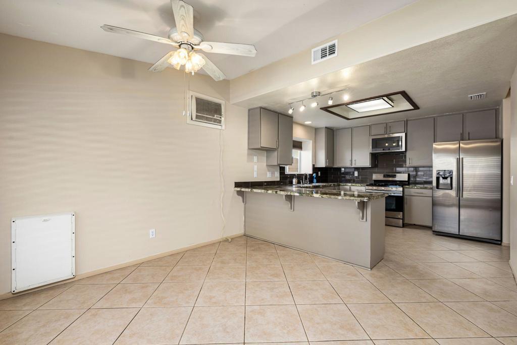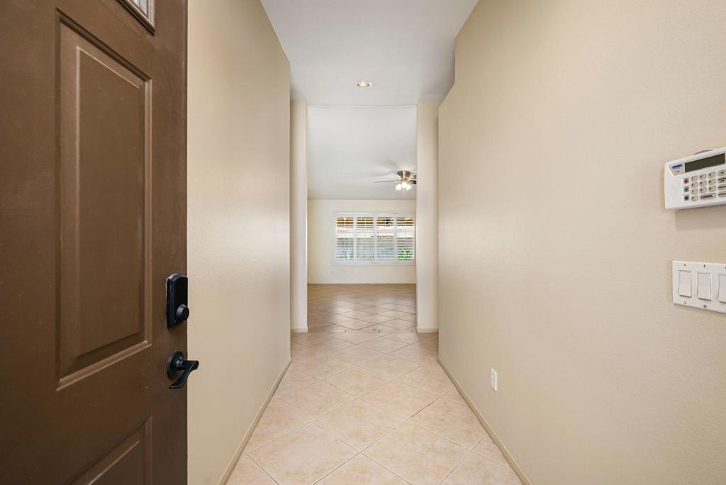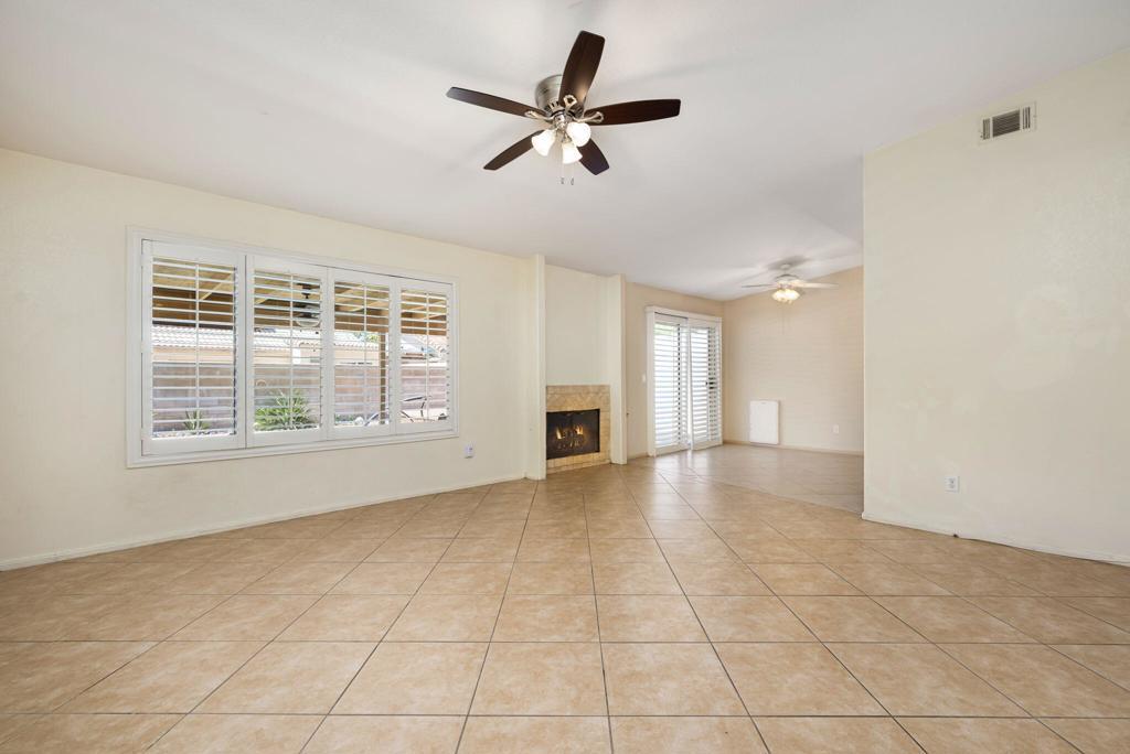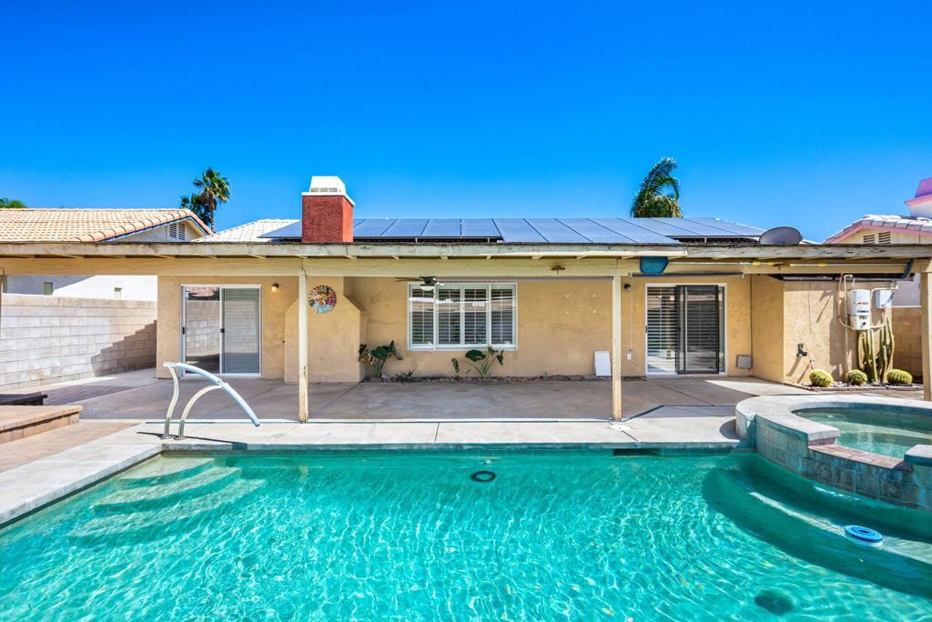 Welcome to this well-appointed 3-bedroom, 2-bath home offering 1,509 square feet of comfortable living in Cathedral City. Vaulted ceilings create an open, airy feel, while tile flooring and classic window shutters add both style and functionality throughout.The kitchen features quartz countertops and a newer stove, seamlessly connecting to the main living area anchored by a cozy fireplace. The primary suite offers a recently updated bathroom with clean, modern finishes.Designed with both efficiency and outdoor living in mind, the home includes owned solar with 39 panels, a soft water system and a salt water pool. A covered patio extends the living space outdoors, creating an ideal setting for relaxing or entertaining.