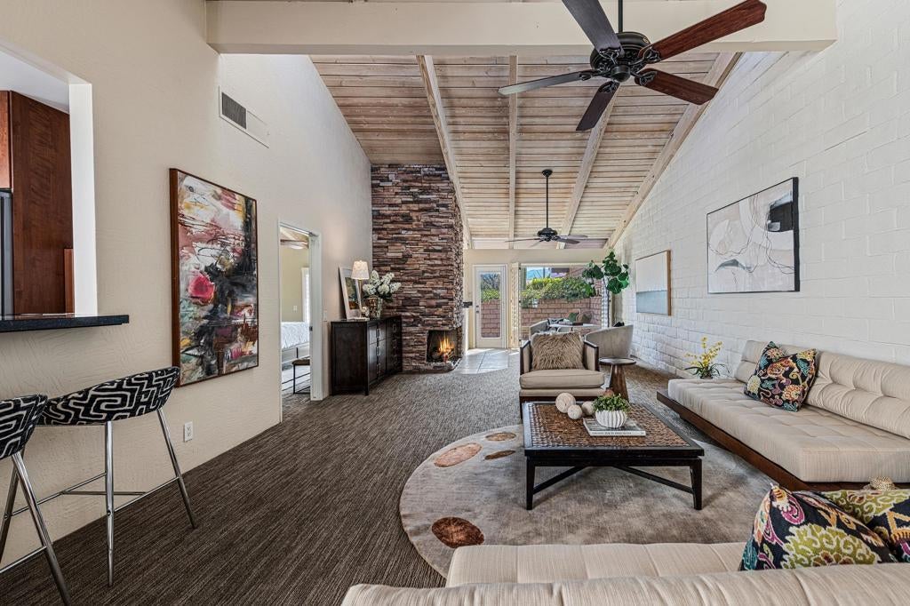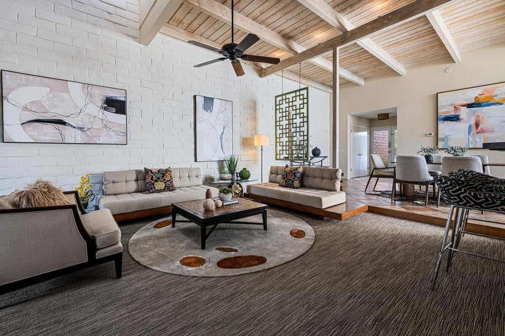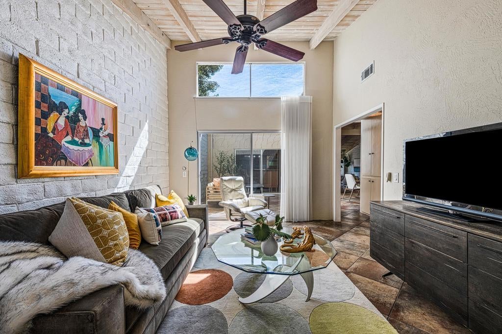 Exceptional Value in Palm Springs' Iconic Deep Well RanchWelcome to a rare opportunity in one of Palm Springs' most sought-after neighborhoods, Deep Well Ranch. Bathed in warm desert light and framed by stunning mountain views, this spacious 3-bedroom, 2-bath residence offers 2,054 sq. ft. of comfortable, character-rich living--at an exceptional value. Designed by renowned architect Barry Berkus, this home showcases authentic Spanish-style elements including 12-inch adobe walls, soaring 14-foot beamed ceilings, clerestory windows, and whitewashed shiplap accents. The open, sun-filled floor plan seamlessly connects the living, dining, and kitchen areas--ideal for relaxed everyday living or entertaining friends and family. Step outside to your private patio, which opens directly onto a lush community greenbelt filled with mature trees, flowering desert plants, and the soothing sounds of songbirds--an ideal setting for morning coffee or evening gatherings.Located in southern Palm Springs, the guard-gated Deep Well Ranch neighborhood has recently completed multi-million-dollar infrastructure improvements, including newly paved streets, enhanced lighting, refreshed landscaping, and a forward-thinking, community-focused HOA. Additional highlights include, two-car garage, generous storage throughout, three community pools and spas. tennis / pickleball court, expansive walking paths 24/7. It's just minutes from Palm Springs favorites such as L'Horizon, Koffi, El Jefe, Mr. Lyons, and Smoketree Plaza. Whether you're seeking a full-time residence, seasonal retreat, or investment opportunity, this home offers remarkable value, architectural pedigree, and the chance to personalize or modernize at your own pace.Don't miss this opportunity to enjoy the Palm Springs lifestyle--now at a more attainable price point.