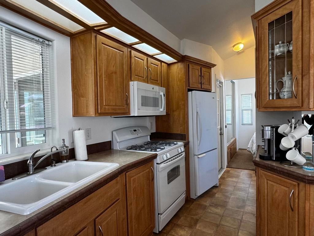 Beautiful, clean, and very well-maintained 2010 park model, ready for its new owner. Situated on a large corner lot with added privacy, this home offers comfort, functionality, and inviting indoor-outdoor living. Features include two storage areas, both equipped with small AC systems, plus a washer and dryer for added convenience. There is also an enclosed California room, along with a lovely outdoor sitting area where you can relax and take in the beautiful desert backdrop.Located in the desirable Rancho Casa Blanca community, residents enjoy an impressive array of amenities including free golf year-round, a fitness center, pickleball and tennis courts, pools and spas, bocce ball, a billiard room, and a horseshoe pit. The community also features two large clubhouses and four satellite buildings with access to over 60 clubs and classes. For added peace of mind, Rancho Casa Blanca is guard-gated with security patrol.Whether you are looking to relax or stay active, this vibrant community has something for everyone. Hop in your golf cart and enjoy all the amenities and social activities this exceptional neighborhood has to offer. Don't miss this incredible opportunity. Call today to schedule your private showing and see this desert gem for yourself.