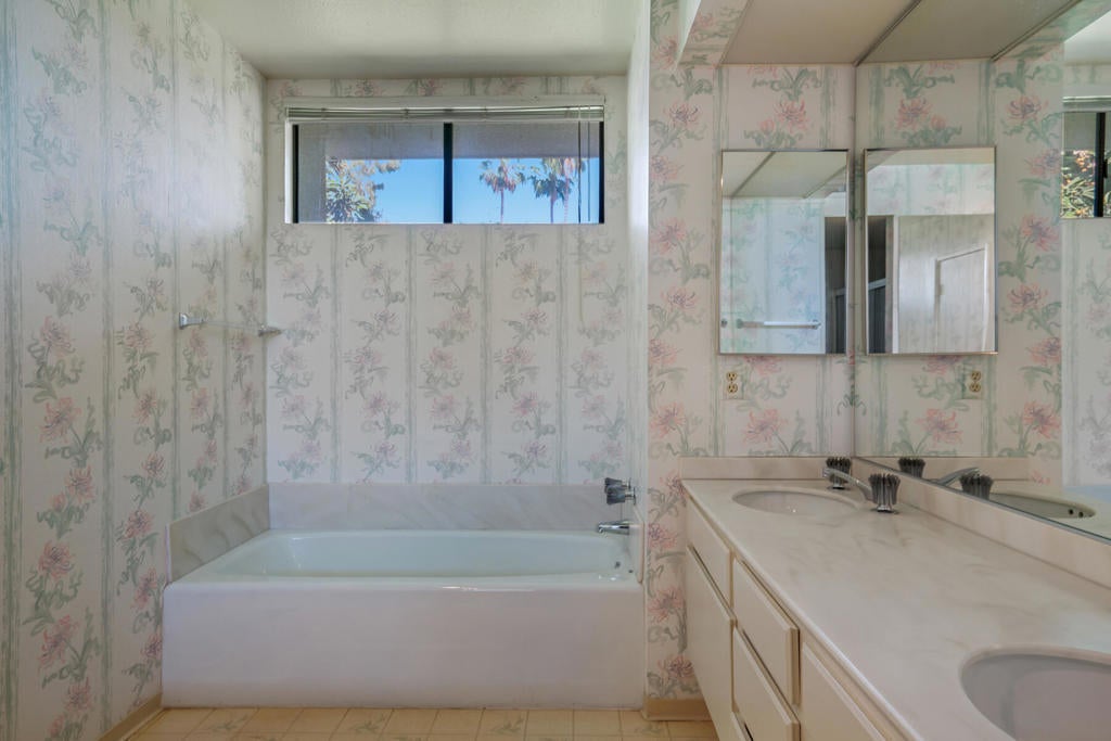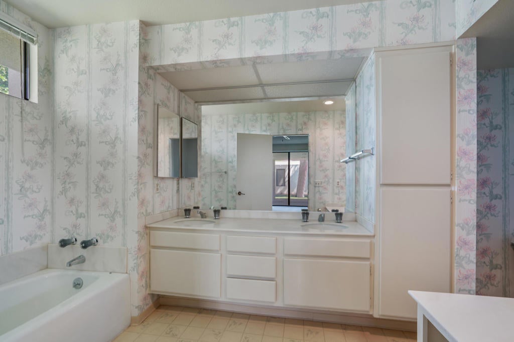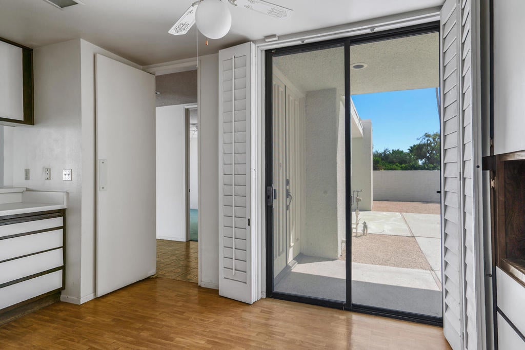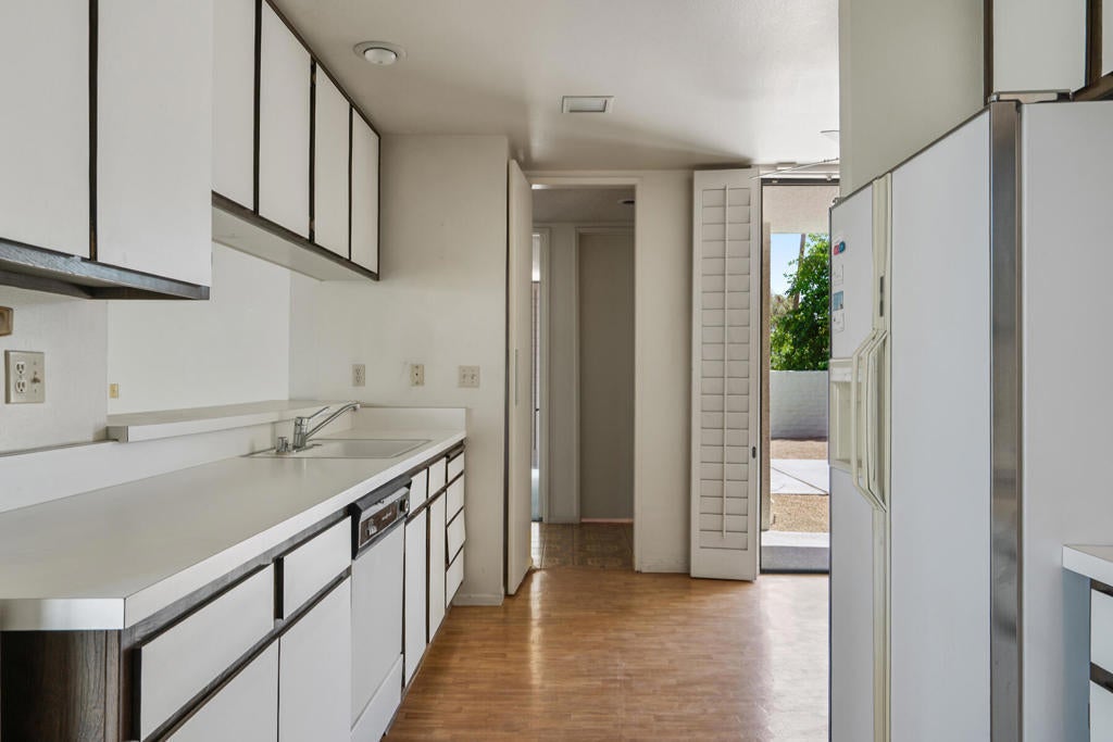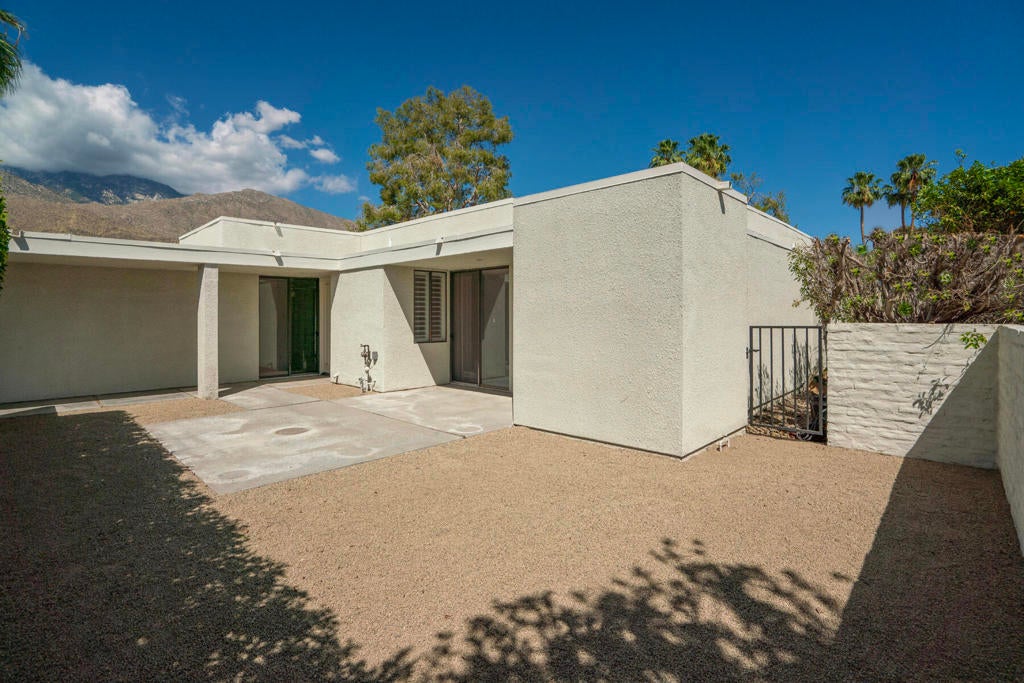 Located in the highly desirable Canyon South 5 community in South Palm Springs, this spacious stand alone residence offers a rare opportunity to create your own vision in one of the area's most sought-after enclaves. Set within the Twin Palms neighborhood, known for its architectural significance and proximity to downtown, shopping, and dining, the property enjoys a prime interior location surrounded by lush greenbelts and mountain views. The home features an expansive floor plan with generous living spaces and a seamless indoor-outdoor flow that opens to a private patio, perfectly positioned for quiet relaxation or entertaining under the desert sky. The layout offers excellent bones and scale, ideal for a thoughtful renovation or reimagining. Canyon South 5 is known for its low-density design, wide open grounds, multiple pools and spas, and a peaceful resort-like setting, just minutes from the energy of Palm Springs.Offered as-is, this is a compelling opportunity for buyers seeking value, location, and the ability to customize within a well-established and architecturally appealing community.