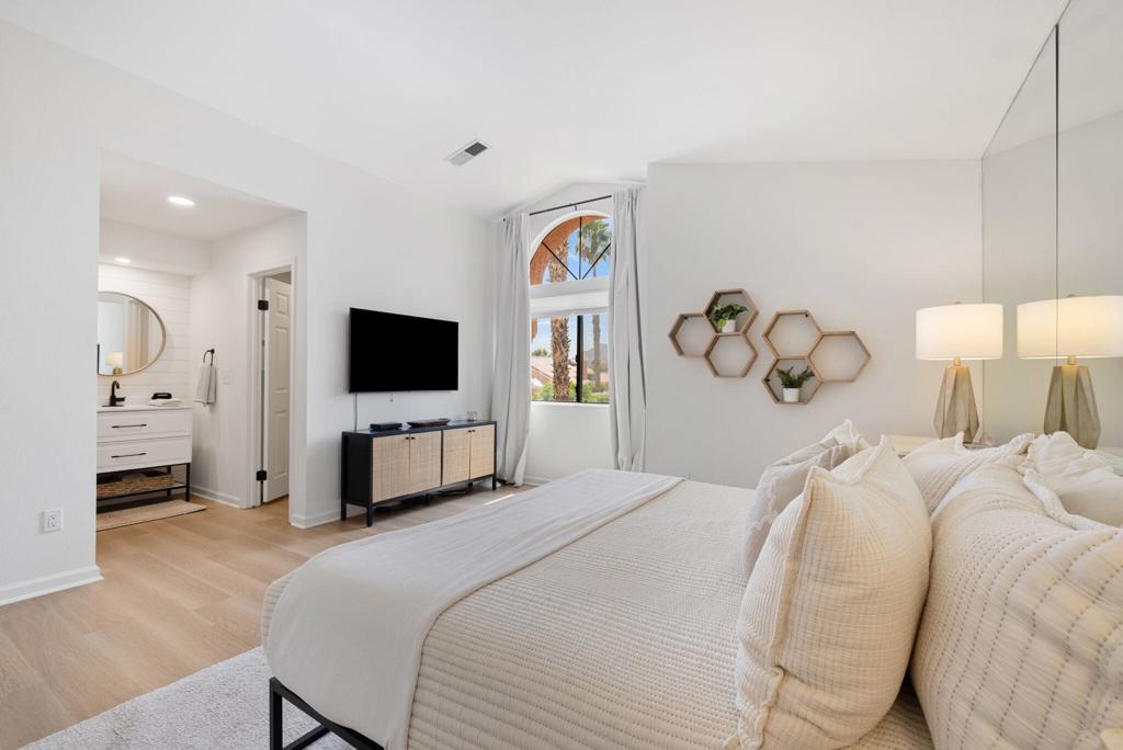 Nestled on a desirable corner lot, this beautifully upgraded home offers modern comforts and stylish finishes throughout. The kitchen boasts gorgeous quartz countertops and brand-new cabinets. Enjoy the outdoors in the private courtyard and patio, perfect for relaxation or entertaining. The home features two spacious primary suites, each with generous closet space, providing ultimate comfort and privacy. Additional highlights include tinted windows for energy efficiency and a Tesla solar system with backup battery. Oasis Country Club is member owned and has a plethora of activities such as tennis, pickleball, golf, putting course, fitness center, library, dog park and a remodeled clubhouse with a grill room for convenient breakfast or lunch. The golf course is one of the top executive courses in California! There is so much to do and see in this stunning community. Don't miss this one!