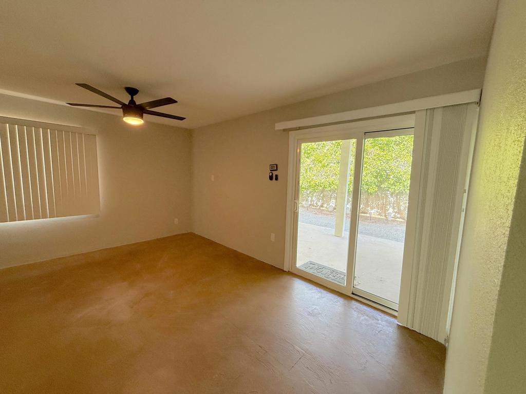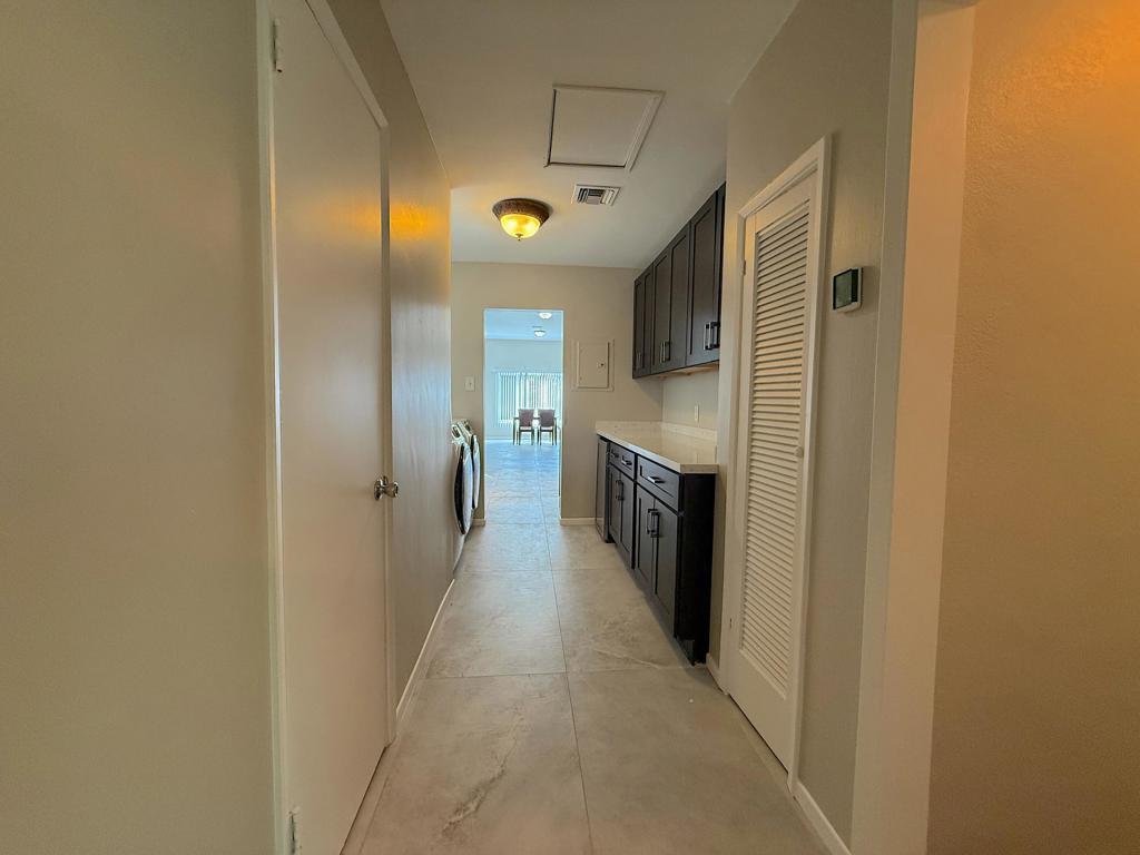 Warm Sands home featuring an open-concept layout. The kitchen offers sleek cabinetry, quartz countertops, stainless steel appliances, and ample storage, flowing seamlessly into the spacious living and dining areas which are ideal for entertaining. Bathrooms have been improved, including a walk-in shower with designer tile. A large indoor laundry area with additional cabinetry and workspace adds everyday convenience. Step outside to a private, low-maintenance backyard with a covered patio--perfect for relaxing or hosting gatherings. Conveniently located near shopping, dining, and local amenities.
