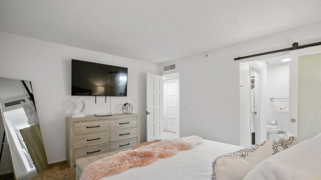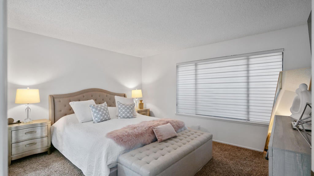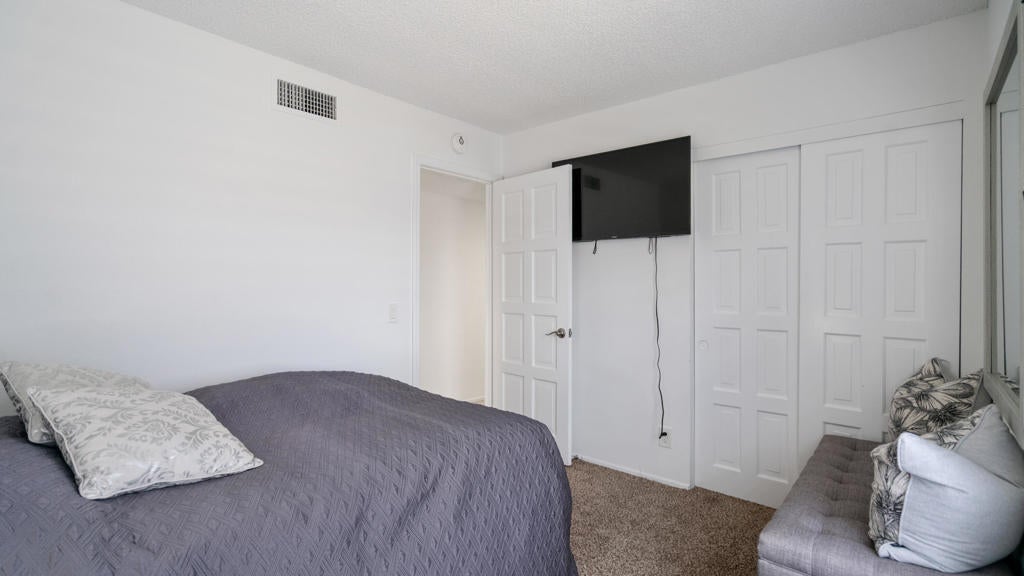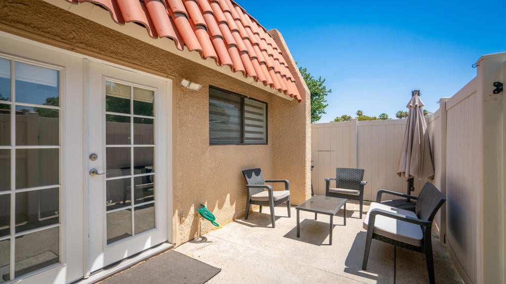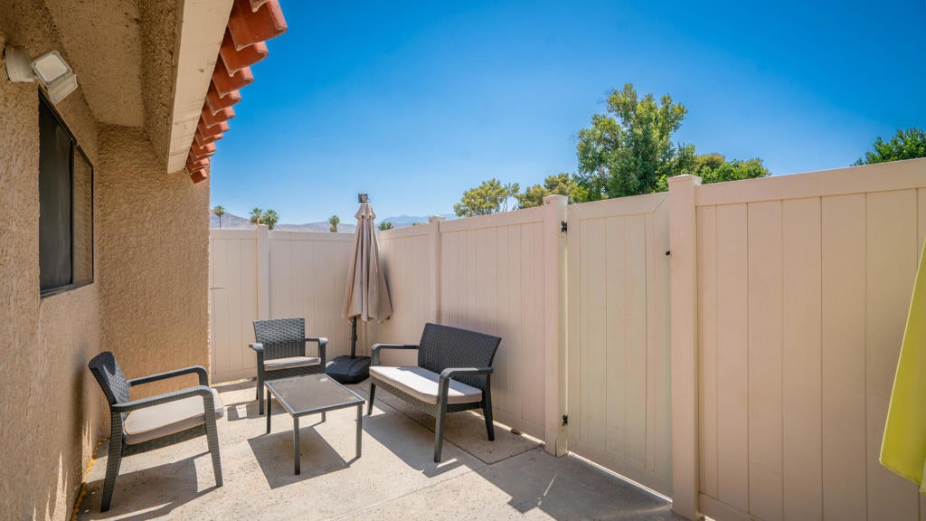This charming condominium is located in a picturesque gated community. Features three bedrooms and two bathrooms. The living room displays a gorgeous view of the surrounding mountains. This end unit has green belts and is a perfect space for quiet, comfortable living. Just steps away from the community pool. It also offers an enclosed private patio with access to two assigned parking spaces. Remodeled master bathrooms with dual sinks and a shower. The condo is being offered furnished, including a refrigerator, washer, and dryer. The community holds many possibilities in terms of fun activities. It provides multiple pools with spas and tennis courts for the active person. For those who prefer more luxurious options, this condo is near the restaurants, stores, and a movie theater in The River outdoor mall. This is the perfect place to call home!
