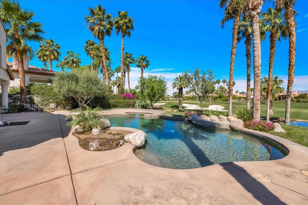 Experience the quintessential Rancho La Quinta lifestyle in this sought-after Montana 1 floor plan, a residence meticulously maintained by its original owners as a cherished full-time home. Situated on the picturesque 8th green of the Jerry Pate course, this property offers a front-row seat to the desert's natural beauty, featuring a private backyard oasis complete with a sparkling pool, spa, and the soothing sounds of a flowing stream and waterfall. The architecture seamlessly blends elegance with functionality, anchored by a magnificent great room where 10-foot Fleetwood sliders create a fluid indoor-outdoor living experience. Timeless features inside the home include travertine flooring throughout all living areas and a thoughtful modification to an interior guest suite, where an added slider creates a secondary attached casita. This is a fantastic opportunity to acquire a premier location within a community currently elevating its lifestyle offerings; the Clubhouse renovation is nearing completion, and the groundbreaking of a new 10,000-square-foot state-of-the-art fitness center is just around the corner. As the current owner prepares for her next chapter, this is your moment to secure a legacy property and curate the desert retreat you have always imagined. Whether you are an avid golfer or a connoisseur of fine living, this home delivers the perfect fusion of character, potential, and the vibrant lifestyle that defines Rancho La Quinta.