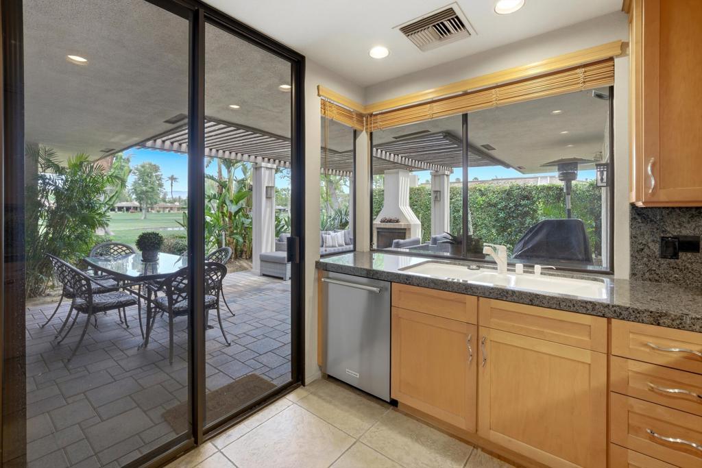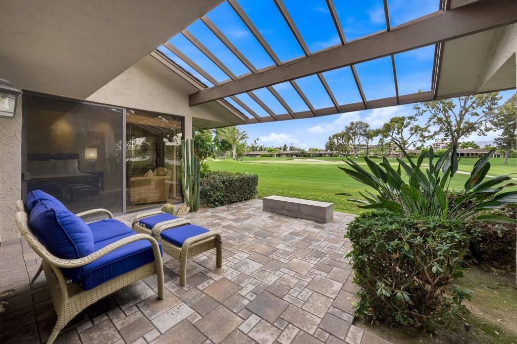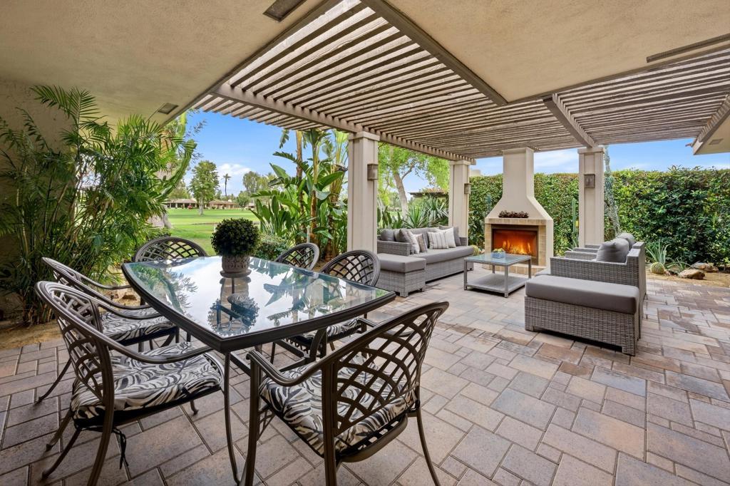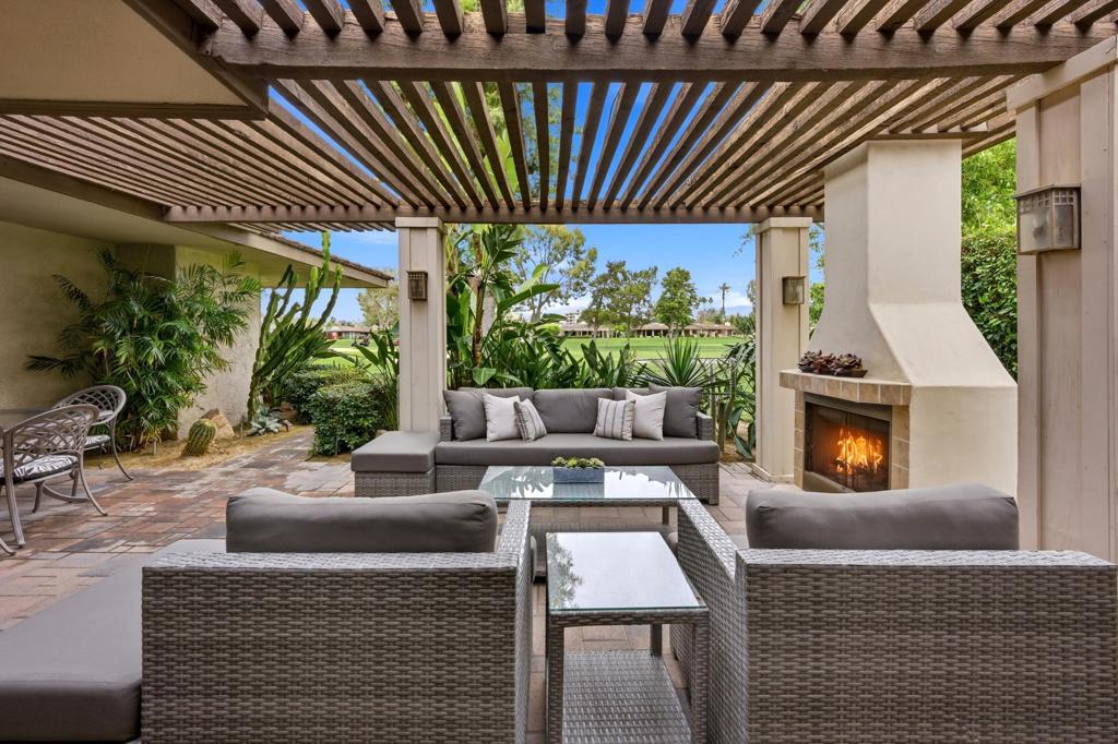Located in the heart of Rancho Mirage, in the gated community of The Springs, this inviting home offers sweeping double fairway golf course views and a relaxed desert lifestyle. Perfectly positioned with no immediate neighbor to your east, affording additional privacy and a light open feel. Designed for both comfort and entertaining, the outdoor living space features a charming pergola with a fireplace and ample seating--ideal for cozy evenings spent fireside under the desert sky.Inside, the home offers two generous ensuite bedrooms, providing privacy and comfort for residents and guests alike, along with a versatile third bedroom that can easily serve as a home office or additional guest room. The charming eat-in kitchen is well-appointed with stainless steel appliances and generous workspace, making it both functional and welcoming. Whether you're enjoying peaceful mornings overlooking the fairways or hosting intimate gatherings in the outdoor living area, this home captures the essence of easy, elegant Rancho Mirage living. The Springs features amenities such as golf, tennis, pickle and bocce ball along with a fitness center and clubhouse that plays host to numerous club and social activities year-round. The Springs is where you belong!
