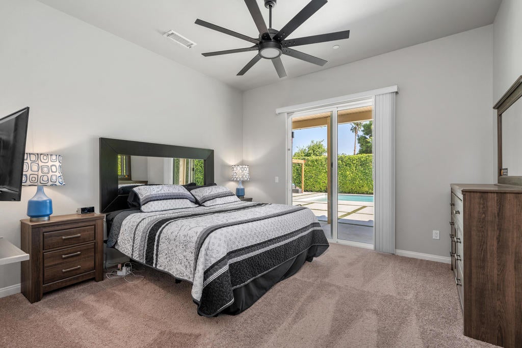 Welcome to 68810 Hermosillo Rd, a beautifully designed 4-bedroom, 3-bath home built in 2020 that blends modern style, comfort, and functionality. This newer construction residence features a bright, open-concept floor plan filled with natural light, creating a warm and inviting atmosphere ideal for both everyday living and entertaining.The spacious chef's kitchen serves as the heart of the home, complete with sleek quartz countertops, stainless steel appliances, a generous pantry, and ample cabinetry--perfect for preparing meals and gathering with friends and family. The thoughtful layout offers excellent separation of space, including a versatile guest suite with its own private entrance and en-suite bathroom, making it ideal for extended family, guests, or a potential attached casita.Step outside to your private backyard retreat where a pristine saltwater pool and spa create the ultimate desert oasis. Enjoy relaxing evenings under the covered patio while taking in breathtaking desert sunsets and mountain views.Additional highlights include energy-efficient windows, a modern HVAC system, and a financed solar system with approximately 27 panels, providing ample electricity for the home and helping improve long-term energy efficiency.Ideally located in Cathedral City, this home offers convenient access to nearby parks, schools, shopping, and dining. Residents enjoy being just minutes from downtown Palm Springs, the vibrant El Paseo shopping district, world-class golf courses, hiking trails, and all the lifestyle amenities the Coachella Valley is known for.Experience the perfect blend of modern living and desert lifestyle. Reach out today to schedule your private showing!