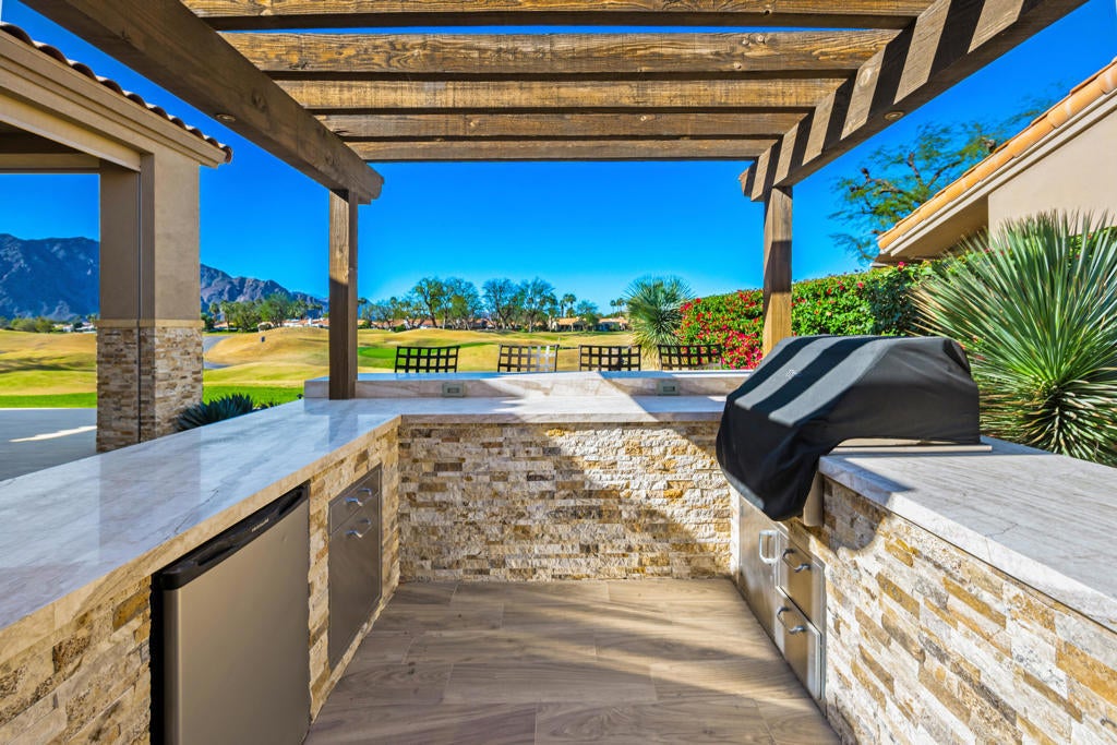 Great value! This home has an incredible location and so many upgrades!! Nestled alongside the 7th green of the legendary TPC Stadium Course at PGA WEST, this home is a masterpiece of luxury and style. This stunning 3-bedroom, 3.5-bathroom, 3,450 sq. ft. home offers a rare blend of privacy, elegance, and breathtaking surroundings. The interior was just painted enhancing the custom detail throughout this beautiful home. Imagine viewing the serene lake views and the rugged beauty of the Santa Rosa Mountains, with every sunset painting a masterpiece just for you. The outdoor living space is an entertainer's paradise--picture yourself hosting unforgettable gatherings around the firepit or at the custom sit-down BBQ island, under the comfort of a large covered patio with overhead heaters and fans. It's the ultimate oasis for enjoying desert evenings with friends and family. Inside, the home's thoughtful updates and spacious layout elevate every moment. The fully remodeled kitchen is a chef's dream, while the luxurious primary bath, complete with a dual-head shower, offers a spa-like retreat. The redesigned sit-down bar is perfect for mixing cocktails and sharing stories, and the powder room adds a touch of sophistication. There are also 3 fireplaces that add to the comfortable feel of this home. A large courtyard provides even more options for outdoor relaxation or a perfect area for your canine friends. There is also a large 2.5 car garage with plenty of room for 2 cars and a cart. Whether you're savoring the iconic golf course views, unwinding in the comfort of your private retreat, or friends and family, this home embodies the best of desert living. Luxury, comfort, and an unbeatable location. Offered turnkey furnished per inventory!