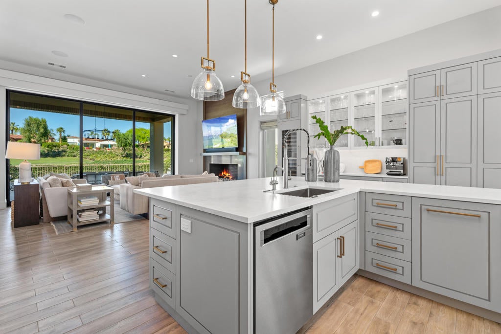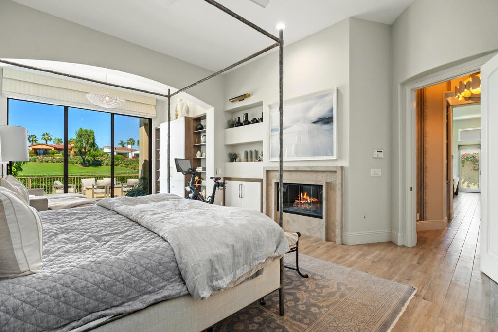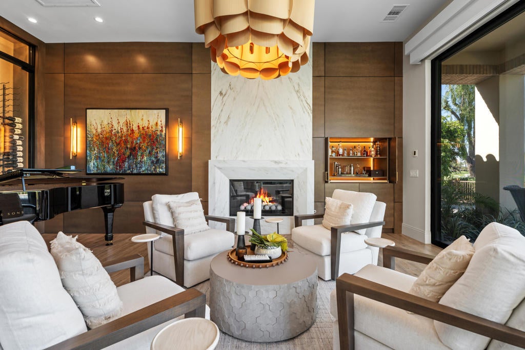 Experience resort style living at its finest in this exquisitely reimagined residence, perfectly positioned along the picturesque 8th hole of the South Course in the prestigious, guard gated community of Toscana. Recently renovated inside and out by a top design firm, this home blends modern elegance with timeless sophistication, offering an unparalleled living experience.Inside, dramatic disappearing pocket doors create a seamless connection between the refined interior and the breathtaking outdoor oasis. The great room is anchored by one of the home's three fireplaces, complemented by whole house audio, sleek electric blinds, and designer finishes throughout. Entertaining is effortless with a hidden bar, ideal for intimate gatherings or lively celebrations, and a stunning temperature controlled wine wall that showcases your collection in style.The gourmet kitchen and living spaces flow effortlessly to the outdoors, where a fully renovated pool features tranquil waterfalls and all new equipment. Enjoy evenings under the stars, hone your short game on the private putting green, or unwind on the expansive patio overlooking double fairway and mountain views.The luxurious two room casita offers exceptional comfort for guests, complete with French doors leading to a private patio, creating a serene retreat. Additional highlights include owned solar, a 3 car finished garage with AC, and designer enhancements at every turn.This is more than a home -- it's a beautifully curated lifestyle. Welcome to your private sanctuary in Toscana.