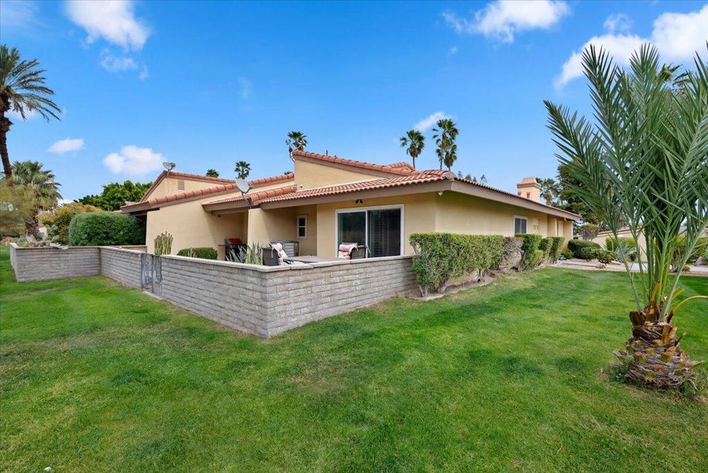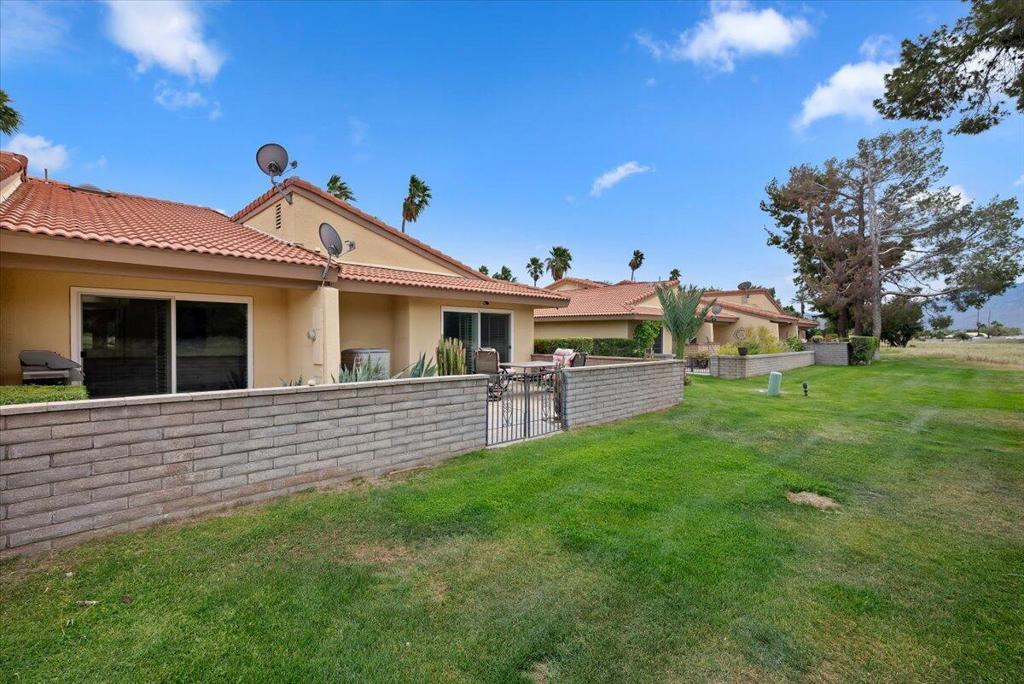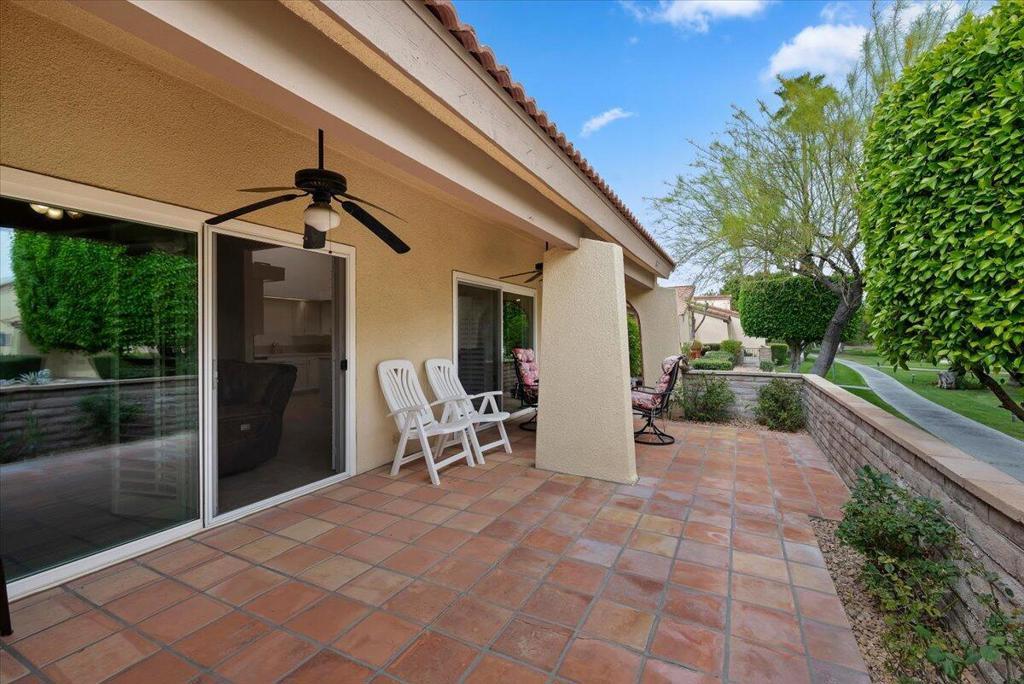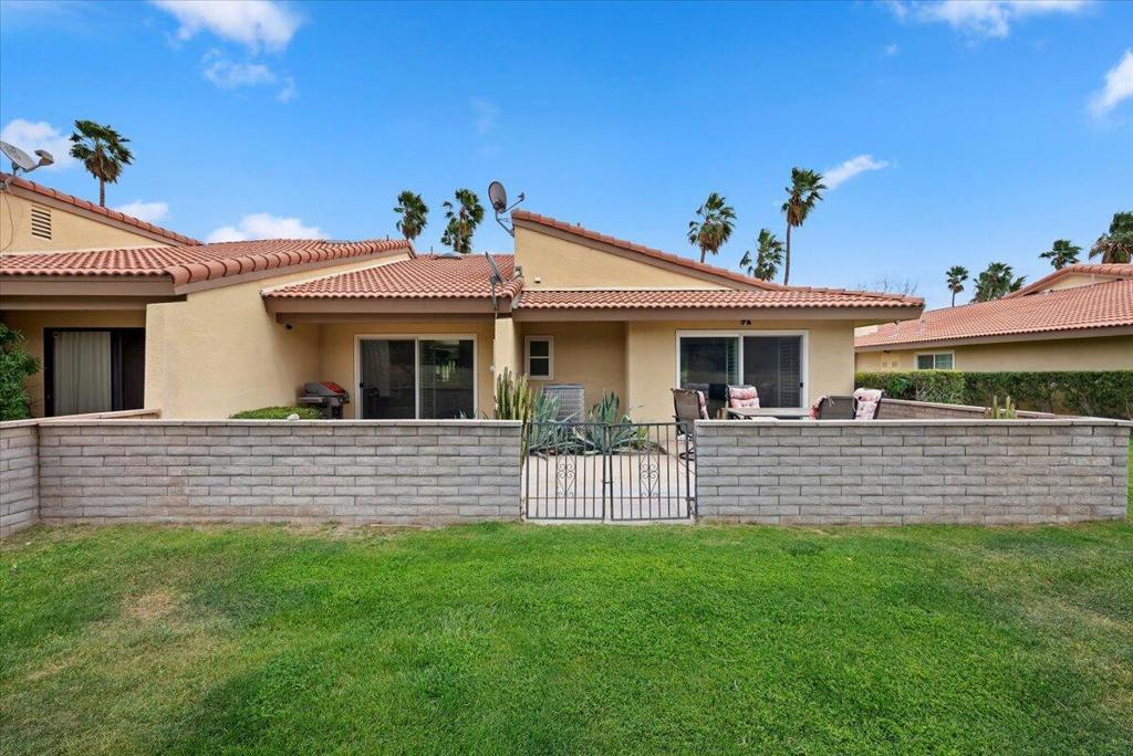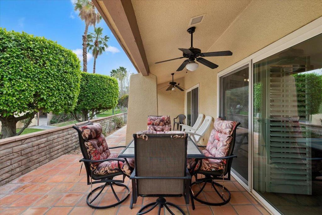 Surround yourself in a Villa-like setting in a highly-desirable 3BD 2BA condo at securely gated Palm Springs Country Club. This one-of-a-kind unit is within the community designed by famous architect William F. Cody when Palm Springs Country Club was home to the Rat Pack golfers. It is one of the largest in the community at nearly 1700 square feet. Four extra large patio doors to the extended front and back decks let in maximum light, but plantation shutters keep the summer heat at bay. Vaulted Ceilings, skylights, and only one shared sound-proofed wall make this this home luxurious. Step out the patio doors from either of the 2 primary bedrooms to the back deck to view Mount San Jacinto. The blue lights at the top of the Tram are visible at night while having cocktails in the back. The bright skylight in the extra large remodeled kitchen makes cooking a dream. The master bathroom walk-in shower was remodeled and extended with built-in seating. It is large enough to accommodate special needs. Relax in either of 2 spas or the sparkling seasonal pool in close walking distance. This has been a successful seasonal rental for the current owners, and also an enjoyable second home.