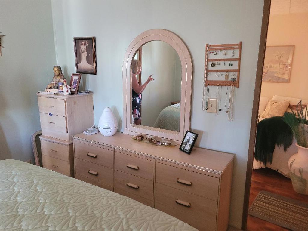 55+. A beautiful home on a private and residential cul-de-sac corner lot and you OWN the land. Open and spacious, the home has been tenderly cared for. Seller has recently installed new copper plumbing, also earthquake bracing, a drip sprinkler system with new timer, new stone ground cover and had the electric boxes refreshed by electrician. Home sits on a good size lot, has a raised patio and a beautiful breeze gently blowing from the mountains. The property comes turnkey furnished with a golf cart. Ownership comes with unlimited golf for two owners. You can enjoy the clubhouse amenities: two sparkling pools and spas, two golf courses, tennis and pickleball; a library with TV and pool table, a restaurant with entertainment on the spacious patio, various social clubs and a professional shuffle board court. Tri Palms Estates and Country Club is located in one of the best spots in the Coachella Valley and is close to all amenities. Costco, Sams, Walmart and Home Depot are less than a mile away. There are excellent medical facilities, a fire station and Casino nearby. not mention the Acrisure arena with headliners and the Hockey Team plus theaters and hundreds of restaurants.