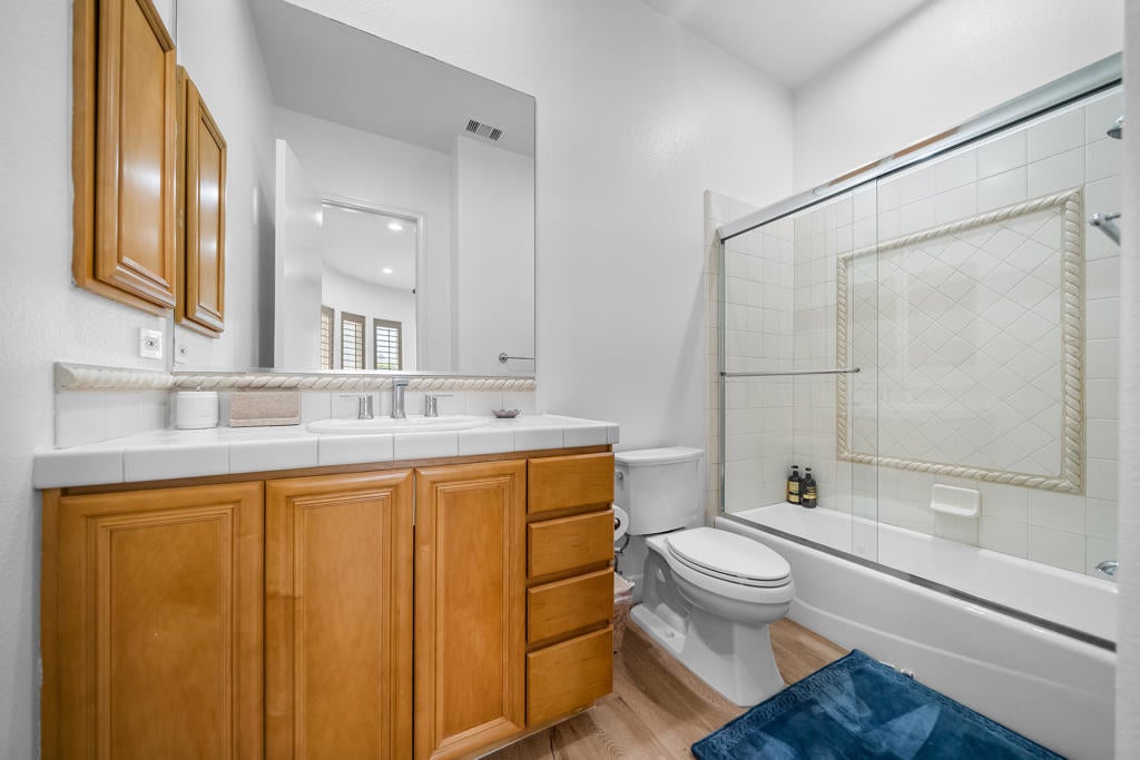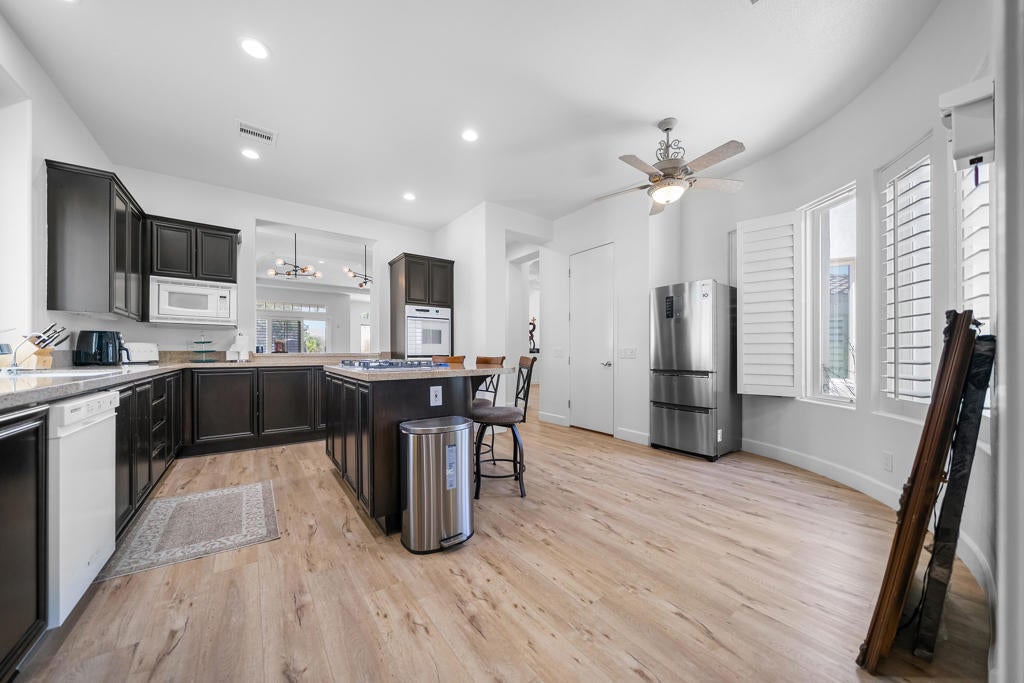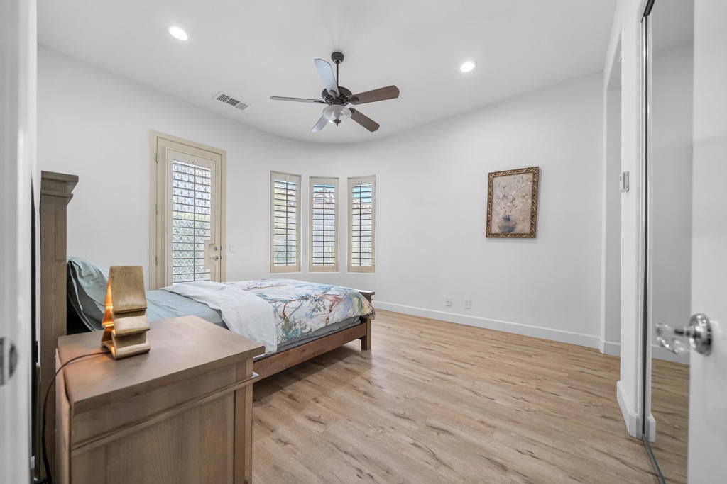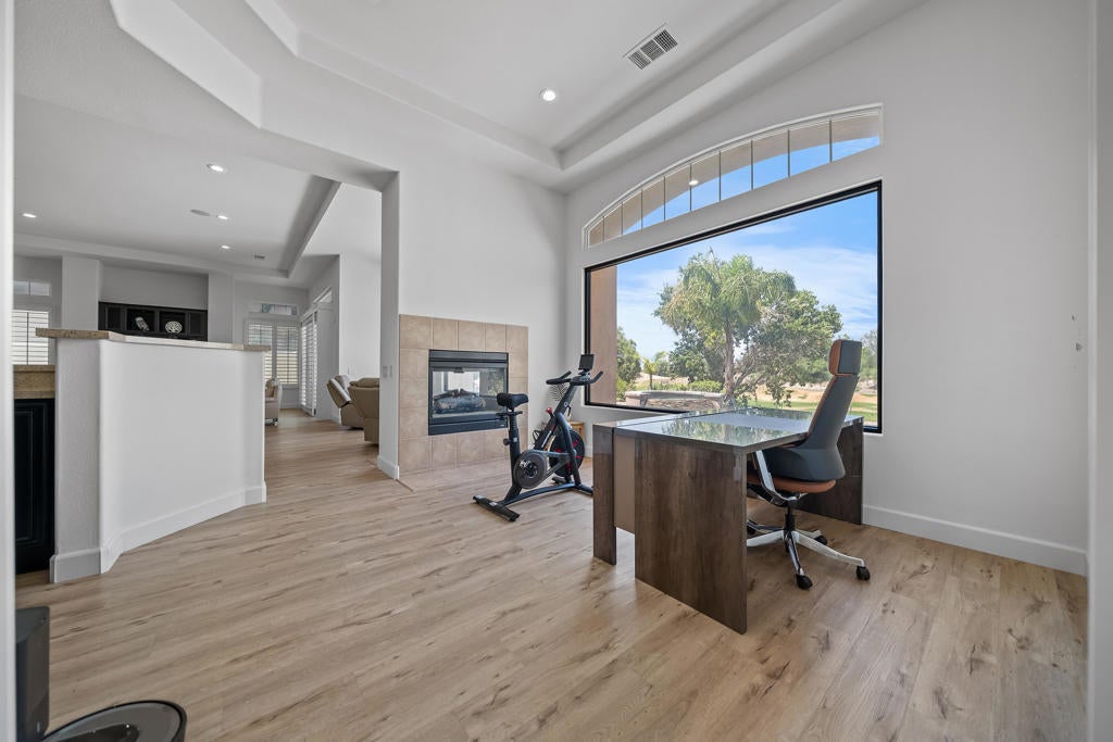 On the 3rd hole of the Mission Hills Gary Player Course, this updated and well-maintained 3 bedroom, 4 bath home offers golf course views and a bright, functional layout. The north facing front door brings in soft natural light while maintaining ideal desert orientation.Located in a gated community with a low HOA, residents enjoy tennis courts, pickleball, bike paths, and multiple community pools perfect for an active desert lifestyle.The home includes leased solar for energy efficiency and a tankless hot water heater for modern convenience. All three large bedrooms feature their own private exit to either the backyard or courtyard, creating excellent separation and flexibility for guests or multi use living.