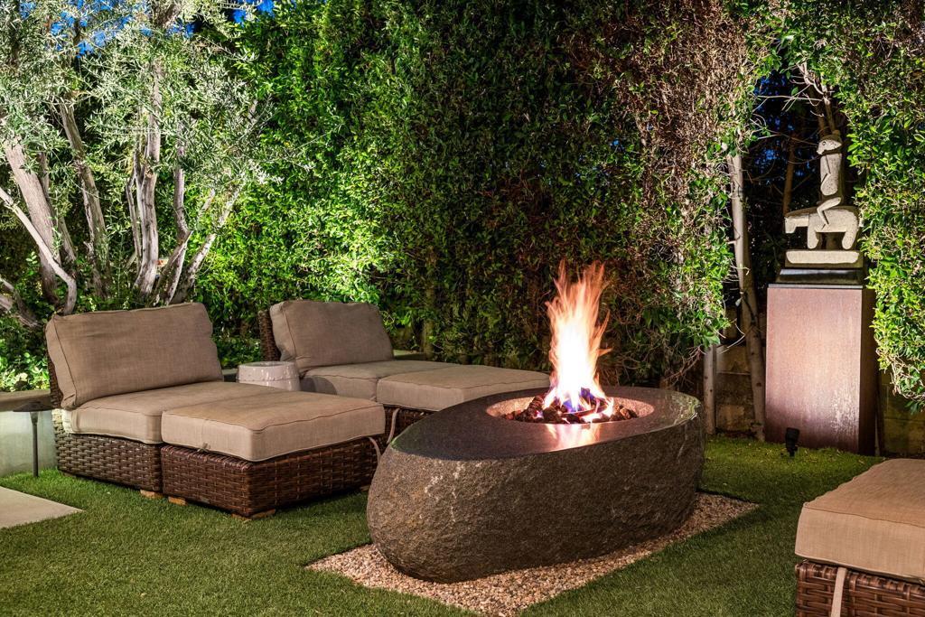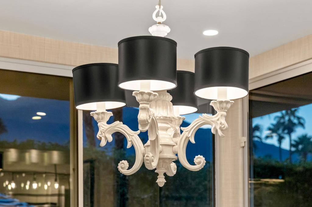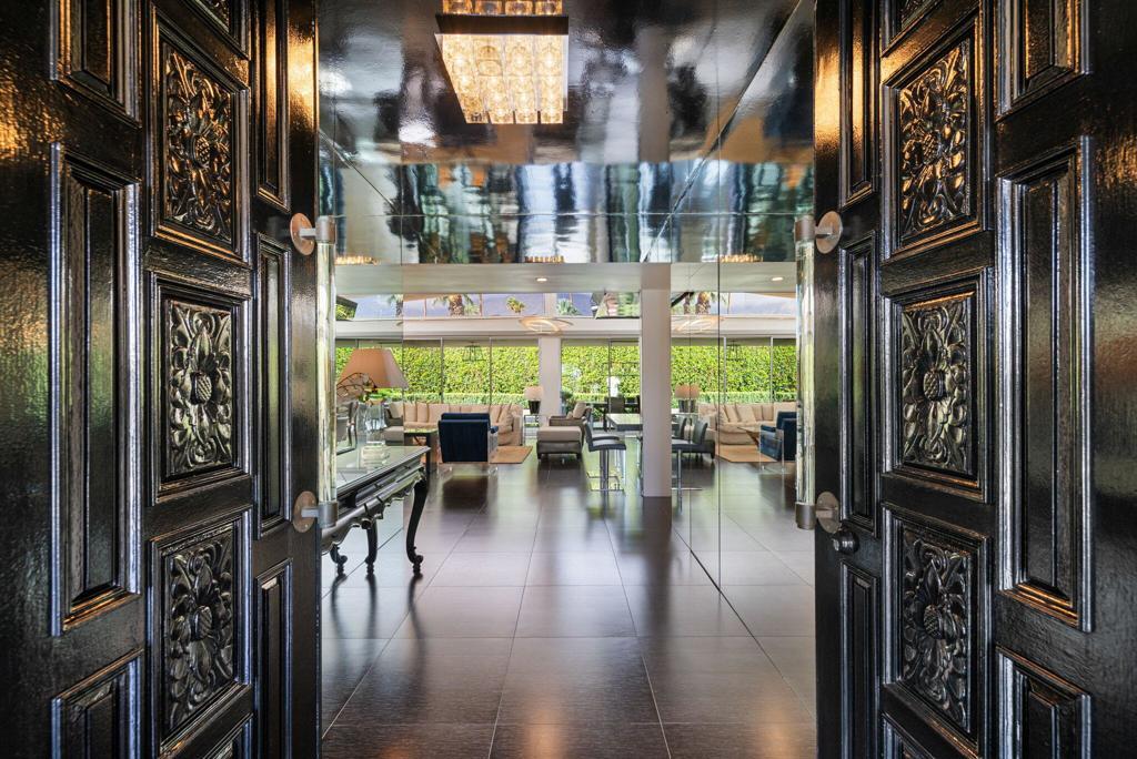 CLASSIC 70's Palm Springs home selling with FURNISHINGS INCLUDED! FEE LAND and NO HOA in the Canyon Palms section of Indian Canyon. Furniture, art and sculptures included! This striking home is on a corner lot and NO wires. 100% private pebble pool & spa, patios and retreat areas. Granite fire features and manicured gardens with olive trees and custom lighting to delight you and your guests. IDEAL for outdoor dining. Generous square footage (over 2,700) with 2 LARGE bedrooms, PLUS a den or media room (bedroom option) and 3 baths. Design and enhancements by the former International Creative Director for Ralph Lauren and concept creator of Williams Sonoma Home. This home is stately and chic throughout, the quality is obvious. Beautiful selections of porcelain tiles, granite and stone. Don't miss one of the SWANKIEST residential bars in all of Palm Springs! Bosch stainless appliances, updated windows and doors, leak defense and water treatment systems. TOTAL foam roof refresh completed in 2026! A/C units are 2021 and 2024. This exceptional home is EASY to maintain. No work to be done, just relax, entertain and enjoy! Just minutes to downtown, airport, Indian Canyon golf, and shopping, dining at Smoke Tree.