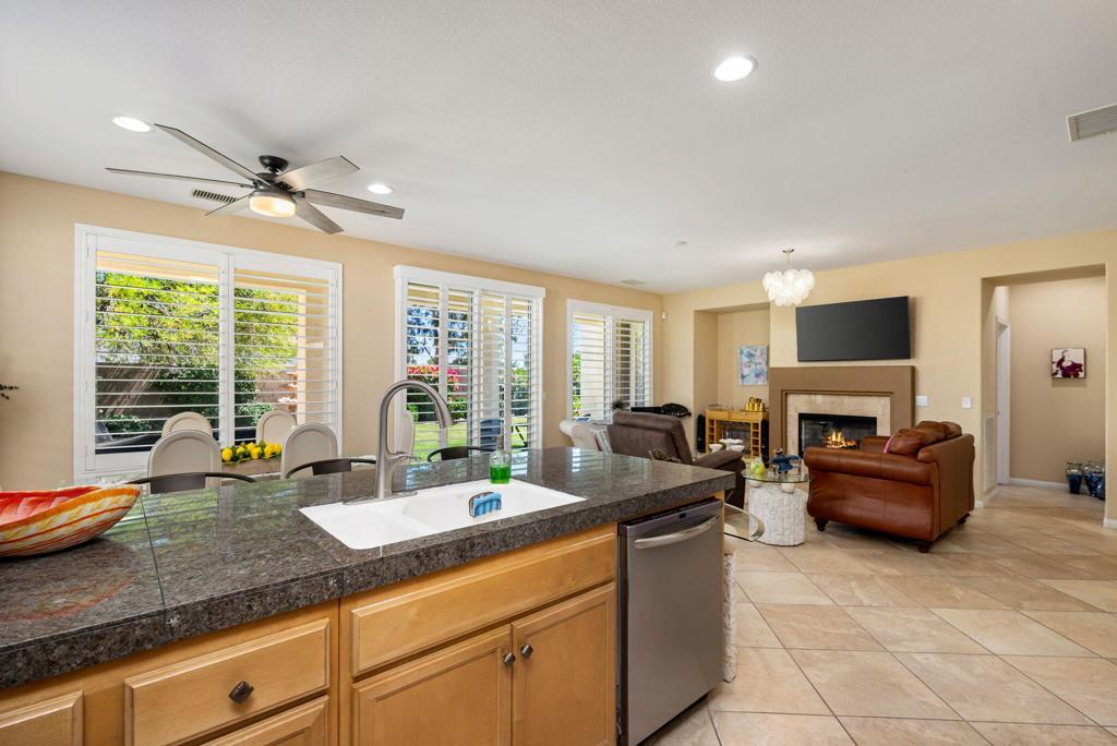 This long-term furnished Marea plan blends comfort and sophistication just minutes from the Santa Rosa Clubhouse and its full suite of resort-style amenities. Offering 2 bedrooms and 2 bathrooms across 1,359 sq. ft. of polished interior living, the home welcomes you with an inviting great room featuring a custom TV/media niche and a charming tile-framed fireplace. Plantation shutters elevate every space, while the adjacent kitchen shines with stainless steel appliances, granite countertops, a breakfast bar, gas range, built-in microwave, and a convenient pantry. The guest quarters include a well-appointed bath with a shower-over-tub layout, while the primary retreat impresses with plank flooring, a French door to the patio, and an en suite showcasing a generous tiled shower, dual vanities, and a spacious walk-in closet. Outside, a tranquil backyard oasis awaits with a covered patio and lush, professionally designed landscaping--perfect for peaceful relaxation or effortless entertaining. Available on an annual basis. This is not a vacation or short-term rental.