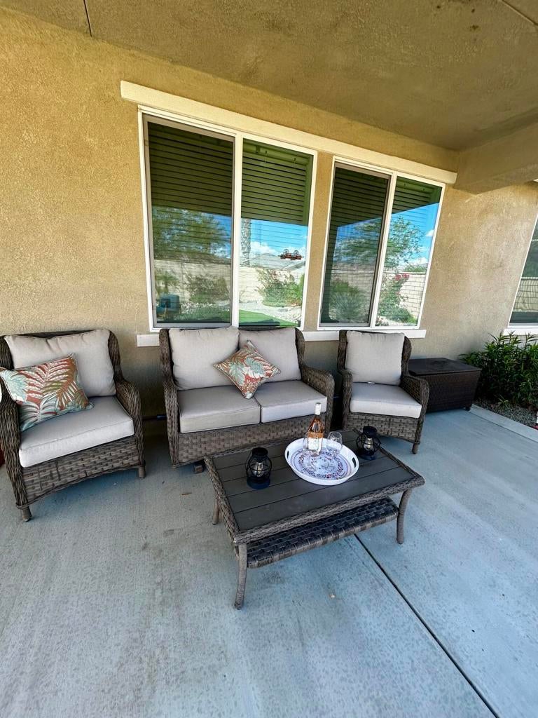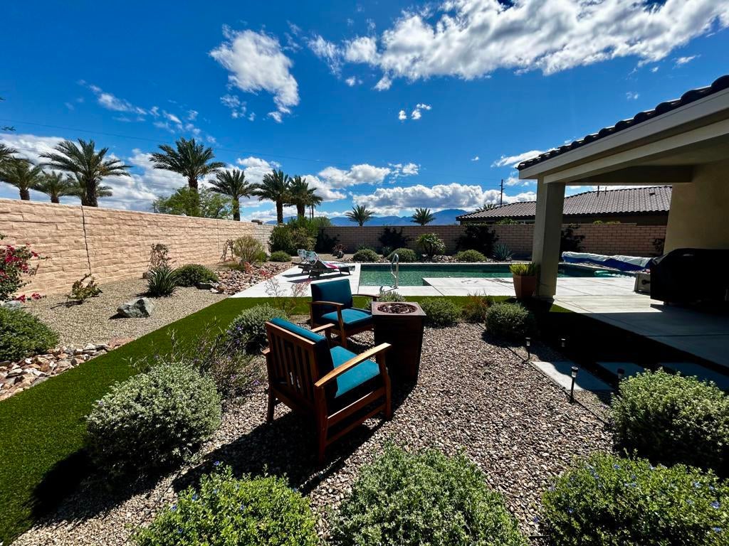 Looking for true resort-style, poolside living? This exceptional home delivers it all--and then some.Step into a lifestyle that feels like a private retreat, complete with concierge-inspired conveniences including pool and landscape maintenance, a monthly cleaning service, access to Lodge amenities, BBQ, and a fully turnkey furnished interior designed to give you that immediate ''ahhh'' moment the second you arrive.Meticulously maintained and thoughtfully upgraded, the home features granite countertops, seamless luxury vinyl plank flooring throughout, plantation shutters, recessed lighting, and tasteful designer touches that create a warm yet elevated aesthetic. Solar is also included for energy-efficient, low-cost living year-round. The popular Indio Hills model offers a spacious open-concept layout with soaring ceilings and abundant natural light. The expansive chef's kitchen includes bar seating, a walk-in pantry, and generous storage--perfect for entertaining or everyday comfort. A dedicated laundry room adds convenience and functionality.The private Primary Suite is a true retreat, featuring a large walk-in shower, dual vanities, and a spacious walk-in closet. On the opposite side of the home, the guest bedroom enjoys its own private bath for optimal privacy. A versatile bonus room with double-door entry is currently used as a third bedroom; ideal for guests, a den, or a home office.Designed for effortless entertaining and relaxed desert living, there is ample space to gather, host, and enjoy the best of the Coachella Valley lifestyle with family and friends.Located just 1.6 miles from the Terra Lago Golf Course and Clubhouse, the community offers beautifully winding fairways perfect for scenic walks or easy golf cart access.Residents also enjoy an impressive collection of Lodge amenities, including indoor and outdoor pools, BBQ areas, Beauty and Massage Salon, game and pool rooms, a fitness center with lockers and showers, library, bocce ball, pickleball, tennis, basketball, shuffleboard, and more--truly resort living at its finest.
