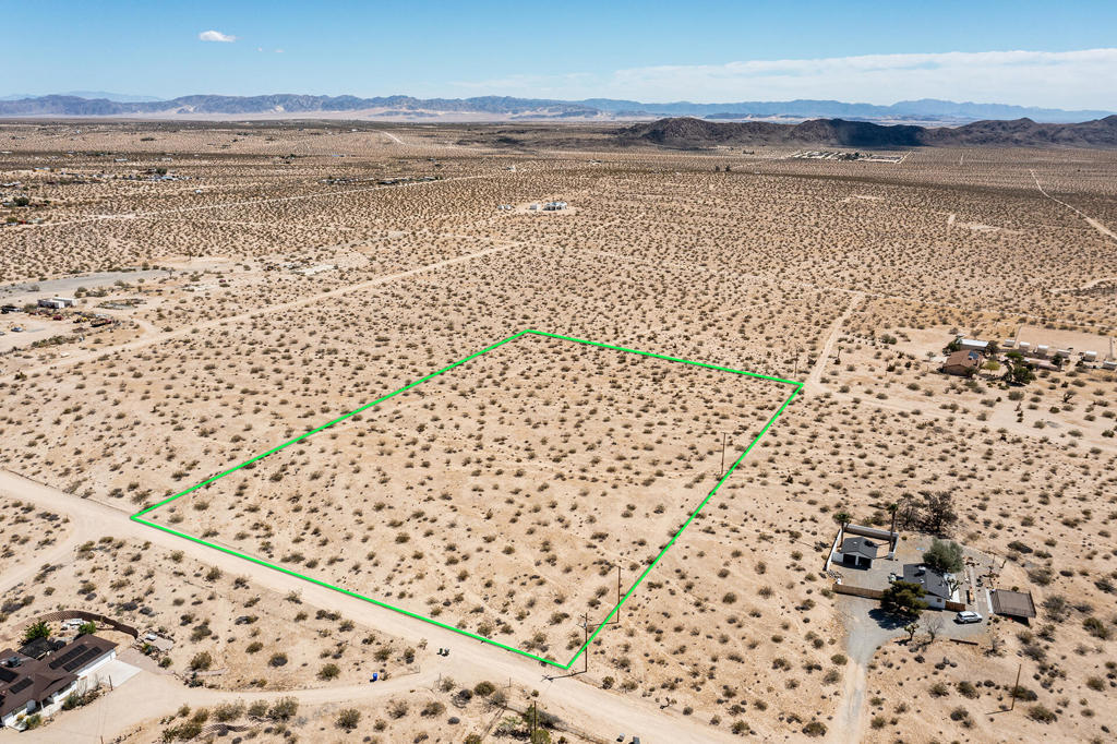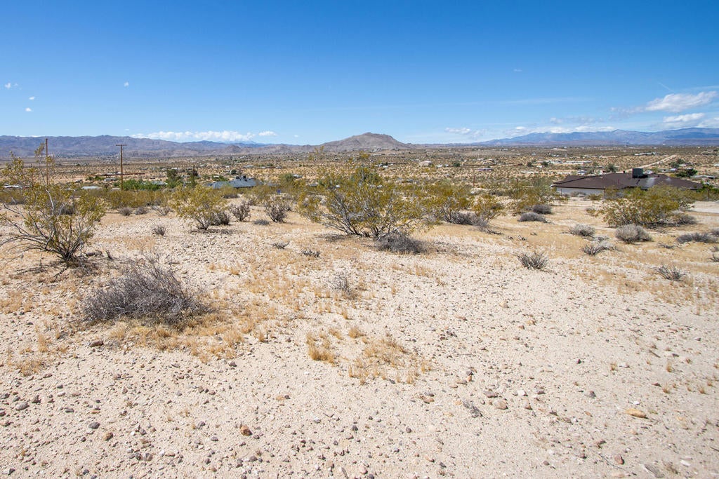 Panoramic views! 4.28 acres perched on a gentle slope that descends 360 ft to the east. Corner lot with water in the street and power close by. The County may allow for 2 homes and guest homes. Million dollar homes in the area. Ideal location for a luxury compound in this beautiful desert setting. Vistas of Mt Nebo, Moonlight Mesa, Copper Mtn, Mt. Bartlett, and the Little San Bernardino Mtns. Views of snowy peaks high upon Mt San Gorgonio. Private setting. Horse property. Starry nights. Joshua Tree is quickly becoming a sought after zip code with more celebrities', musicians, and artists now calling Joshua Tree home than ever before. Short drive to the organic restaurants, cafes, bars and the JT farmers market. 12 miles to the JT National Monument where about 3 million tourists visit the park annually. More amenities in Yucca Valley and 29 Palms. Not far from great live music at Pioneertown's legendary Pappy and Harriet's. Enjoy off road adventures in the nearby JT Lakebed. 41 miles to Palm Springs. 133 miles to Los Angeles. This lot is perfect for a designer ranch getaway. Three contiguous lots next door are also available from our office. Get all 4 legal lots totaling over 17 acres. Excellent for a contractor/builder. For all questions on building and uses buyers must contact the county planners. For all questions on utilities buyers must call the utilities agencies. APN: 0606-321-40-0000. The address is not a real address and is for marketing only. GPS: 34.20295, -116.2808 Don't Wait! - Call Now! Don't Wait! - Call Now!