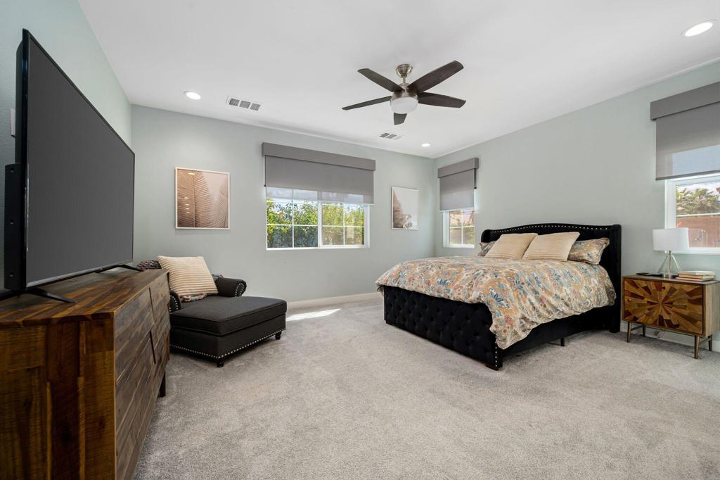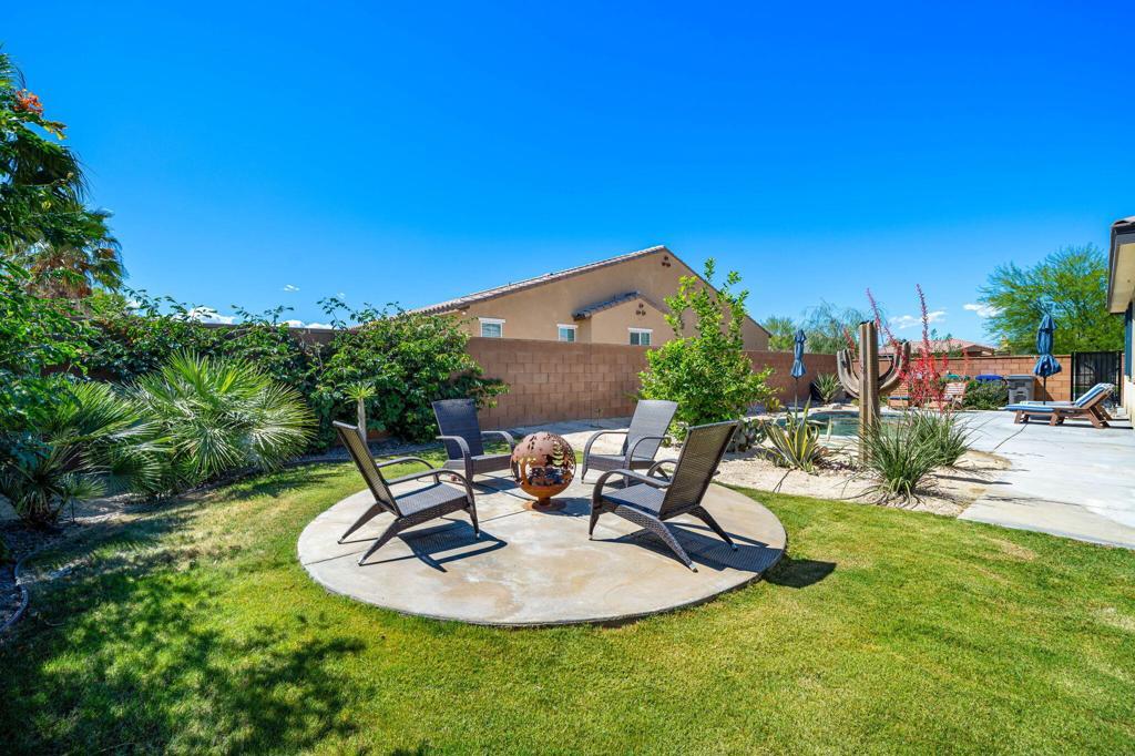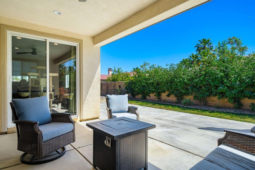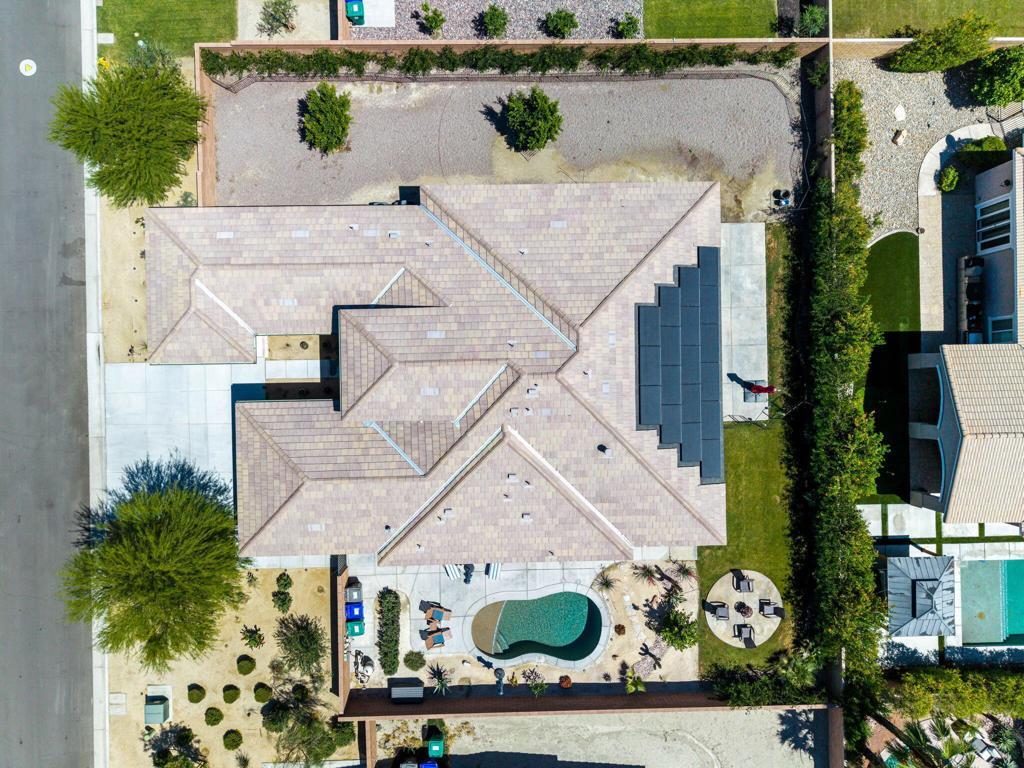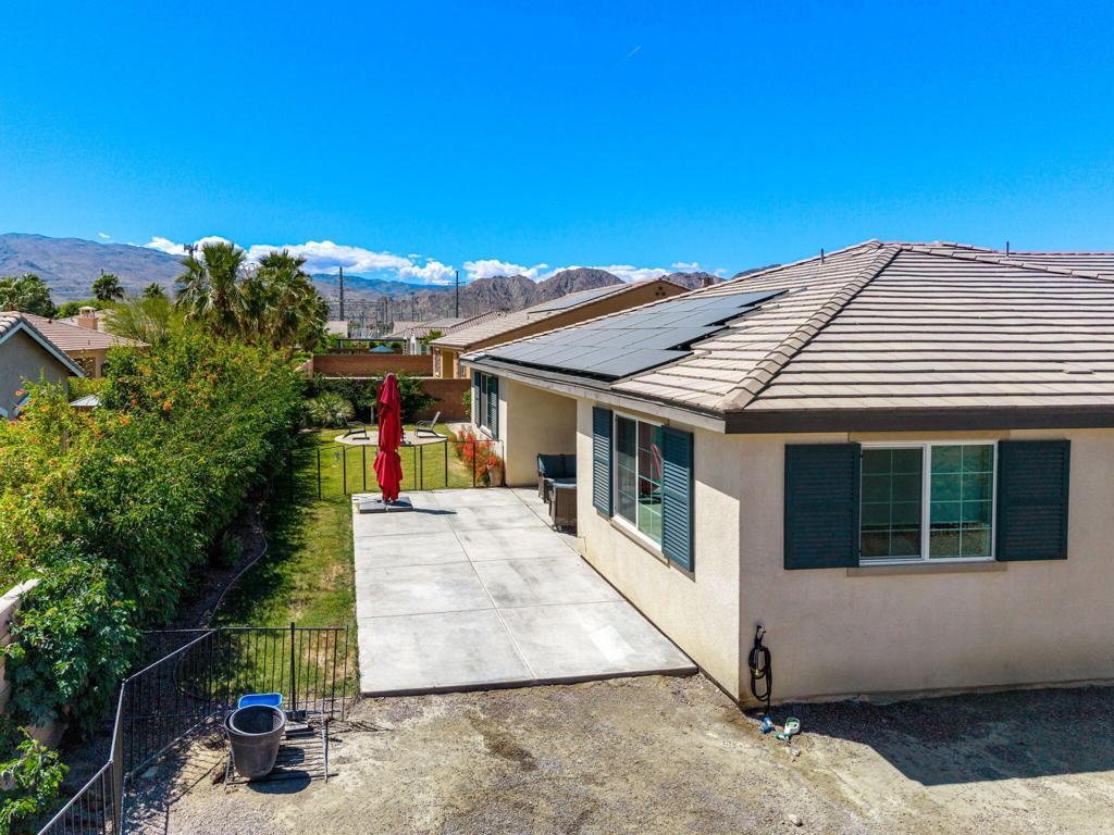 Experience elevated desert living in this beautifully upgraded Pomona plan, where modern ranch design meets a private La Quinta oasis. Situated on over a quarter-acre lot, this home offers exceptional space, privacy, and expansive side yards--perfect for entertaining, recreation, or future enhancements.At the heart of the home is a stunning, modern chef-inspired kitchen featuring an oversized center island, sleek quartz countertops, and a generous walk-in pantry. The open-concept design flows effortlessly into the expansive great room and dining area, creating an ideal setting for both everyday living and upscale entertaining.The primary suite is a true retreat, complete with a spa-like bath and two spacious walk-in closets. Three additional bedrooms, along with a private office, provide flexibility for guests, family, or a home office.Step outside to your own private sanctuary--an entertainer's dream--highlighted by a sparkling custom-shaped pool, a spacious covered patio, and beautifully curated desert landscaping that enhances both serenity and style.Located within a gated community, this home also features a three-car garage with a private side-entry bay, ideal for a golf cart, workshop, or additional storage. Adding even more value is the fully owned and paid-off solar system, delivering energy efficiency and long-term savings.This move-in-ready residence offers the perfect blend of luxury, functionality, and the quintessential La Quinta lifestyle.