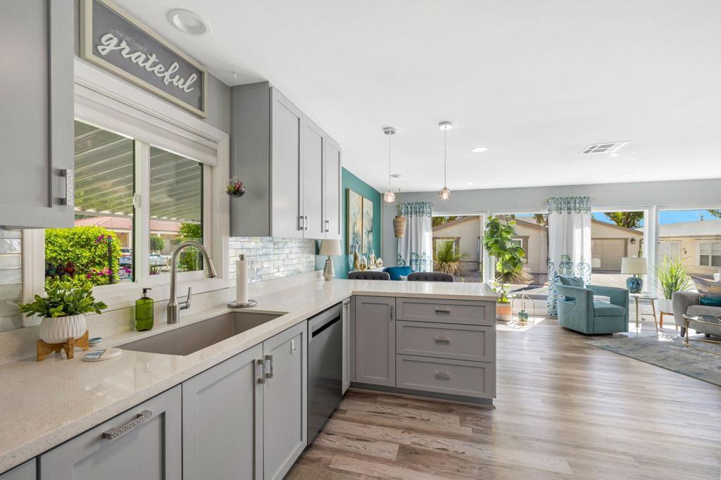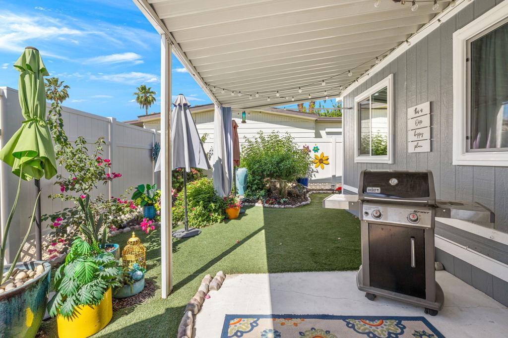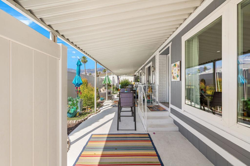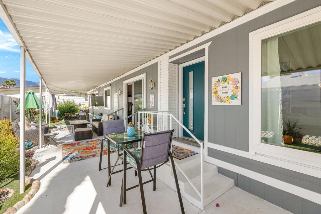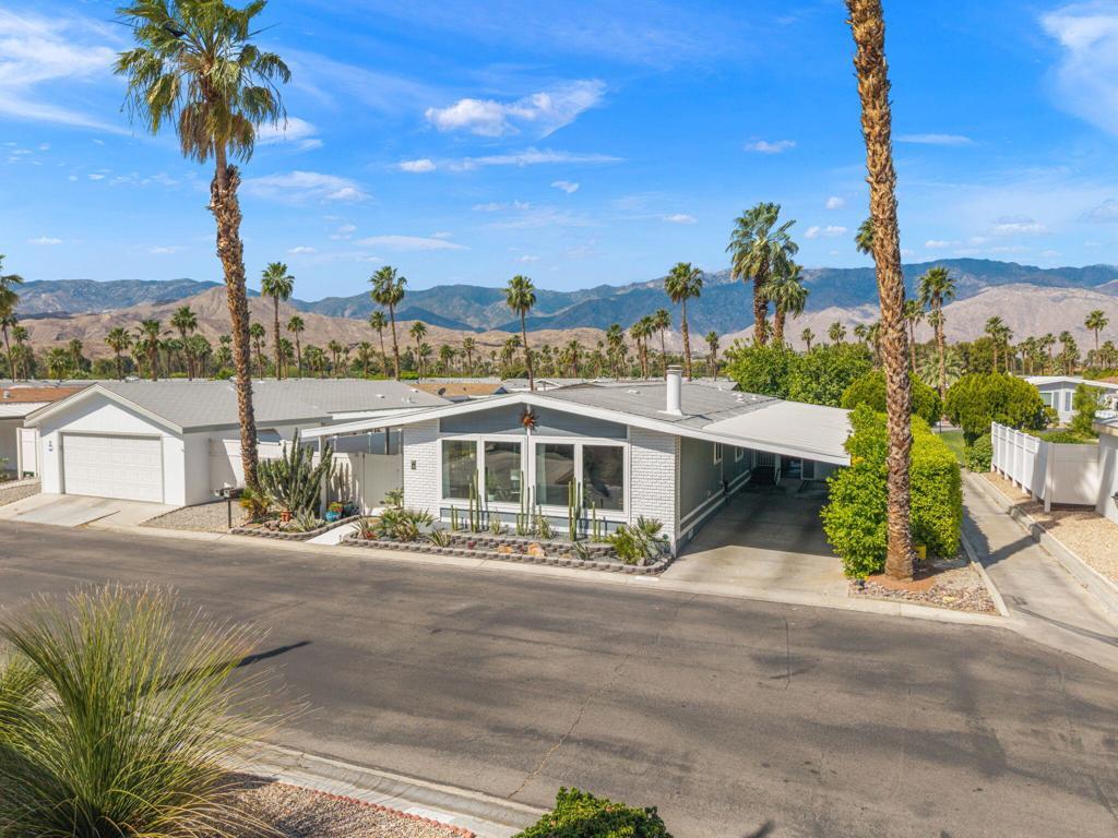 Did you ever wonder how comfortable and affordable manufactured home living can truly be? At last ..... the question has at last been answered. Welcome to 92 Armenia---an exceptional, fully re-imagined residence where modern design meets effortless desert living. Completely remodeled from floor to ceiling, this home showcases a stunning transformation with all new appliances, designer lighting, updated luxury vinyl flooring, contemporary fixtures, and beautifully renovated bathrooms, creating a cohesive and elevated aesthetic throughout.The thoughtfully designed open-concept floor plan offers seamless flow between living, dining, and kitchen spaces----perfect for entertaining and everyday comfort. Step outside to a very private side yard retreat featuring spectacular mountain views that are ideal for relaxing or hosting an intimate gathering under the desert sky.Extensive, professionally designed and installed landscaping embraces the home's curb appeal and outdoor experience while practical upgrades such as a new water heater and FULLY PAID SOLAR provide both efficiency and peace of mind. A pre-listing inspection has already been completed with all repairs addressed and attended to.Ideally situated in a central location close to dining, shopping and entertainment and just steps away from one of the community's two pools, this home offers the perfect blend of luxury, convenience, and lifestyle at an incredibly affordable price. Call today for your private showing. Proof of a minimum 750 BEACON Experian FICO score is required before showing.