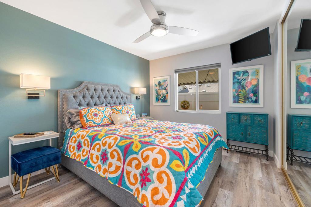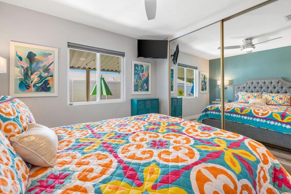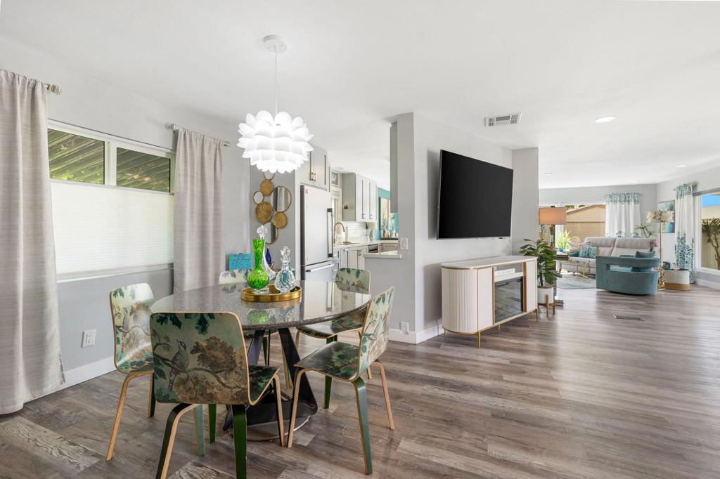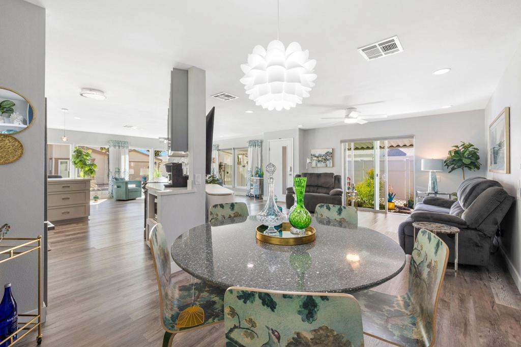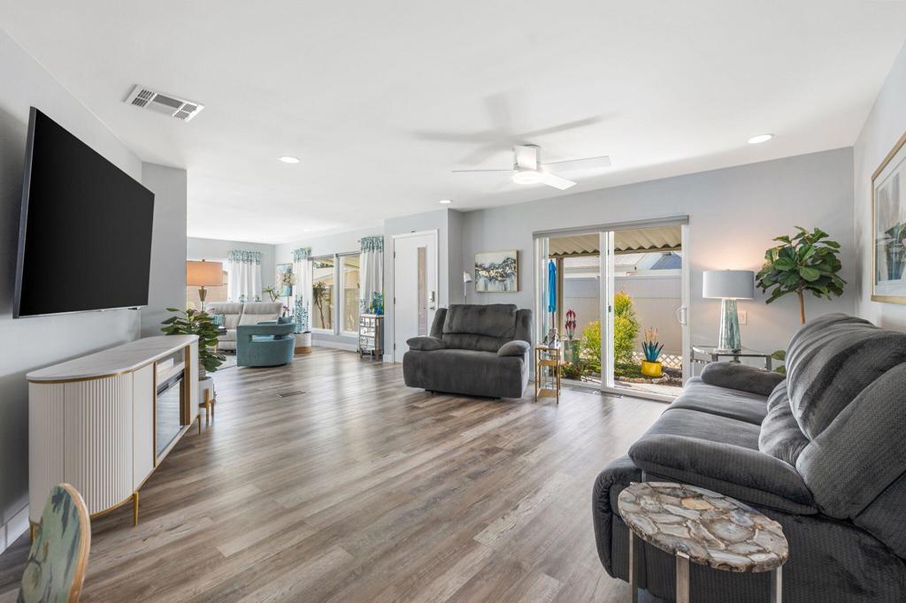 Did you ever wonder how comfortable and affordable manufactured home living can truly be? At last ..... the question has at last been answered. Welcome to 92 Armenia---an exceptional, fully re-imagined residence where modern design meets effortless desert living. Completely remodeled from floor to ceiling, this home showcases a stunning transformation with all new appliances, designer lighting, updated luxury vinyl flooring, contemporary fixtures, and beautifully renovated bathrooms, creating a cohesive and elevated aesthetic throughout.The thoughtfully designed open-concept floor plan offers seamless flow between living, dining, and kitchen spaces----perfect for entertaining and everyday comfort. Step outside to a very private side yard retreat featuring spectacular mountain views that are ideal for relaxing or hosting an intimate gathering under the desert sky.Extensive, professionally designed and installed landscaping embraces the home's curb appeal and outdoor experience while practical upgrades such as a new water heater and FULLY PAID SOLAR provide both efficiency and peace of mind. A pre-listing inspection has already been completed with all repairs addressed and attended to.Ideally situated in a central location close to dining, shopping and entertainment and just steps away from one of the community's two pools, this home offers the perfect blend of luxury, convenience, and lifestyle at an incredibly affordable price. Call today for your private showing. Proof of a minimum 750 BEACON Experian FICO score is required before showing.