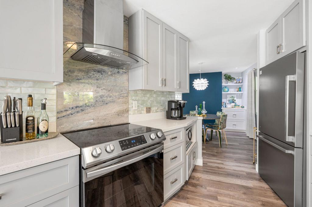 - AppliancesDishwasher, Electric Cooktop, Electric Oven, Disposal, Gas Water Heater, Microwave, Refrigerator, Vented Exhaust Fan, Water Heater, Self Cleaning Oven