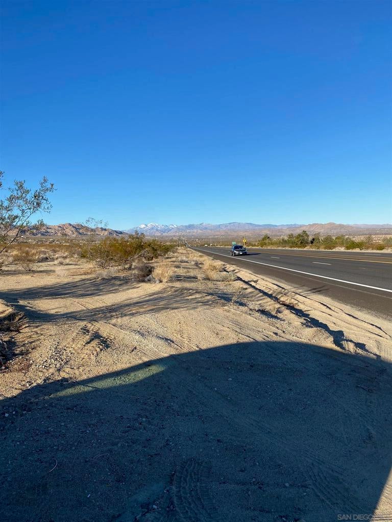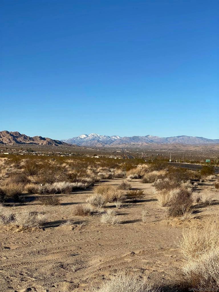 Rare opportunity to own land a very short distance to the edge of the Joshua Tree National Park with road access right on Twentynine Palms Highway 62. Easy access right from the main road and a short walk just south to the border of the Joshua Tree National Park. Take in the breathtaking views all around and jagged rock formations that make up the Joshua National Park. Breath in the fresh air and gain a sense of tranquility you have never experienced. Perfect access to property right on paved road if you have an RV. Don’t miss this once in a lifetime opportunity to invest in this land in Joshua Tree, CA with paved road frontage. Frontage: Freeway