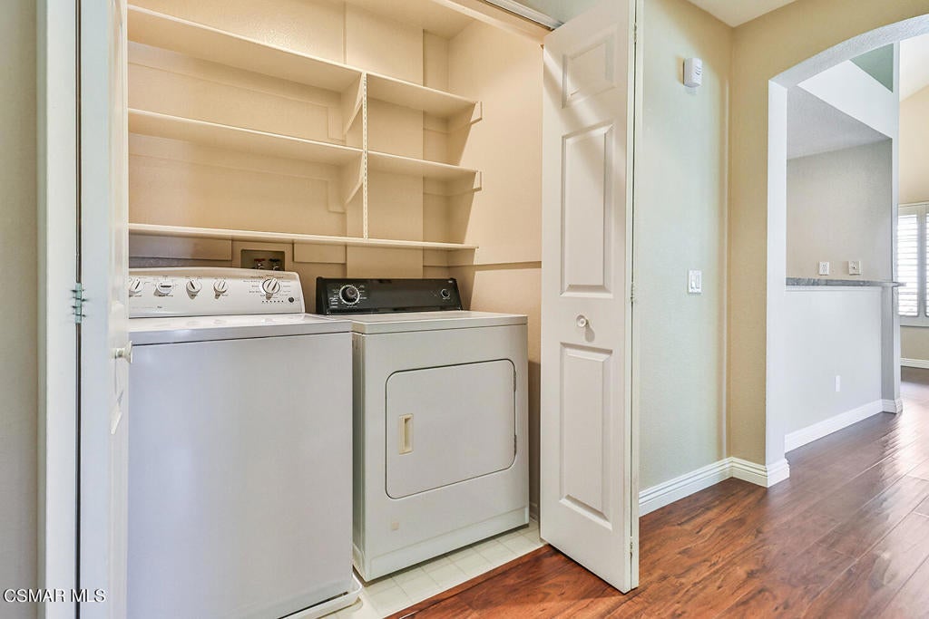 Two-bedroom condo, with views, in prime Wood Ranch location! Stairs lead to SINGLE level living, where you can capture golf course views from balcony. Rich hardwood flooring, wood shutters and custom paint. Kitchen boasts granite countertops and brand new Kenmore appliances. Large master bedroom with vaulted ceilings and en suite bath. Laundry area conveniently located inside. Detached one car garage, and an additional assigned parking space. Excellent schools and shopping nearby.