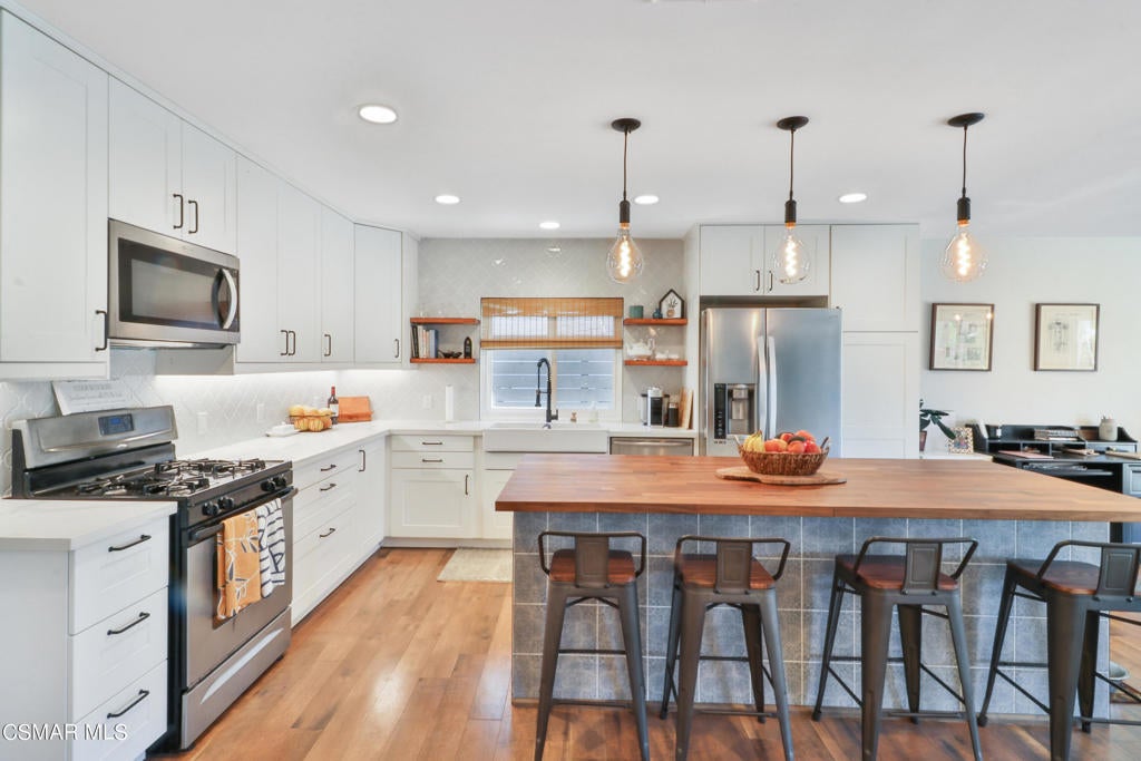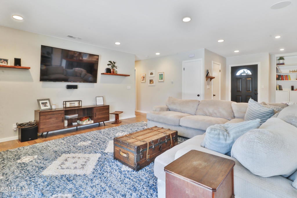 Stunning SINGLE story in central Simi, completely remodeled with fabulous curb appeal. Featuring 3 bedrooms and 2 full baths, this home boasts an incredible open floor plan from the moment you walk through the front door. All beautifully done, down to every last detail. New flooring, baseboards and interior paint. New recessed LED lighting throughout, with plenty of natural light to show off every last finish. Brand new kitchen featuring quartz countertops, large center island, custom cabinets and stainless appliances. Plenty of room for dining and sitting areas, along with living room and fireplace. Lots of options! Down the hall to bedrooms and remodeled baths. Master bedroom with built-in wardrobes and newly finished en suite bath. Gorgeous shower stall with glass enclosure and custom marble tiling, separate tub and dual sink vanity. Exquisite! Enjoy some fresh air in your private backyard, complete with hardscape patio and large grassy area. Brand new HVAC, ducting and insulation. The list of upgrades continue making this home turn-key and ready for you! Don't wait!