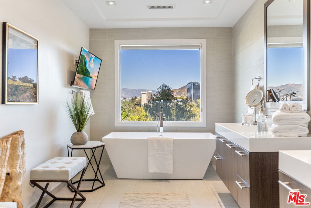 This home and all our listings are available immediately to assist displaced victims from the fires. Available fully furnished and turnkey for short, midterm, or long term lease! Exquisitely updated view compound in the heart of Studio City. Living room blends seamlessly with dining area and kitchen presenting the perfect combination of grandeur and functionality. Natural light floods the public rooms. Chefs kitchen with top of the line appliances and breakfast bar replete with ample storage. Sliding pocket doors lends itself to a generous yard featuring outdoor kitchen with bar seating, fire pit and unparalleled views from every angle. Primary suite facing Northern views is the ultimate retreat with walk in closet and resort like oversized bath with separate shower and tub. Three additional bedrooms and direct access garage complete this rare trophy home. An exceptional opportunity to acquire a property at the end of a cul-de-sac with incredible privacy, all while being a few moments away from Ventura Blvd, Highways, Universal City and the best Los Angeles has to offer.